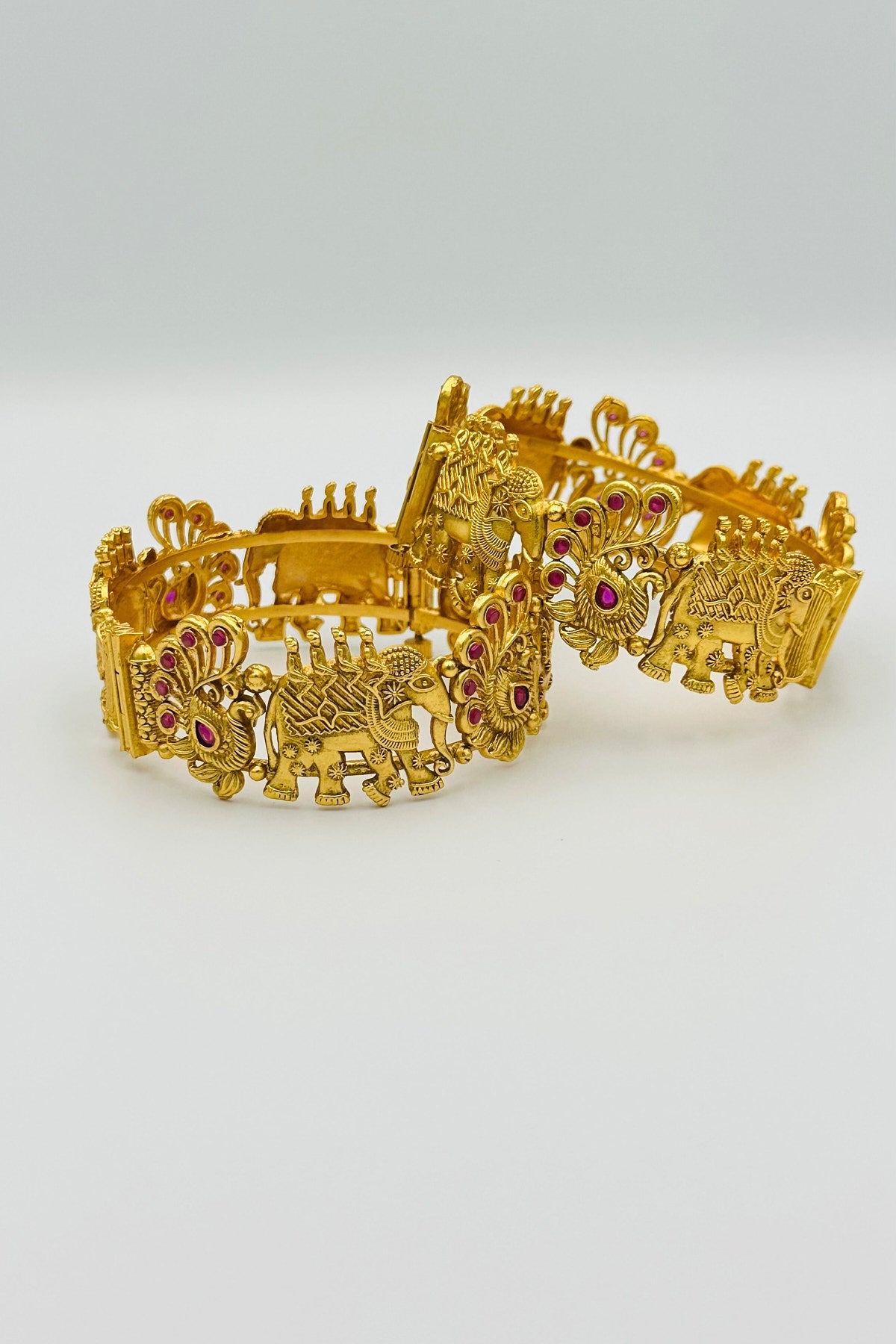 Elephant and Peacock Bangles with Kemp Stone Accents
