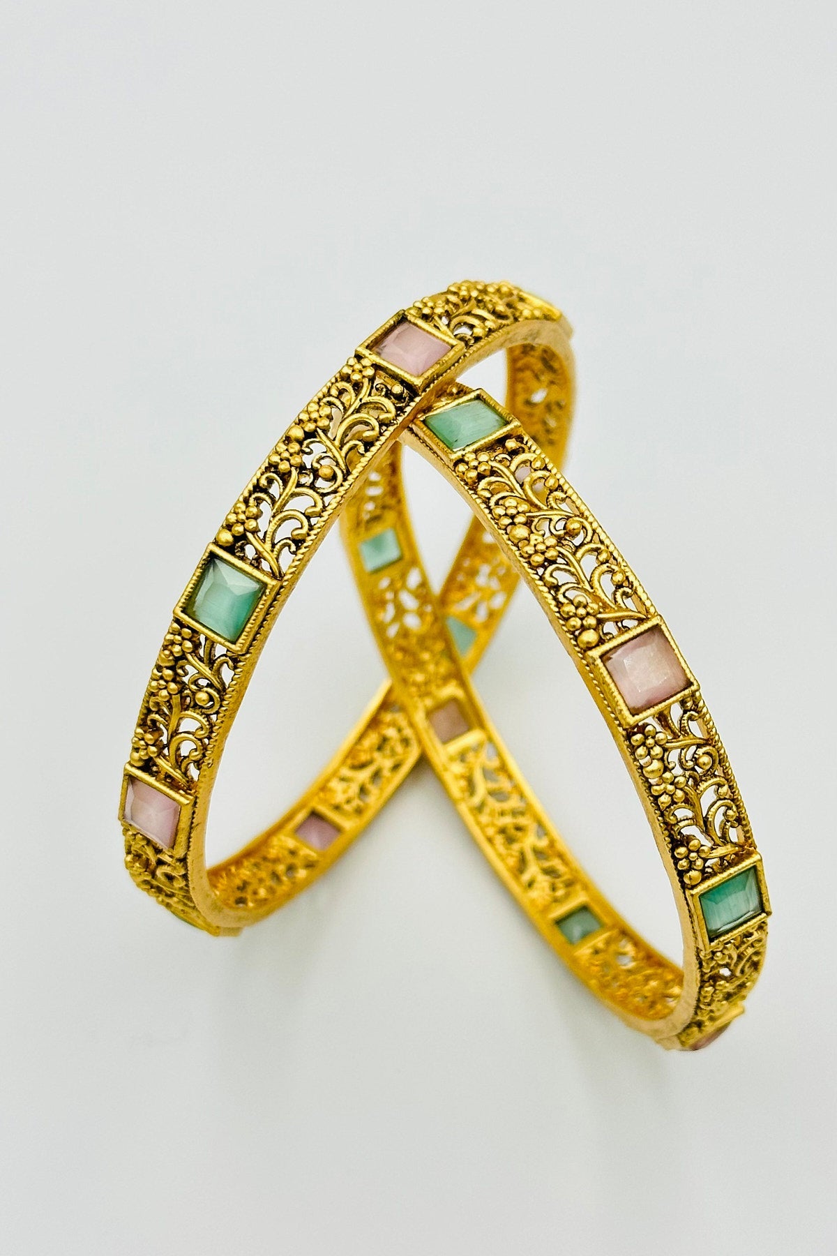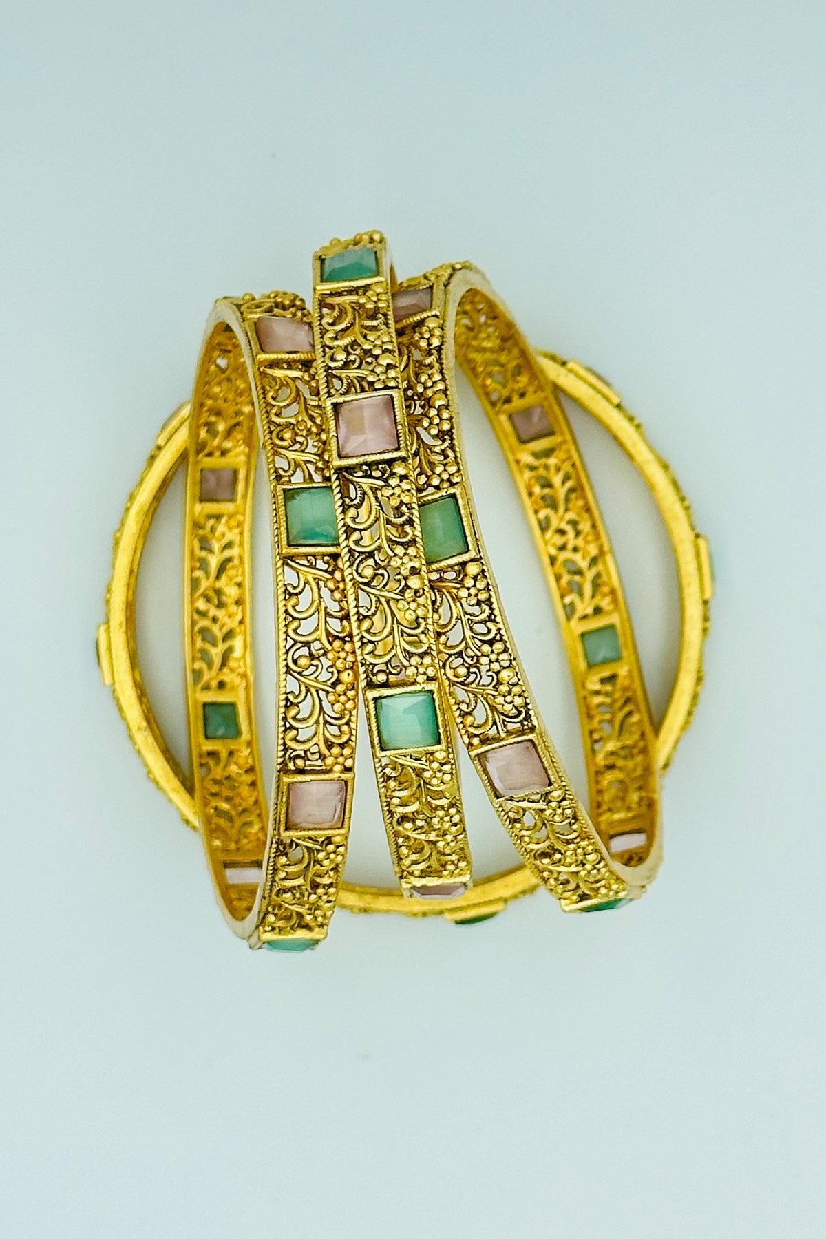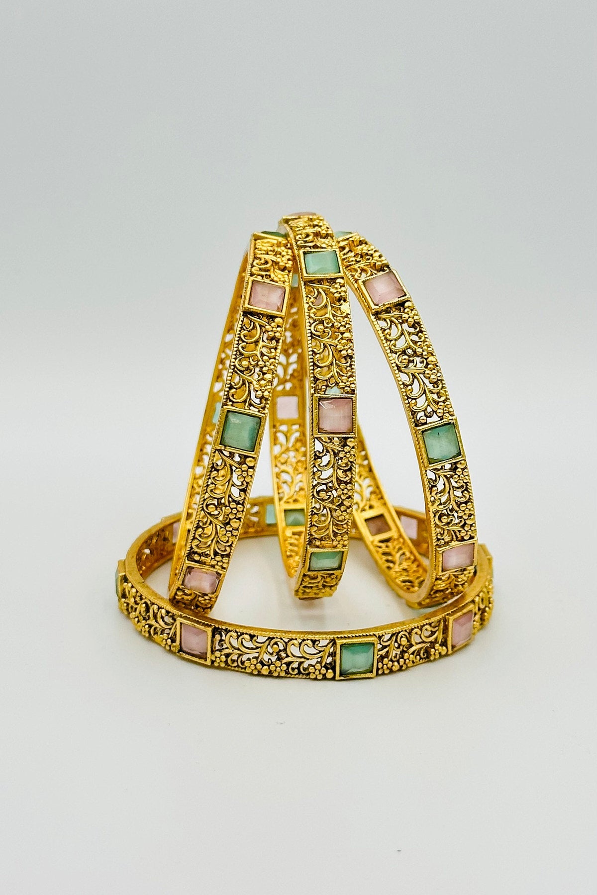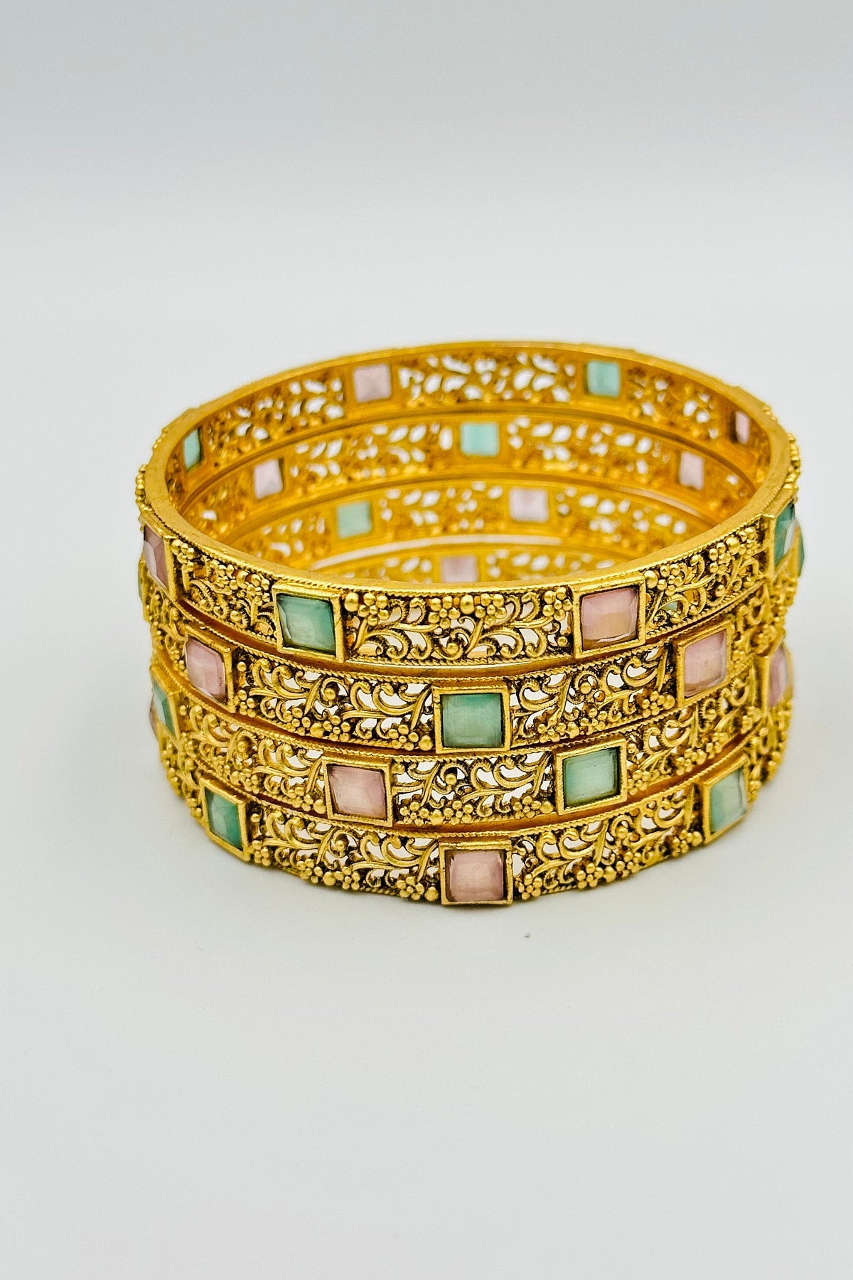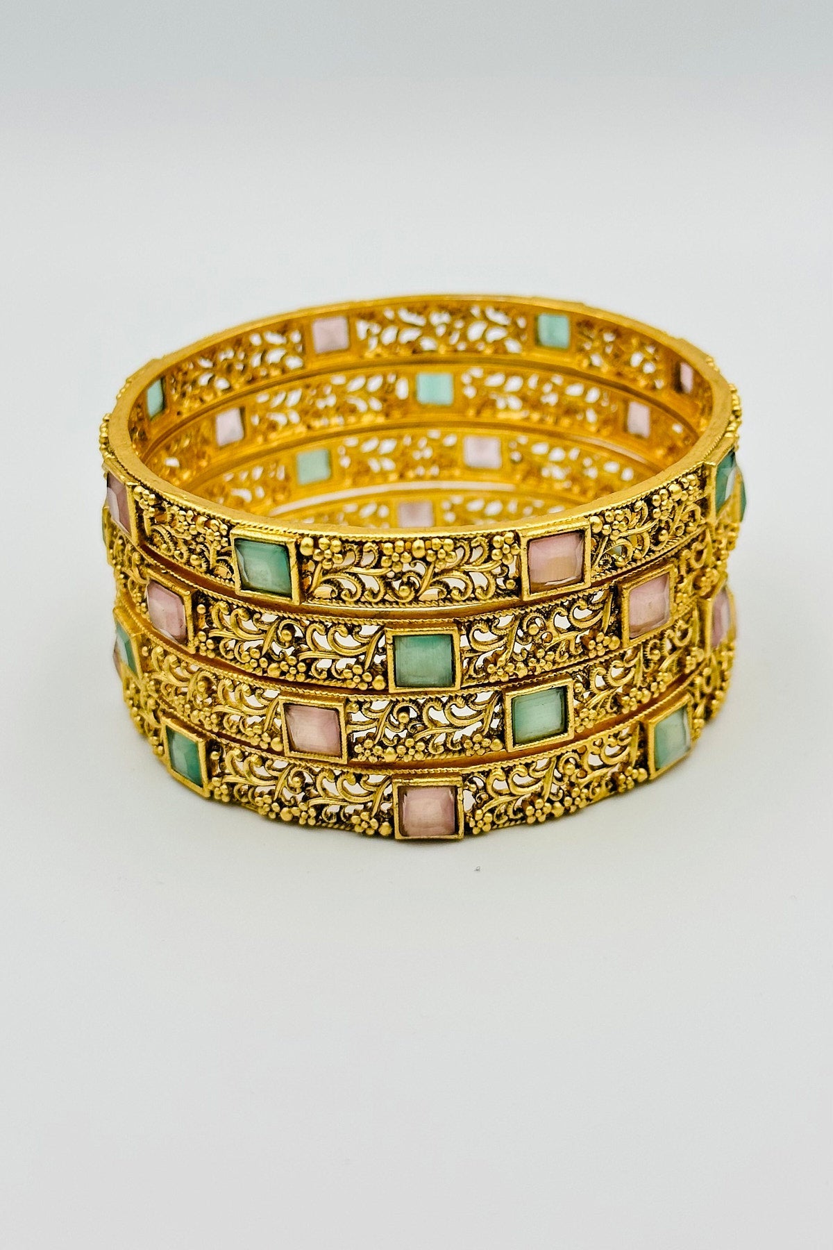 Floral Bangles with Stone Embellishments for a Charming and Elegant Look - swadeshsouq.com