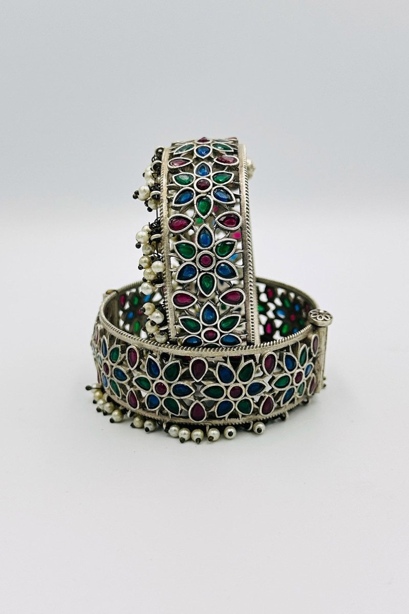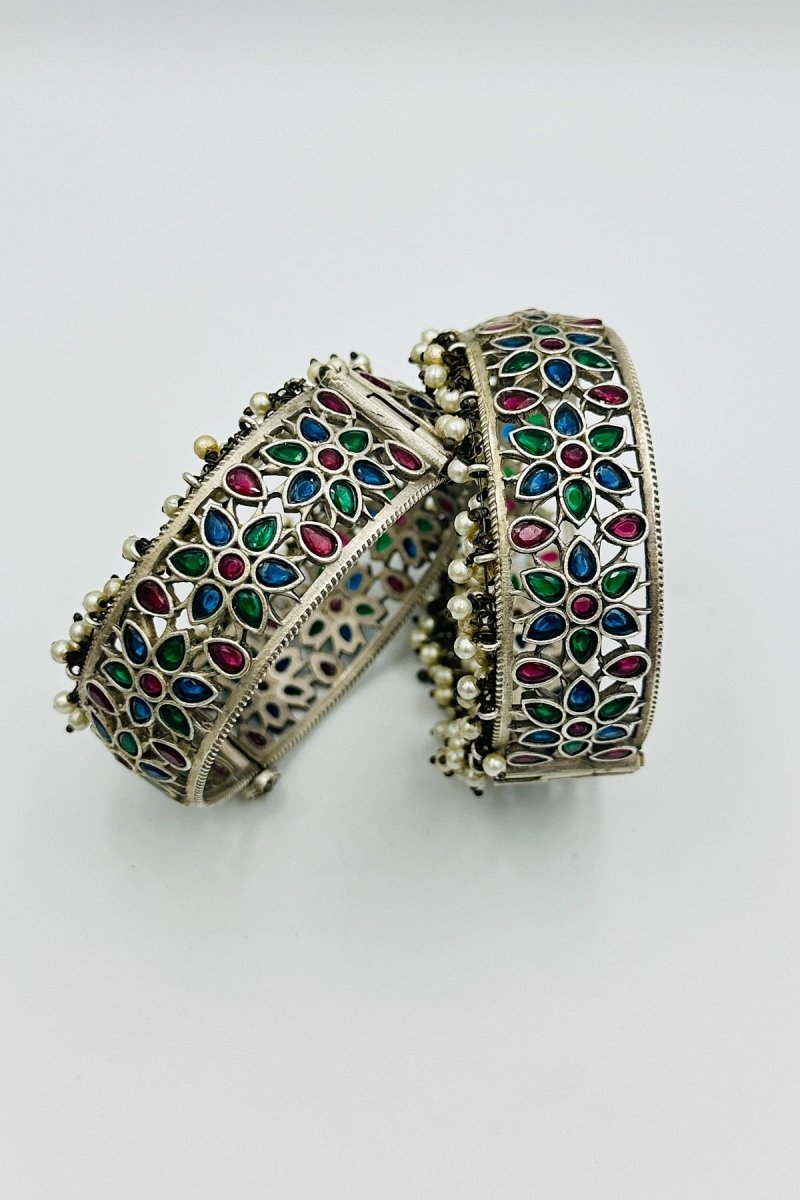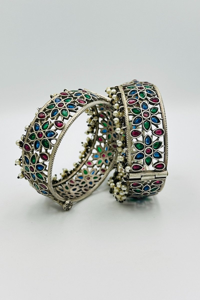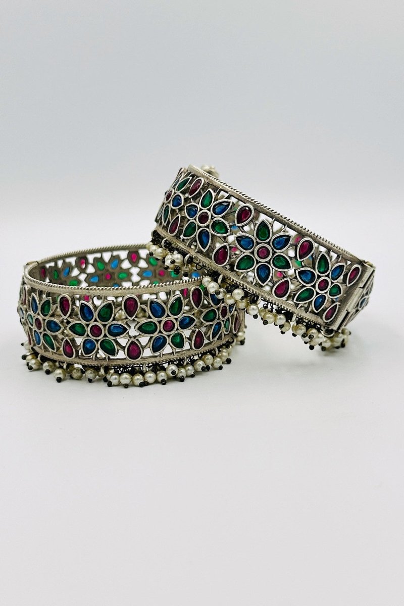Kaleidoscope Brilliance: Multicolor Silver Bangles - swadeshsouq.com