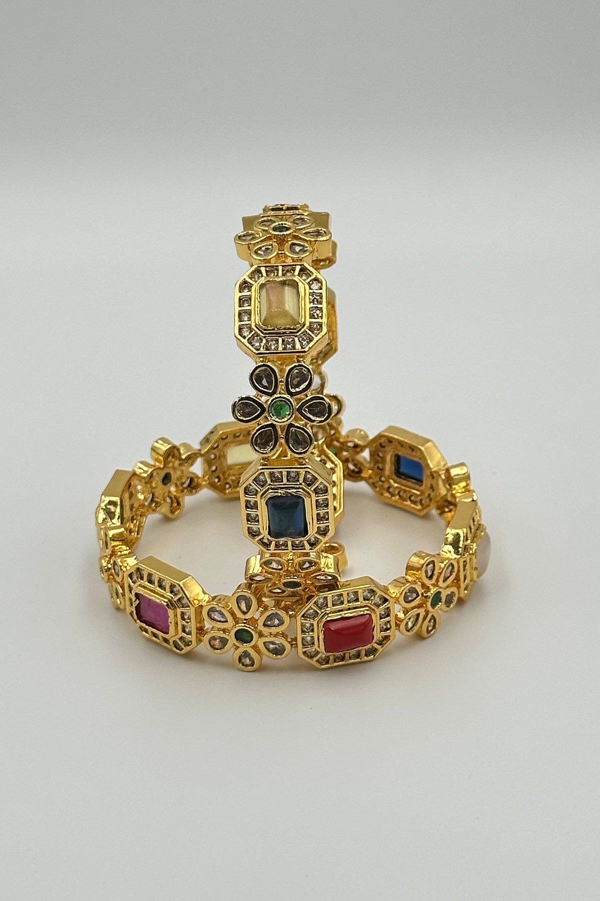 Mesmerising Radiance: Multi-Colour Stone Bangles with Intricate Design