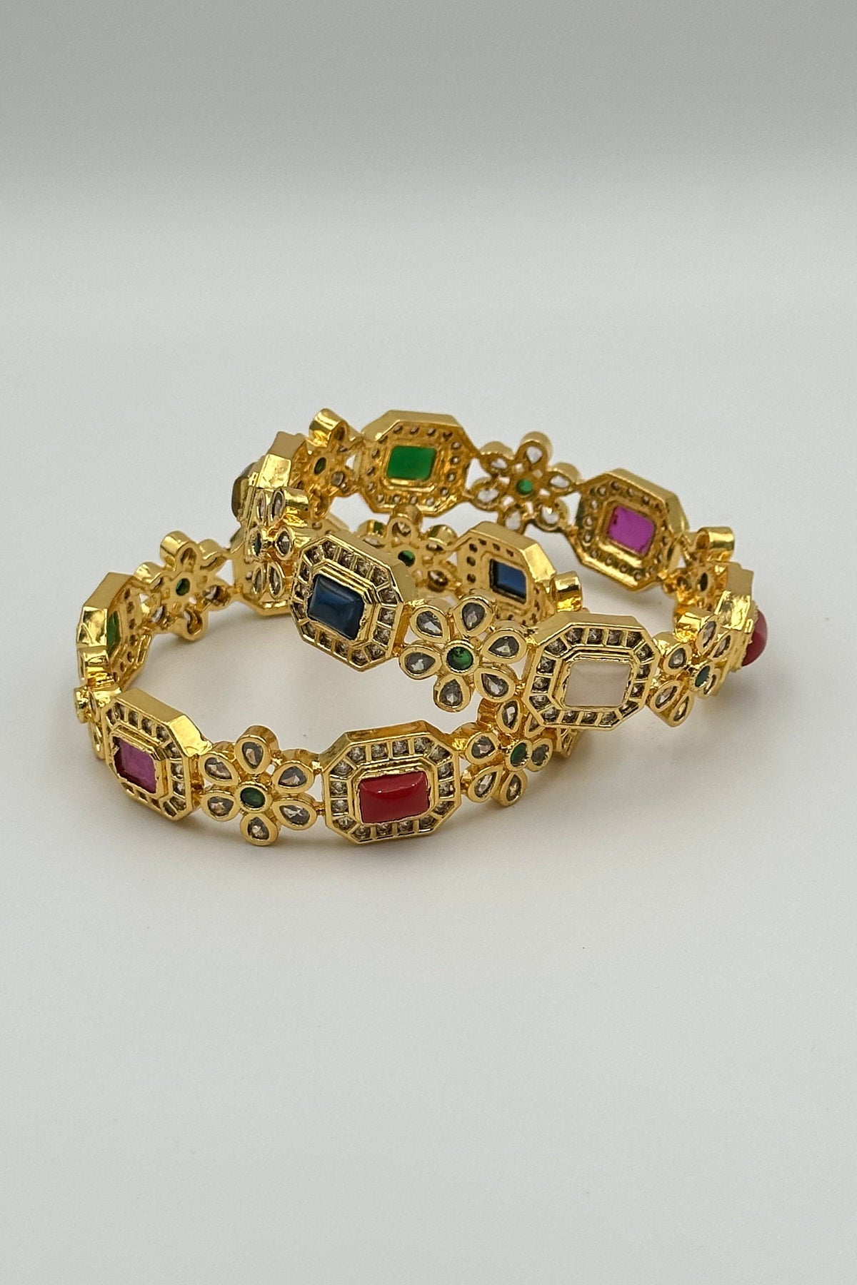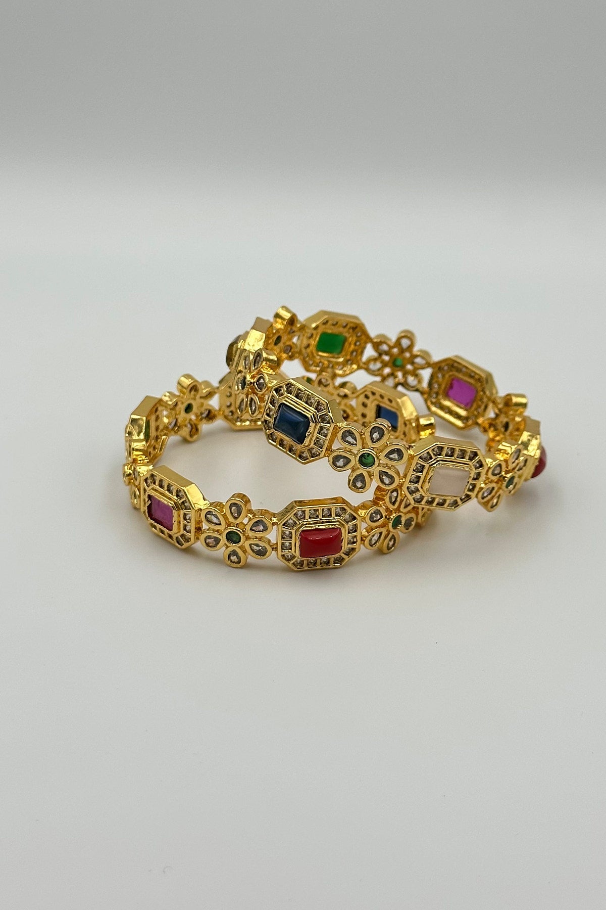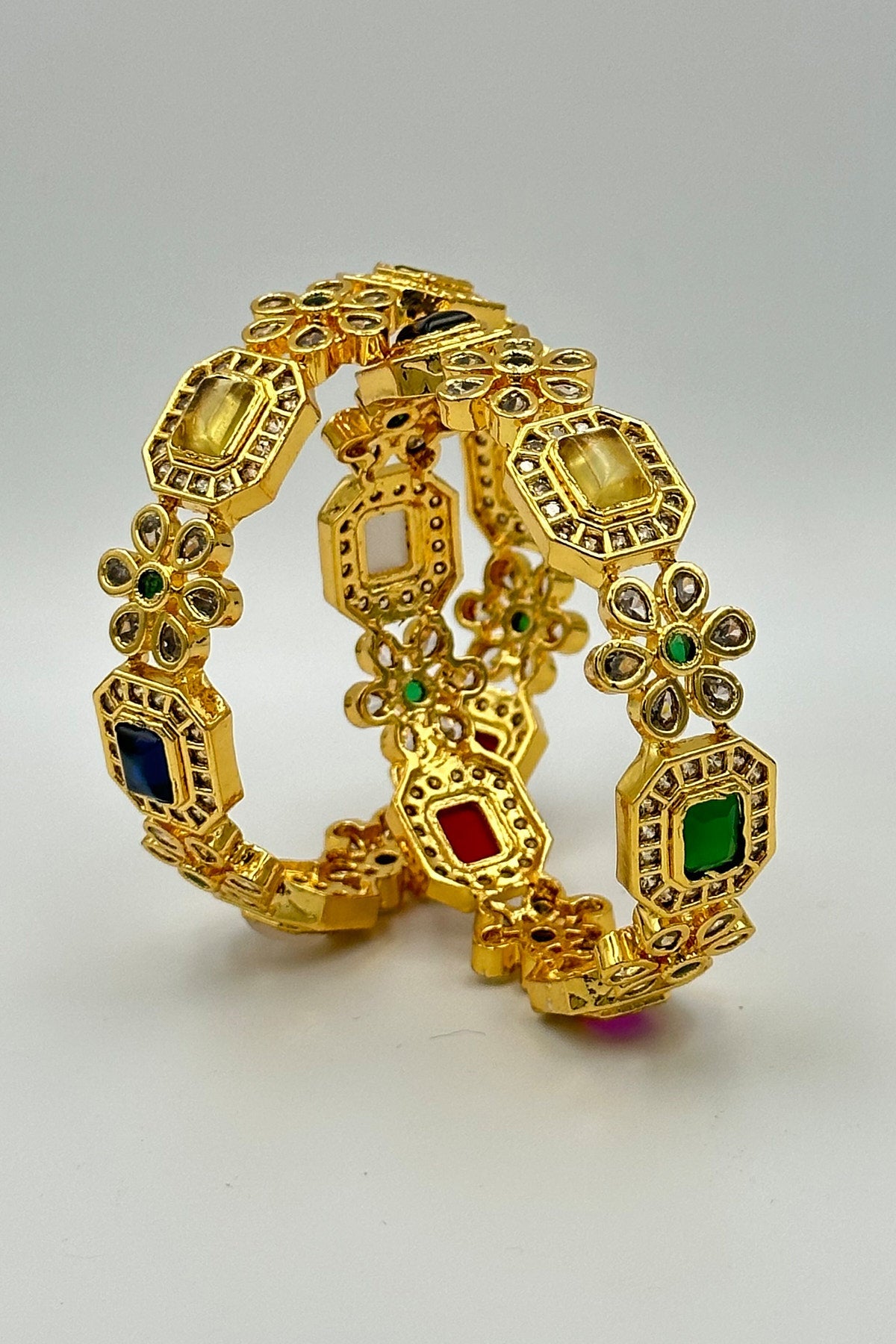 Mesmerising Radiance: Multi-Colour Stone Bangles with Intricate Design - swadeshsouq.com
