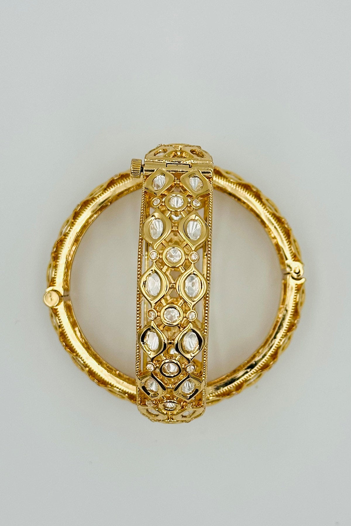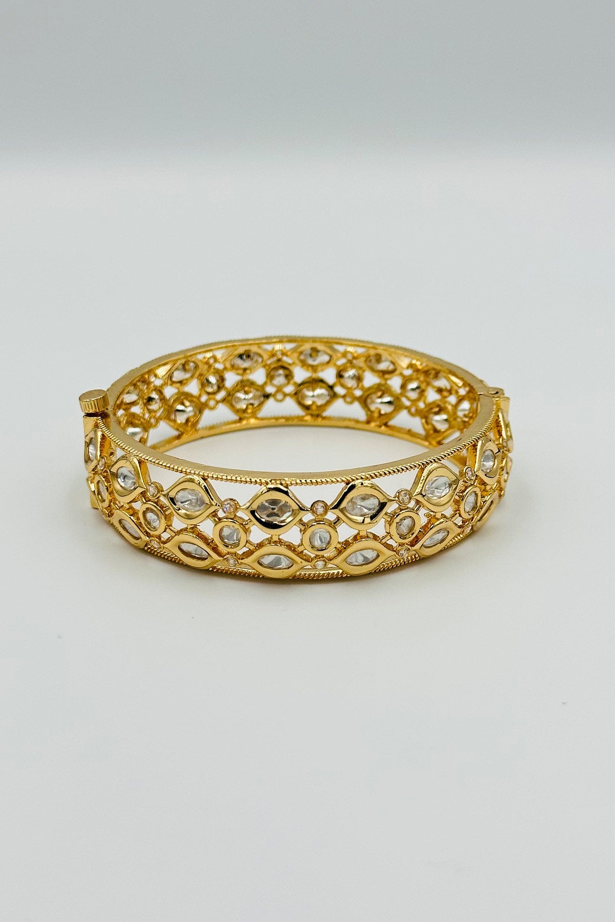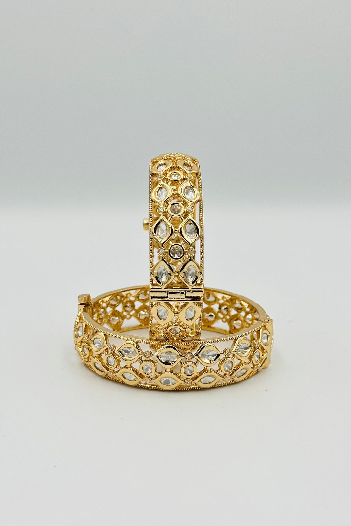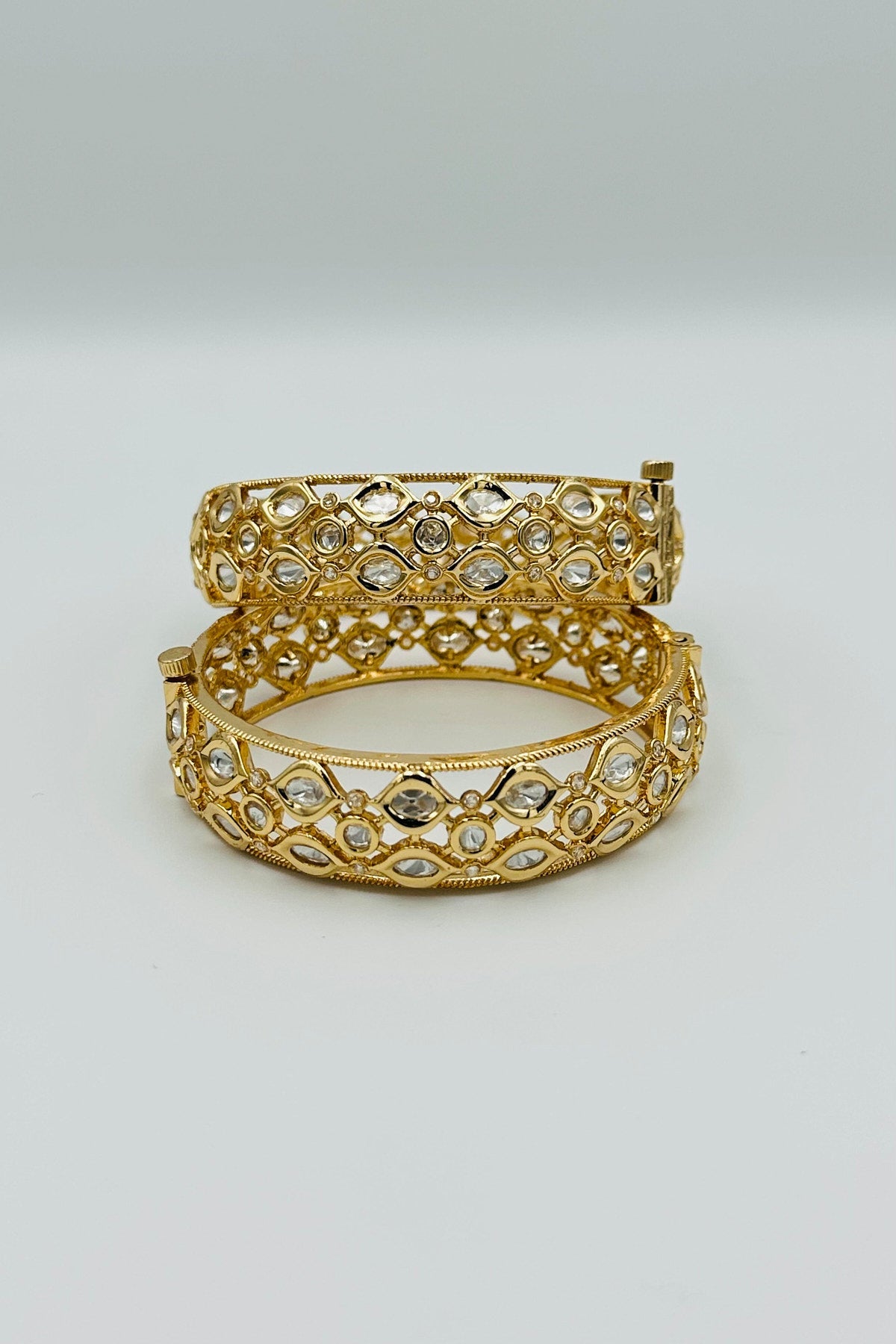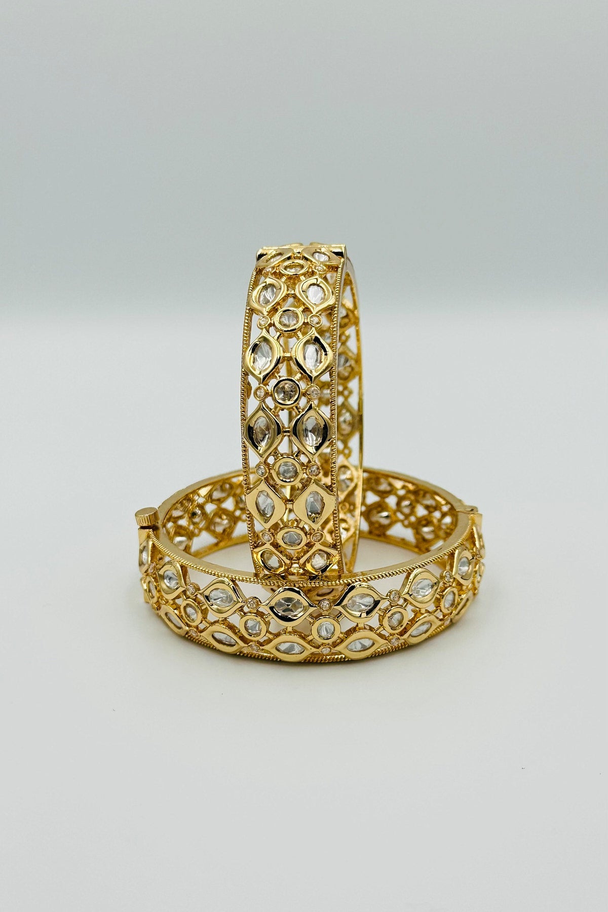 Premium High Gold Bangles Set with Kundan Stones - swadeshsouq.com