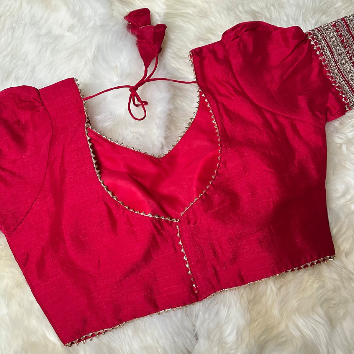 Make a bold and joyful style statement with our Fuchsia Pink Silk Blouse, crafted to turn heads. The vibrant hue adds a pop of playful elegance, while the puff sleeves bring in a hint of vintage charm. Tailored from premium silk, this blouse is a perfect blend of festive spirit and graceful design.