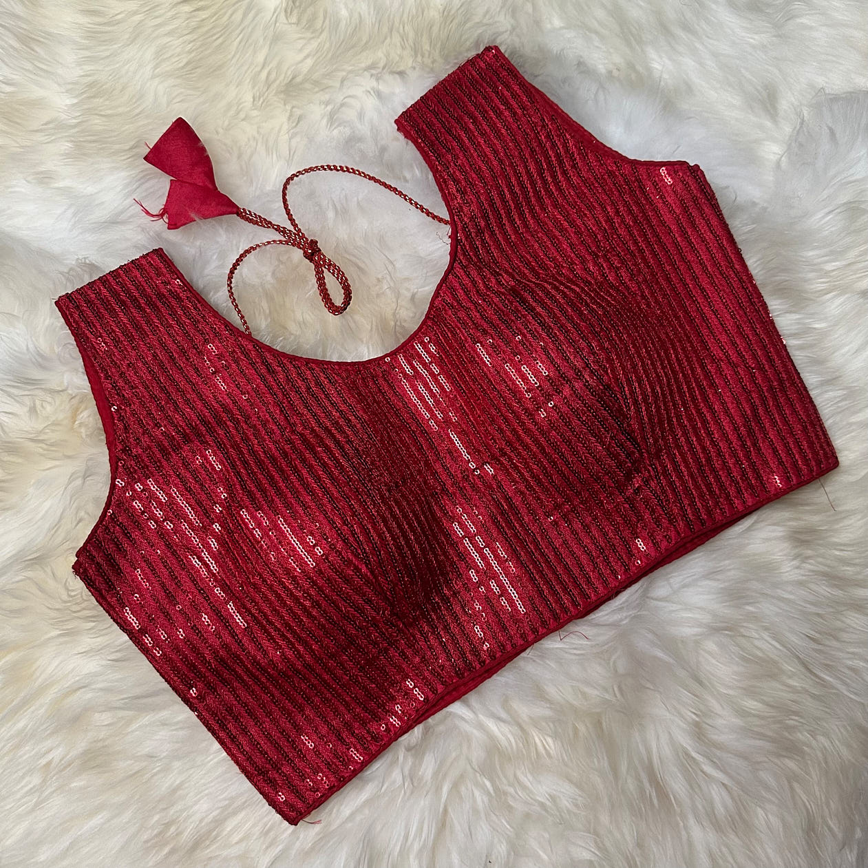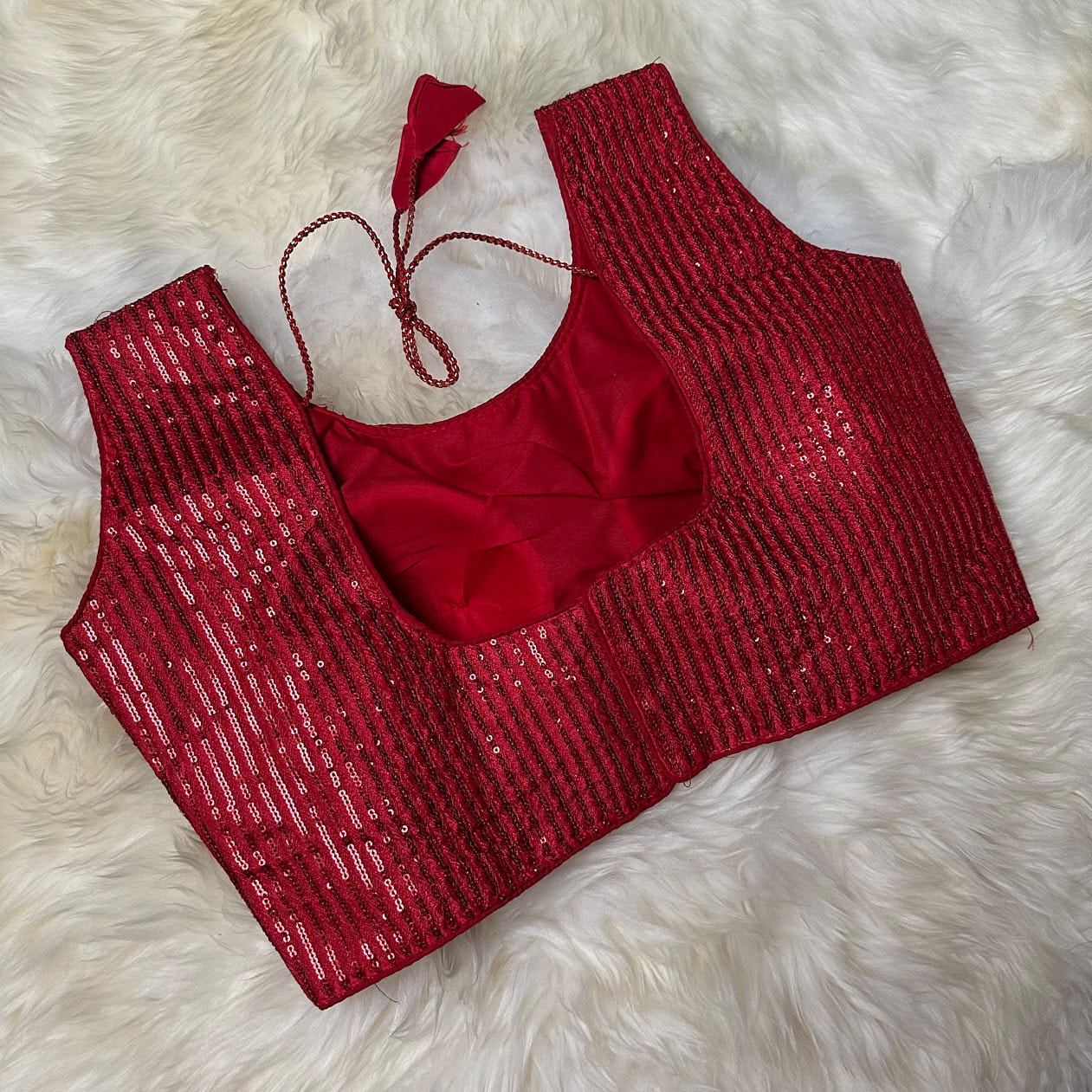 Steal the spotlight with this dazzling Red Designer Blouse, completely adorned with shimmering sequins that exude festive glamour. Its vibrant red hue and radiant sparkle make it the ultimate choice for weddings, receptions, cocktail parties, and grand celebrations. Designed for both style and comfort, it features a smooth inner lining and a flattering fit that enhances your silhouette. Pair it with a saree or lehenga to create a look that’s bold, elegant, and unforgettable.