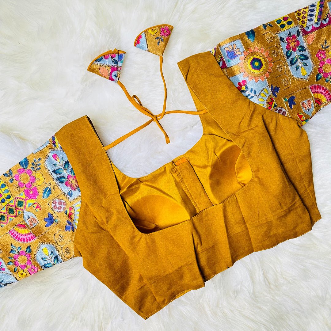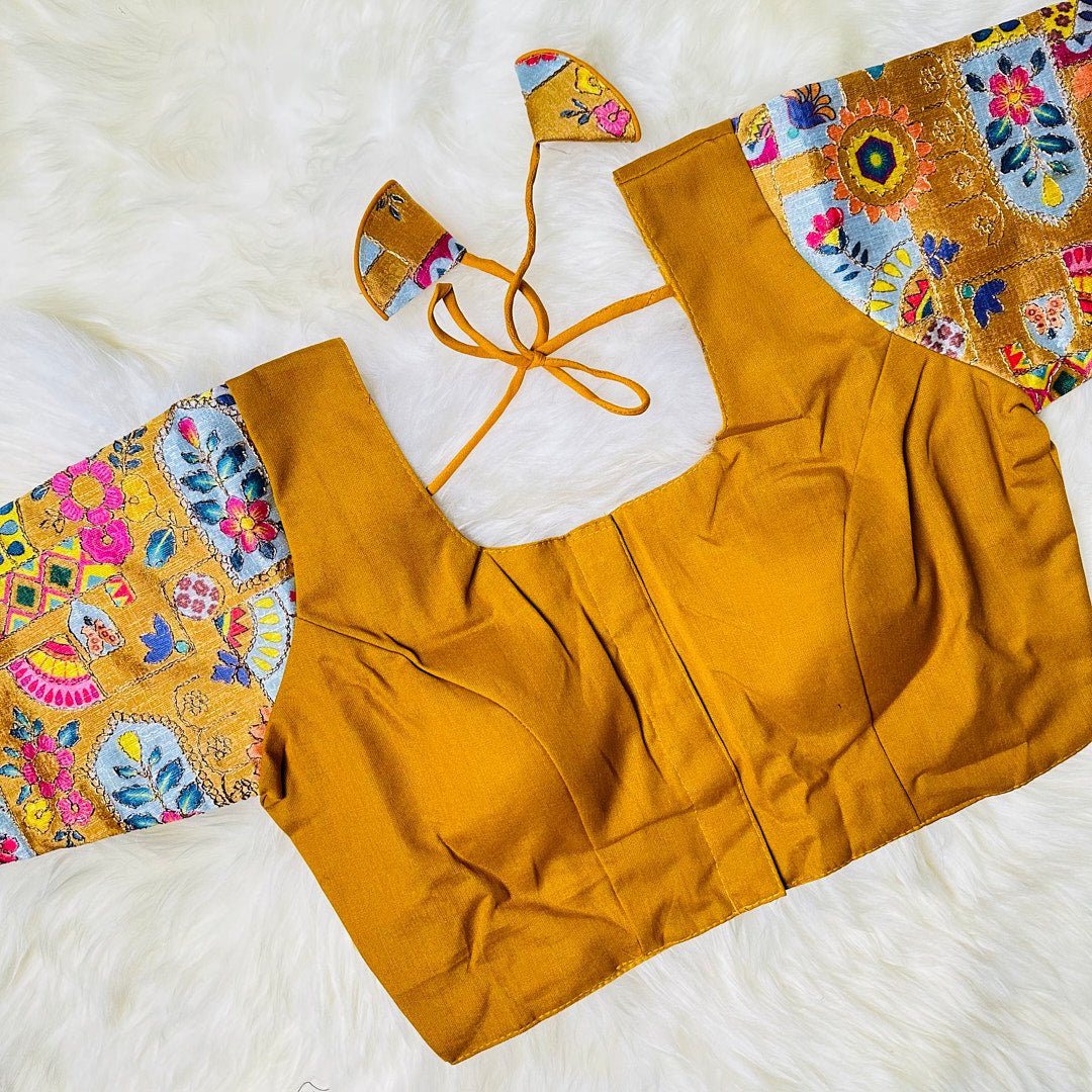 Mustard Yellow Blouse with Contrast Sleeves: A Beautiful Design for Effortless Style. - swadeshsouq.com