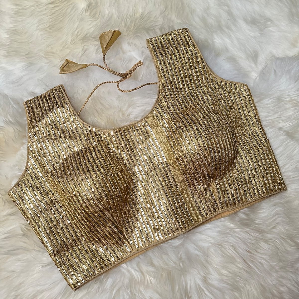 Shine like a star in this breathtaking Golden Designer Blouse, fully adorned with glistening sequins for a rich and luminous finish. The warm golden tone exudes opulence, making it the perfect choice for weddings, receptions, cocktail nights, and grand festive occasions. Crafted for comfort with a smooth inner lining and a flattering fit, this blouse blends luxury with wearability. Pair it with a saree or lehenga to create a dazzling, unforgettable party look.