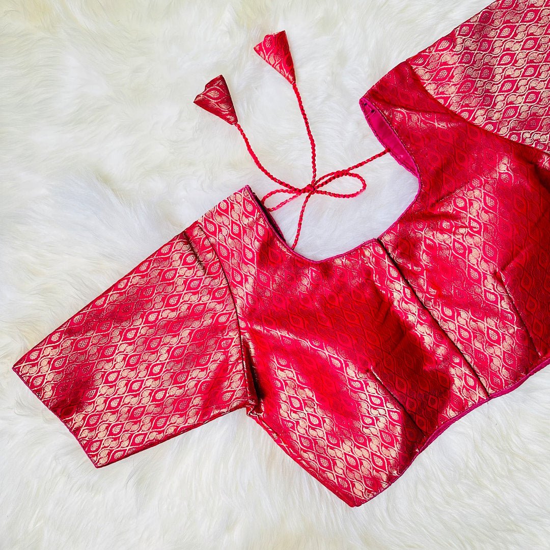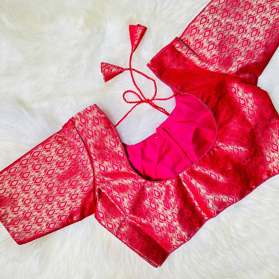Stand Out in Style with a Pink Brocade Blouse with Golden Leaf Patterns. - swadeshsouq.com