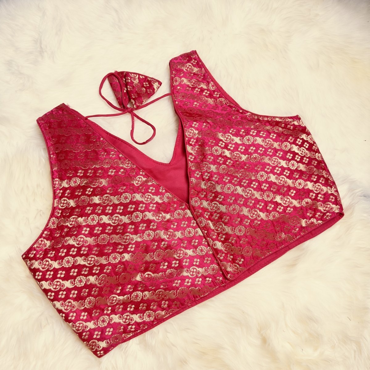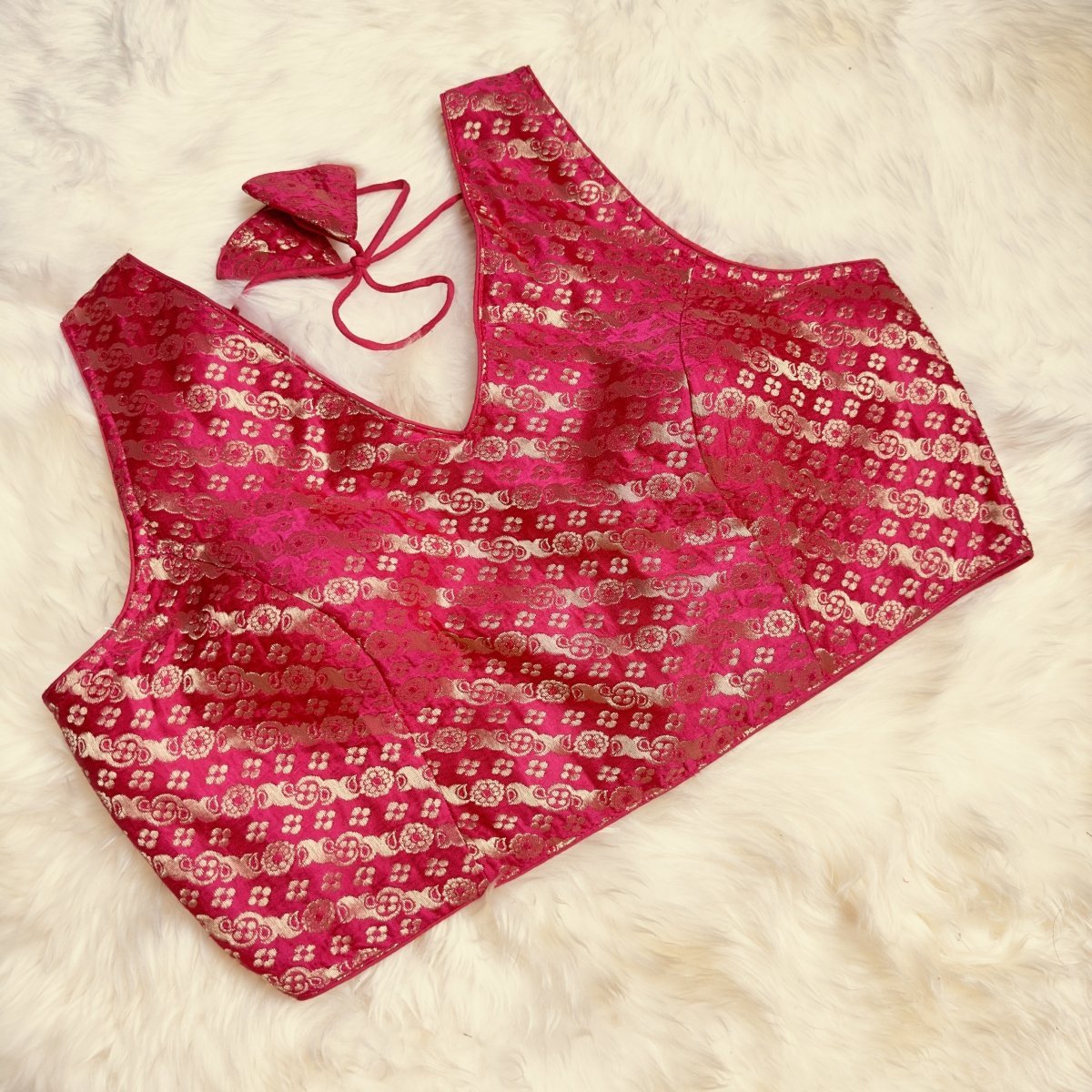 Stunning Hot Pink Brocade Silk Blouse - Plus Size Statement Elegance - swadeshsouq.com