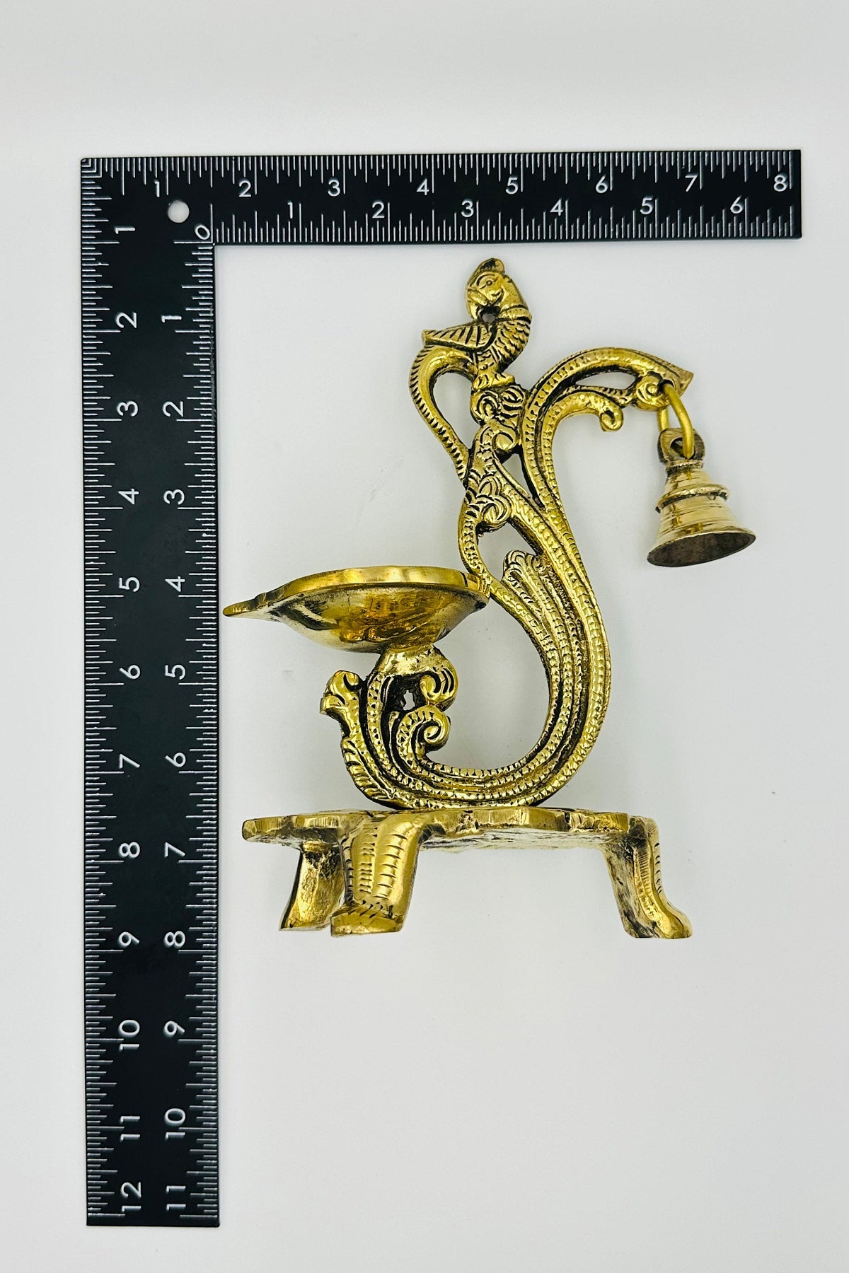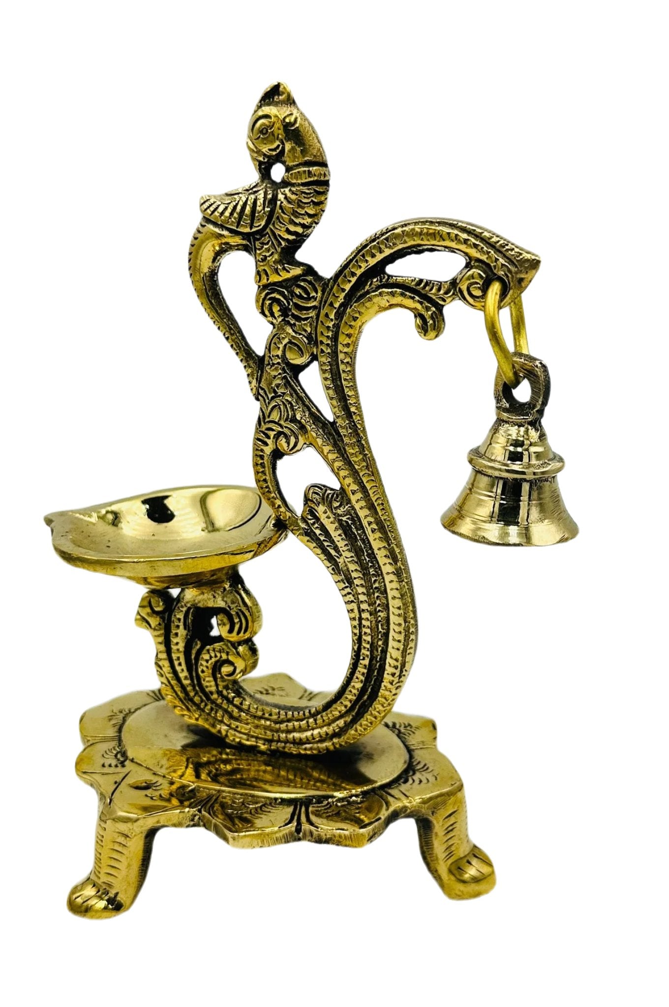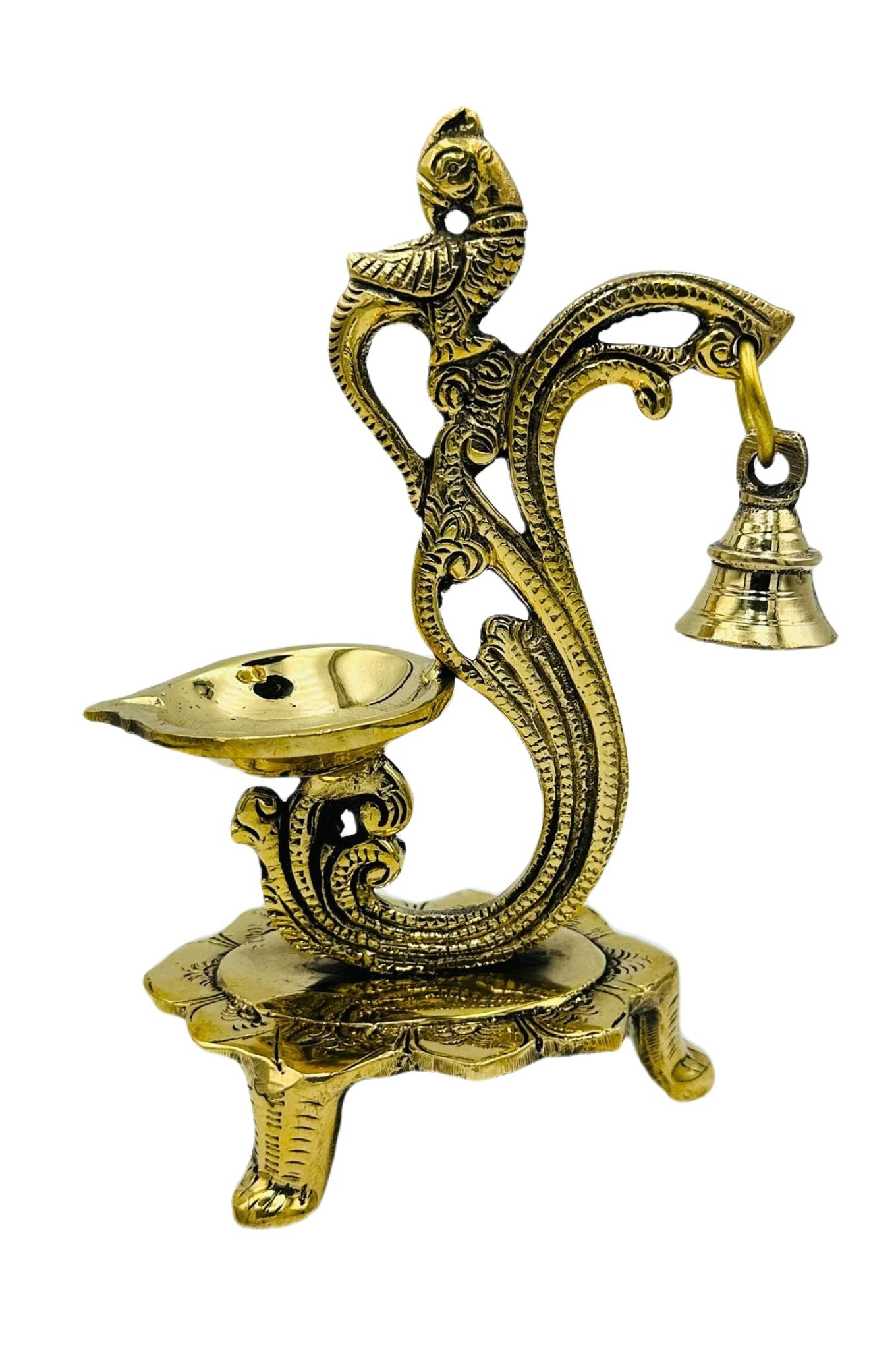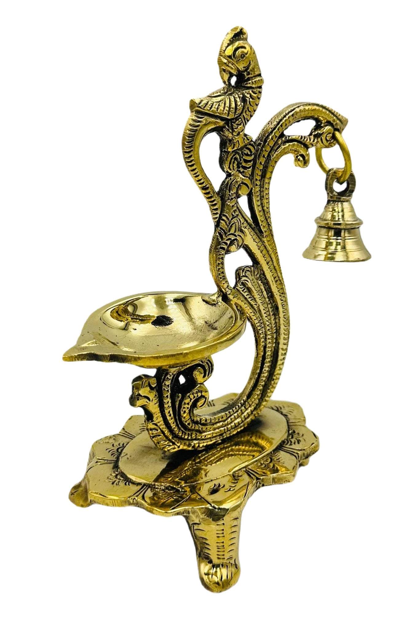 Experience elegance with our "Elegant Brass Standing Diya" adorned with an exquisite flower design and a delicate bell. This finely crafted diya is a symbol of grace and tradition, adding an enchanting touch to your sacred rituals and decor. Illuminate your space with its warm radiance and let the gentle chime of the bell fill your surroundings with tranquility and blessings.