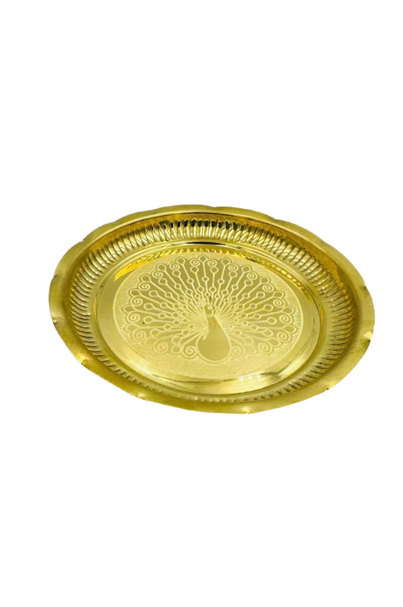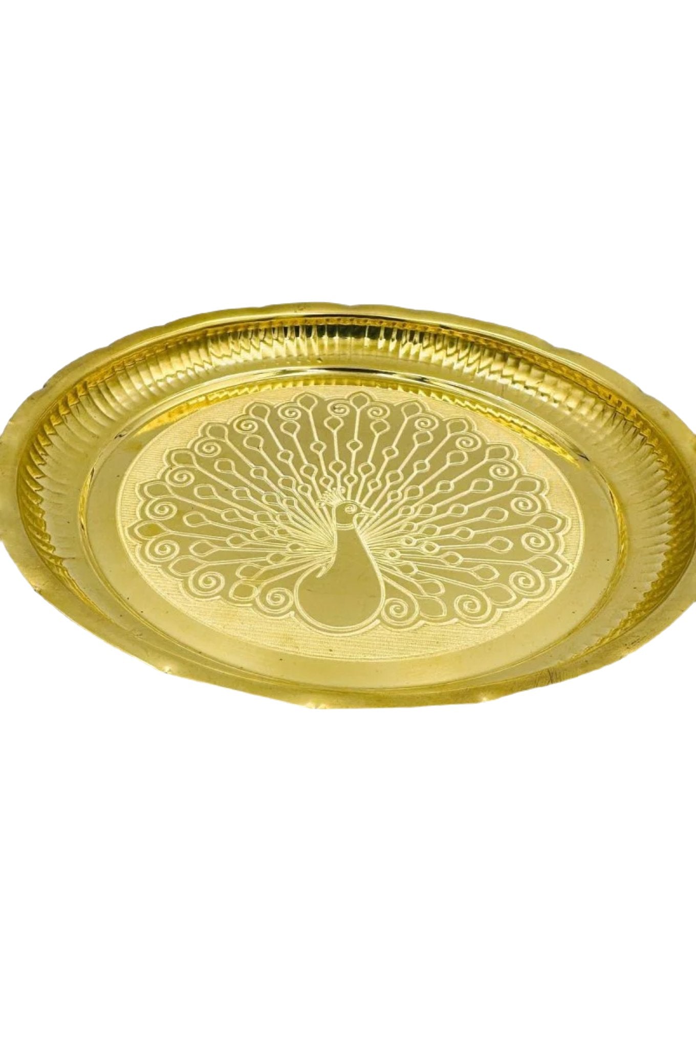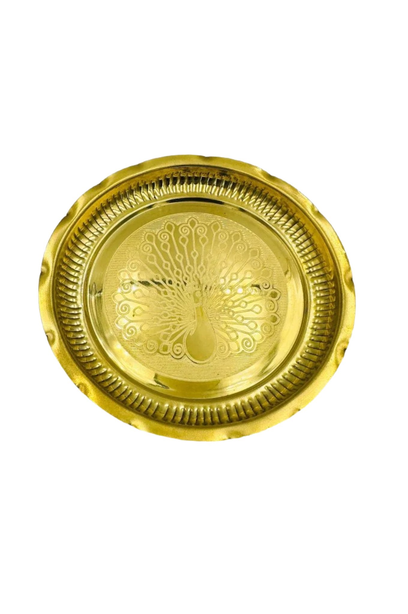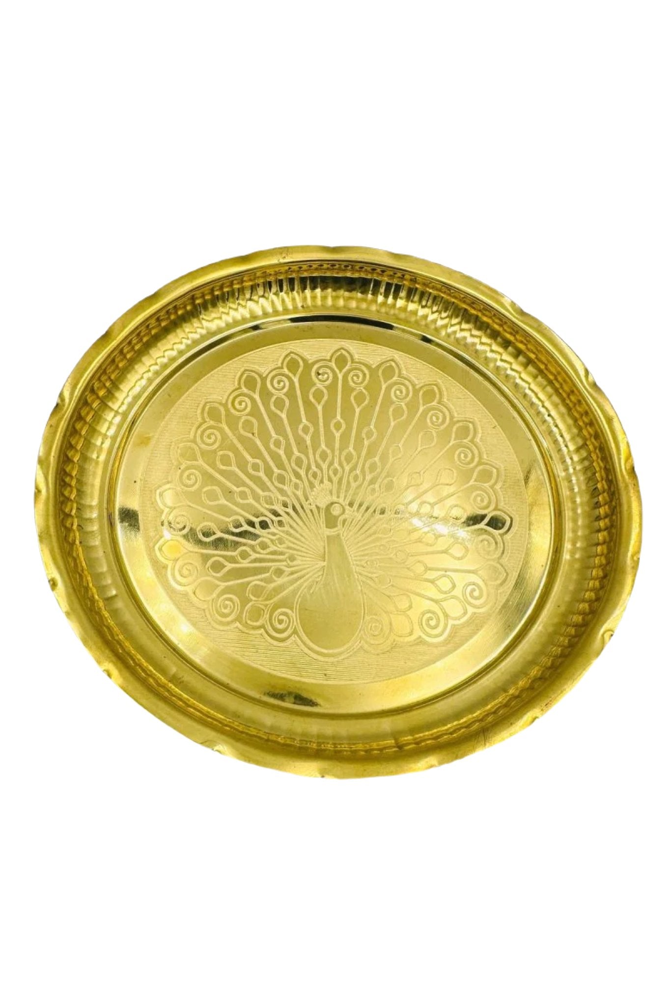 Embrace elegance and tradition with our exquisite brass plate adorned with a beautiful peacock design. Crafted with meticulous artistry, this plate serves as a graceful addition to your sacred rituals or as a stylish serving piece. The intricate peacock motif adds a touch of sophistication, making it a centerpiece of admiration in any setting. Ideal for enhancing your home décor or presenting delectable dishes with flair, this brass plate is a symbol of timeless craftsmanship and cultural heritage. Celebrate every occasion with grace and beauty using this versatile and enchanting brass plate.