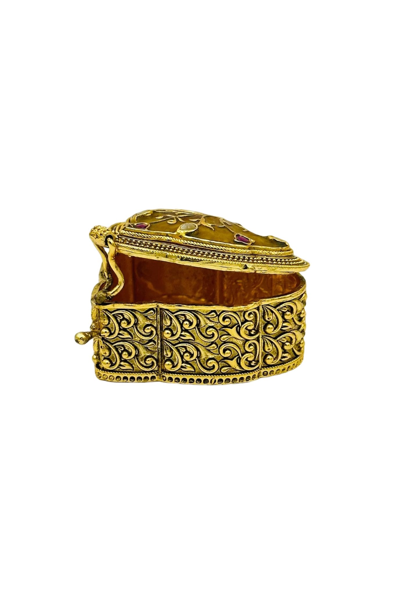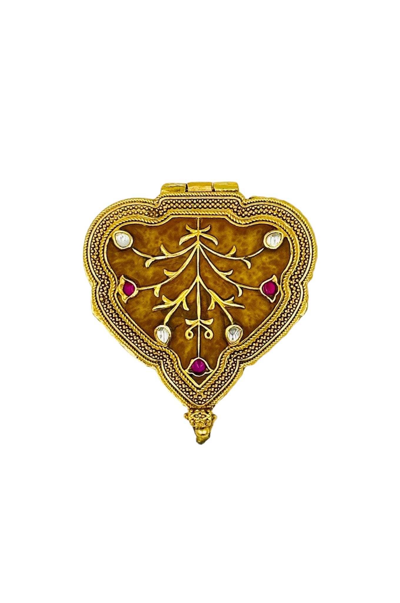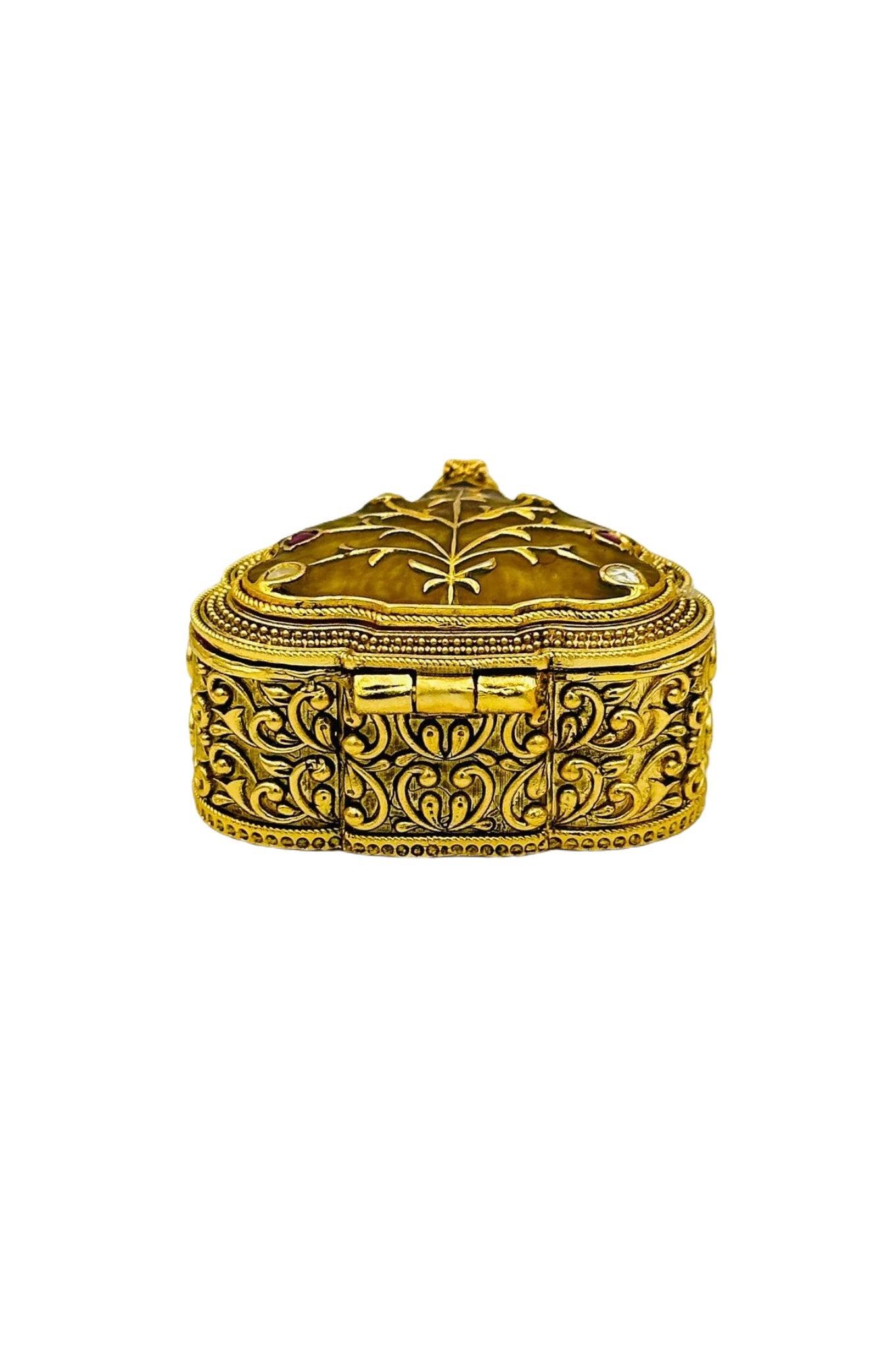 Jadau Stone Brass Kumkum Box with AD Stone Embellishments - swadeshsouq.com