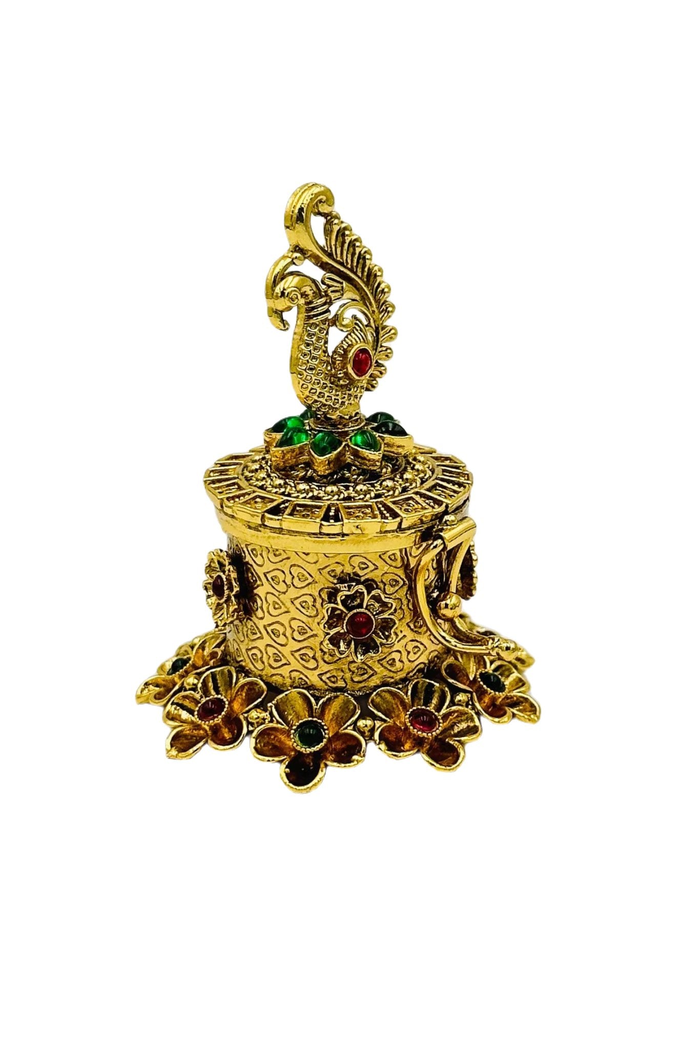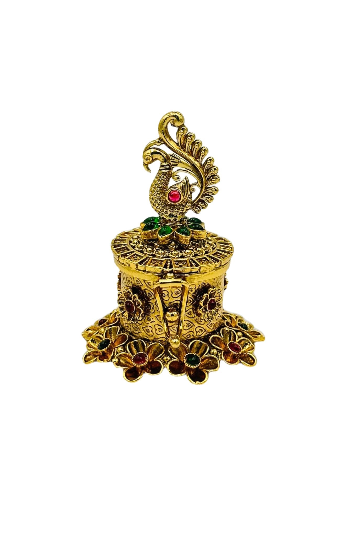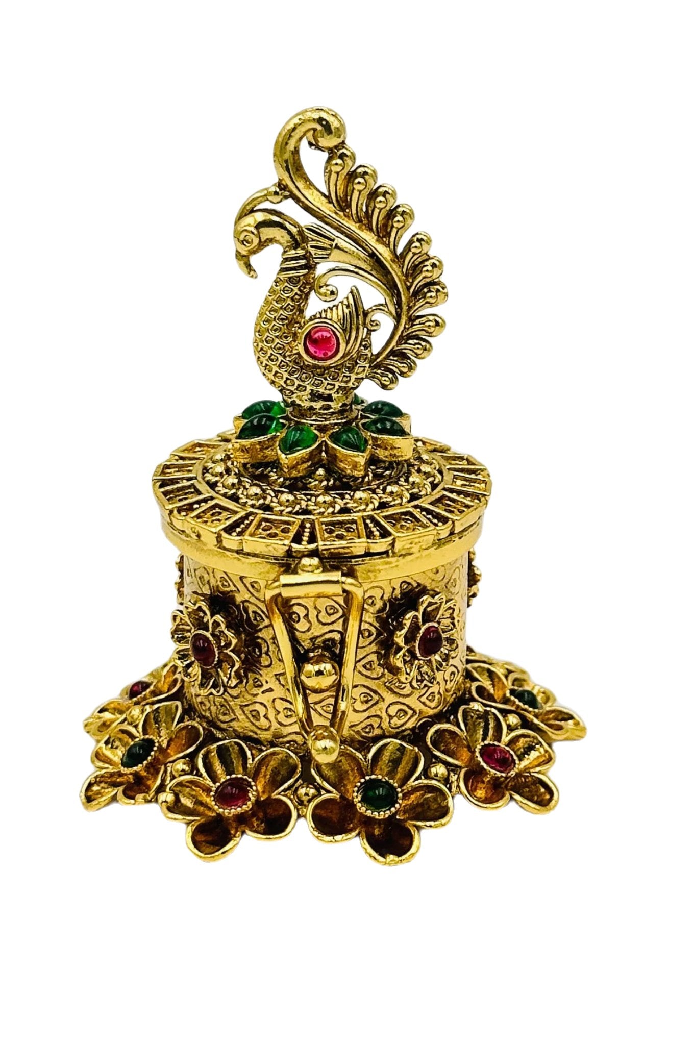 Premium Peacock Kumkum/Sindoor Box in Nagas Artistry with Kemp Accents - swadeshsouq.com