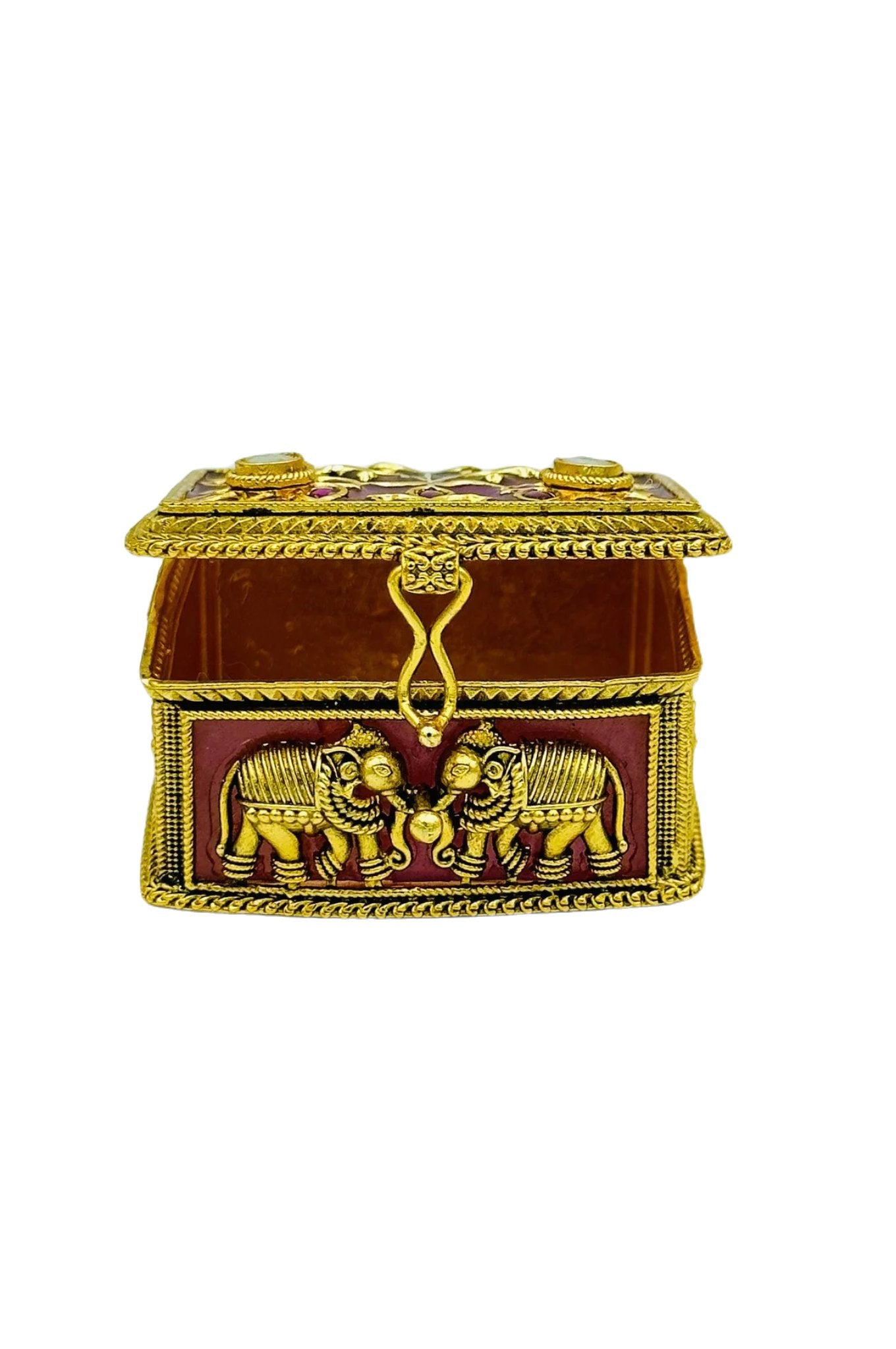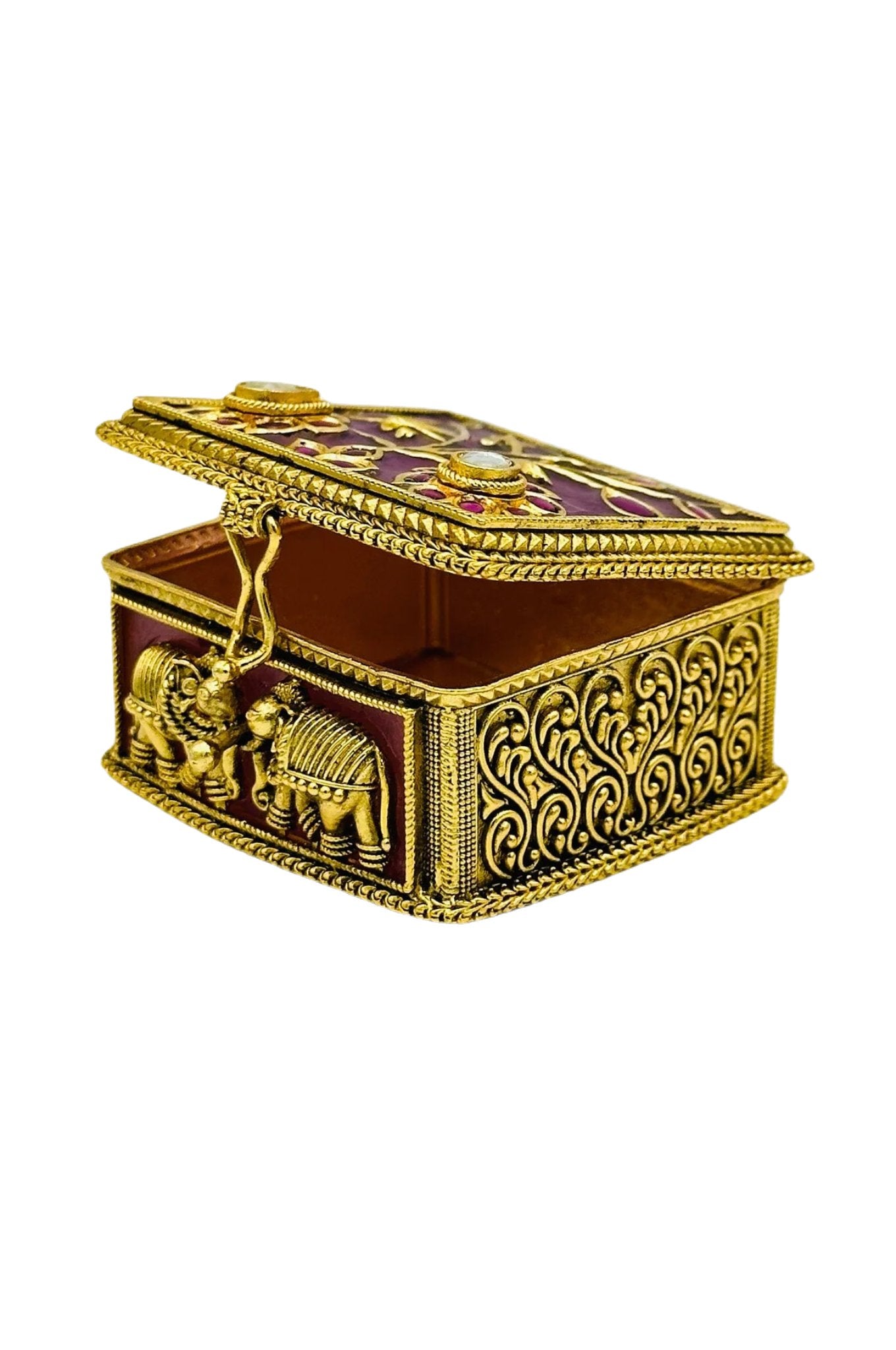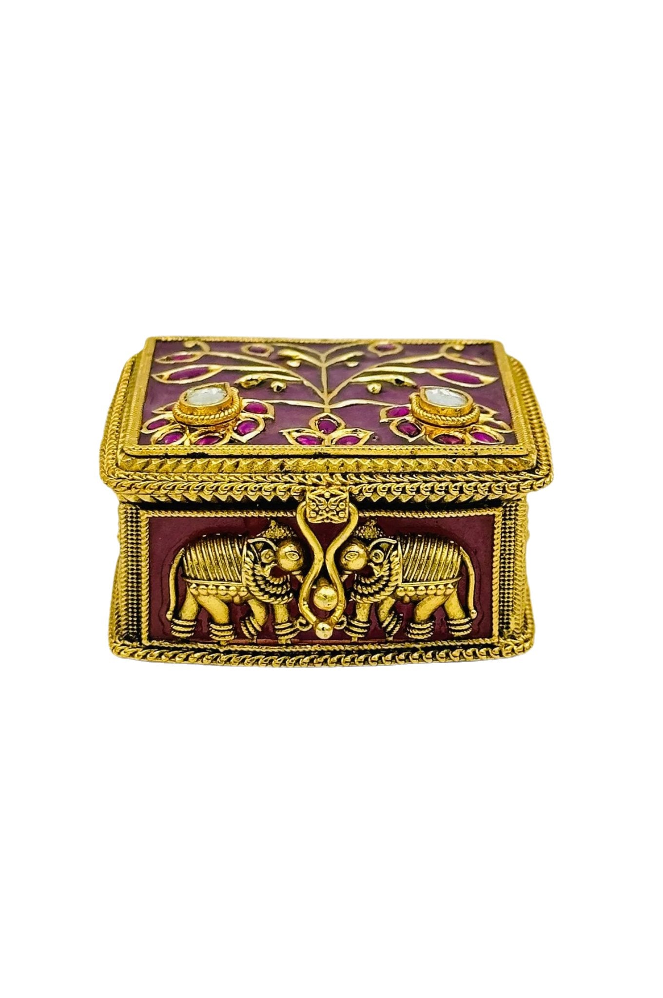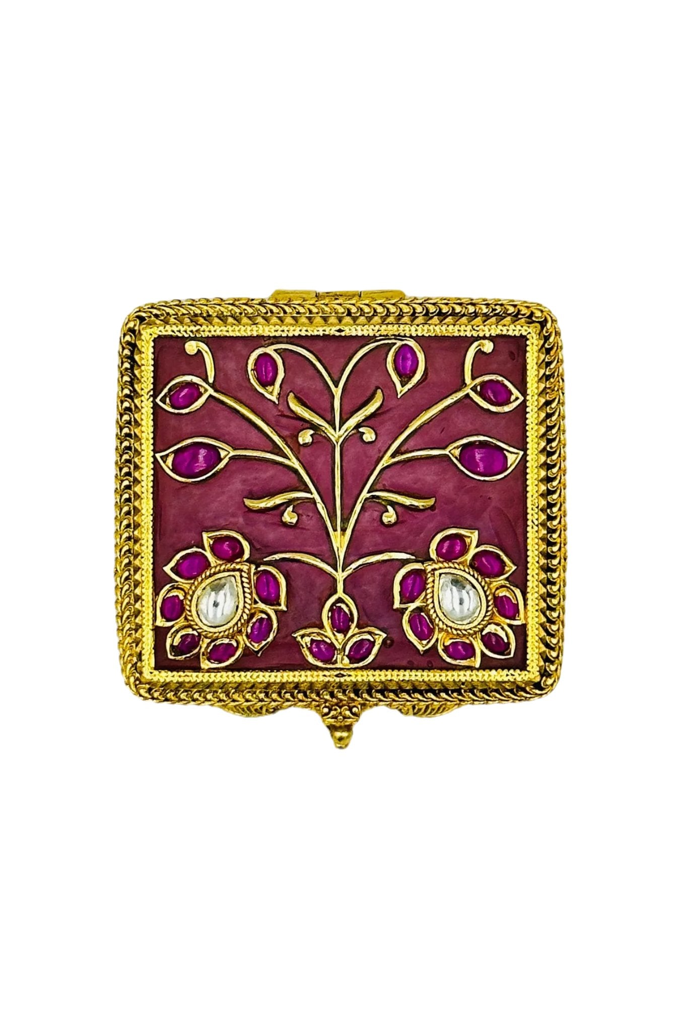 Experience the fusion of vibrant design and meticulous craftsmanship with our keepsake box, enveloped in the vivacious allure of bright pink. Each hand-carved nuance is a testament to age-old artistry, beautifully accentuated by the luminosity of a Jadau stone. The detailed Meenakari carving further elevates its charm, presenting a piece that seamlessly marries tradition with contemporary elegance.