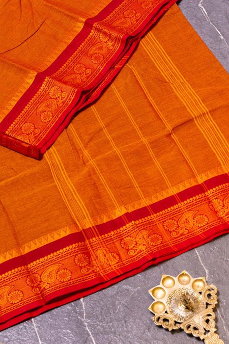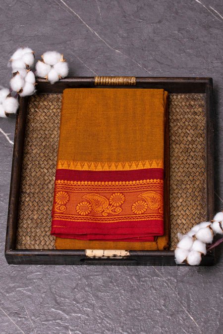 Elevate your ethnic wardrobe with this exquisite deep mustard yellow pure cotton Chettinad saree, beautifully paired with rich maroon red borders. Crafted from soft, breathable cotton, this saree offers comfort and timeless elegance, making it perfect for festive occasions, cultural celebrations, or everyday wear. The traditional Chettinad weave and vibrant color combination add a touch of sophistication, making this saree a must-have for lovers of classic Indian fashion.