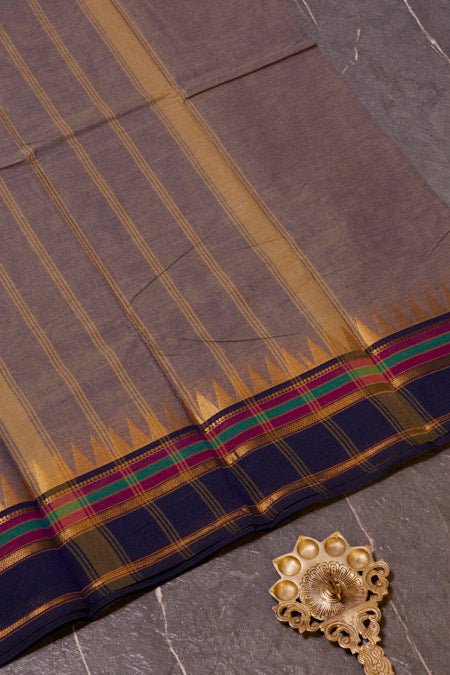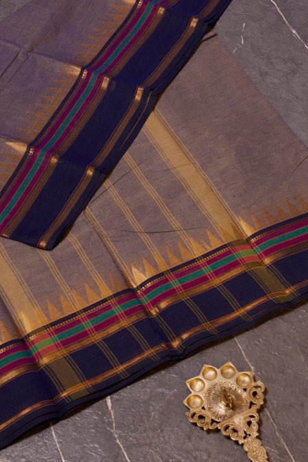 Elegant Chettinad Cotton Saree with Dark Blue Border - swadeshsouq.com