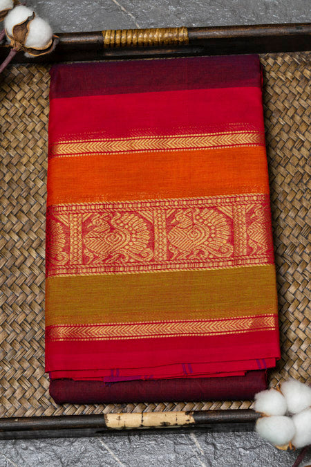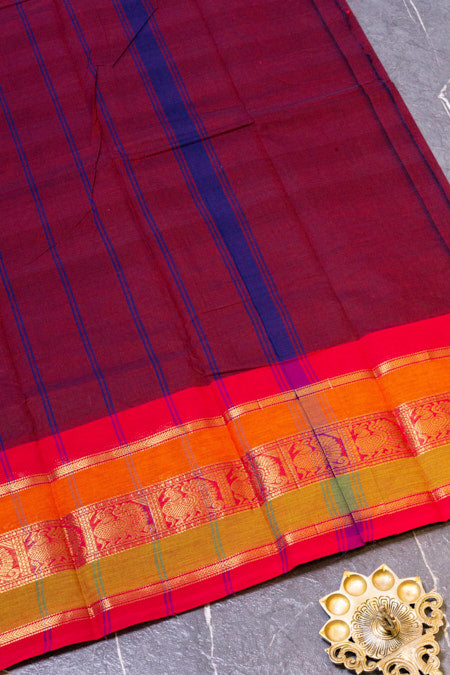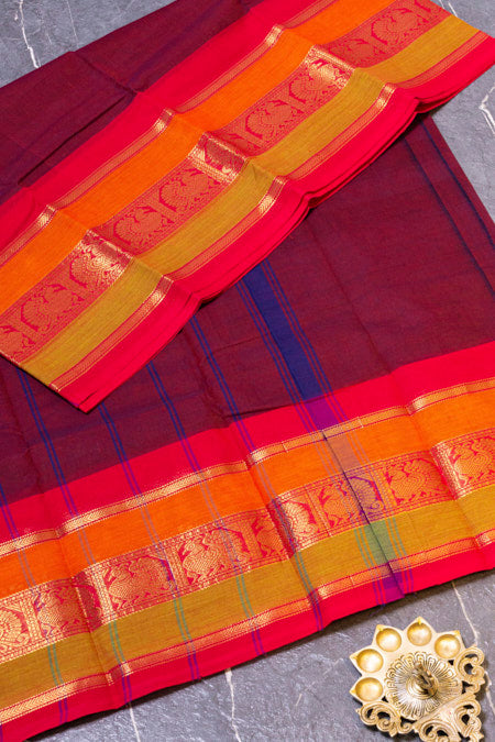Maroon Pure Chettinad Cotton Saree with Rich Elegant Borders