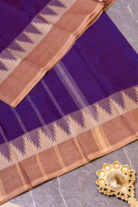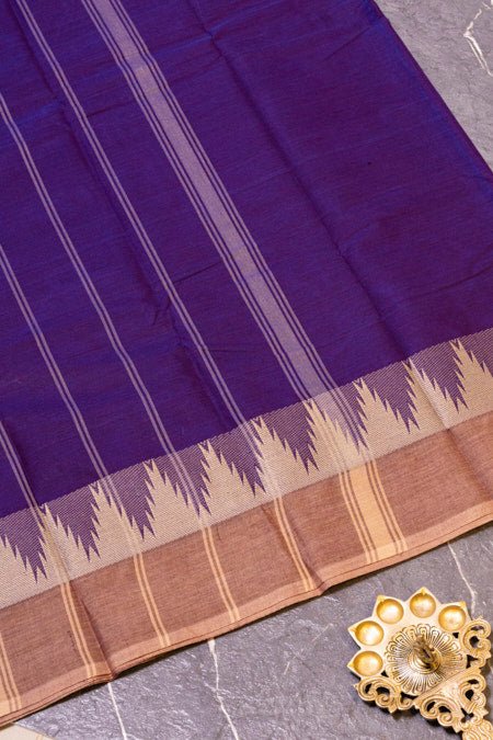 Drape yourself in the rich allure of this midnight blue pure cotton saree, enhanced by beautifully crafted borders that add a touch of sophistication. The deep blue hue exudes grace, while the soft, breathable cotton ensures all-day comfort. Perfect for festive celebrations, cultural events, or elegant everyday wear, this saree combines traditional artistry with effortless style, making it a must-have in any wardrobe.