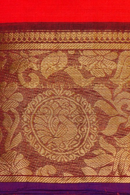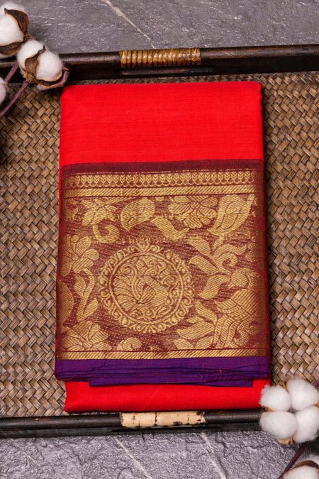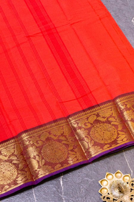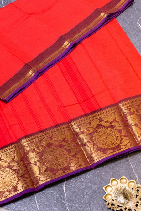 Peach and Purple Pure Cotton Saree with Elegant Zari Borders