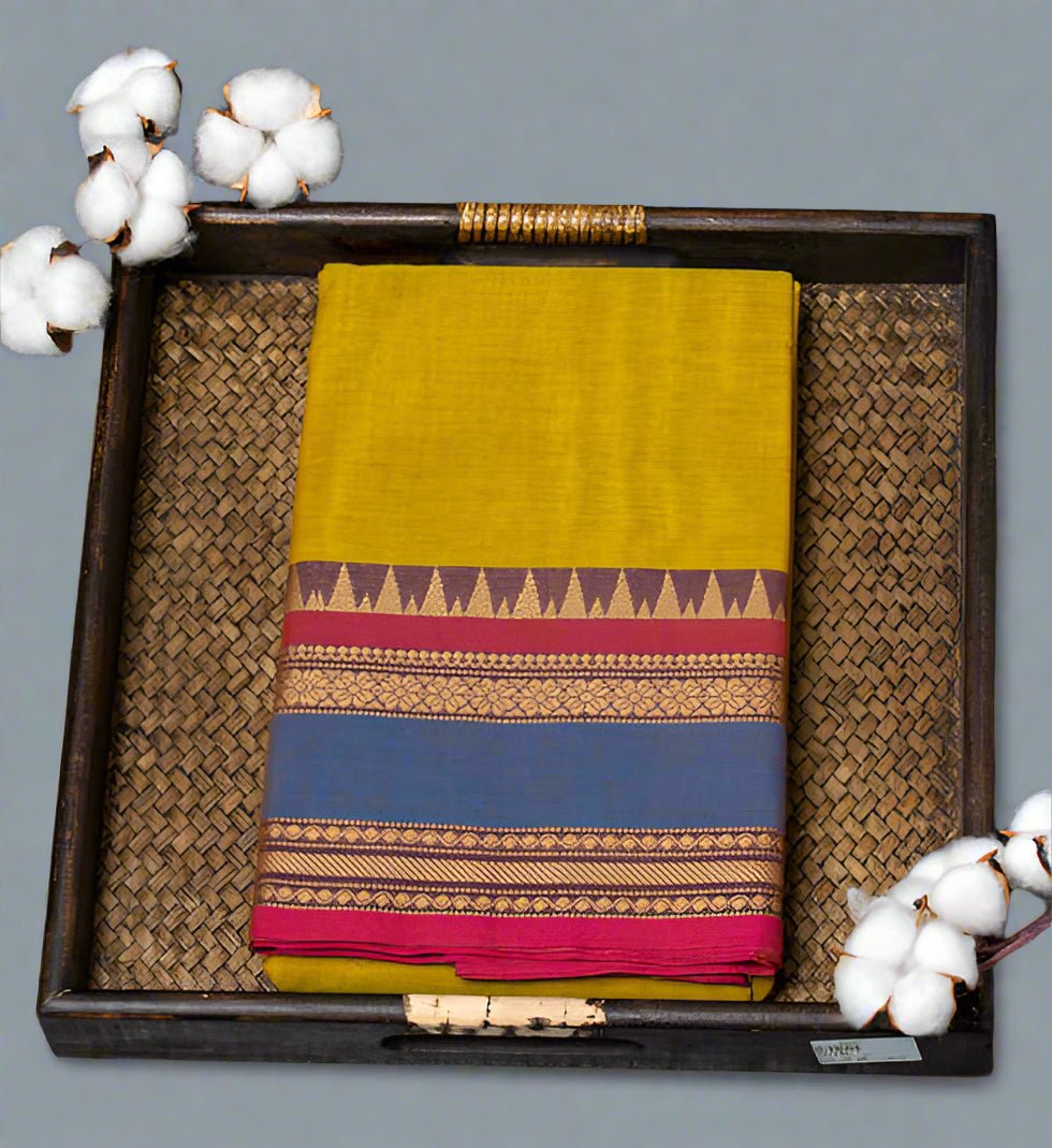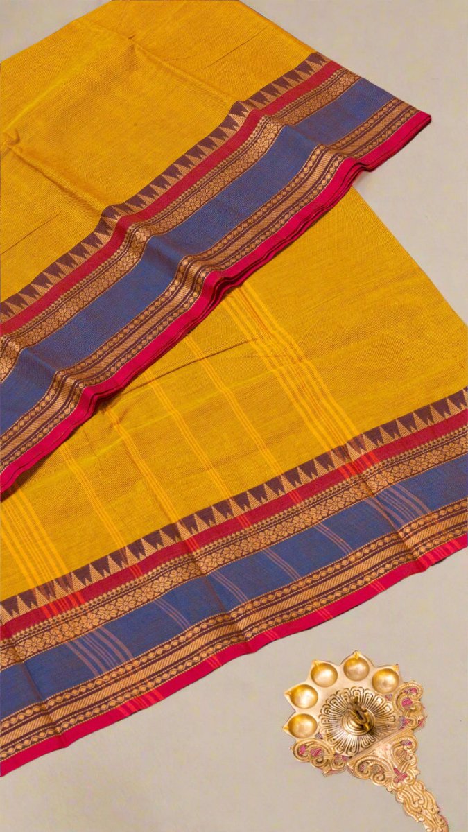 Radiant Yellow Chettinad Pure Cotton Saree – Timeless Elegance & Comfort
