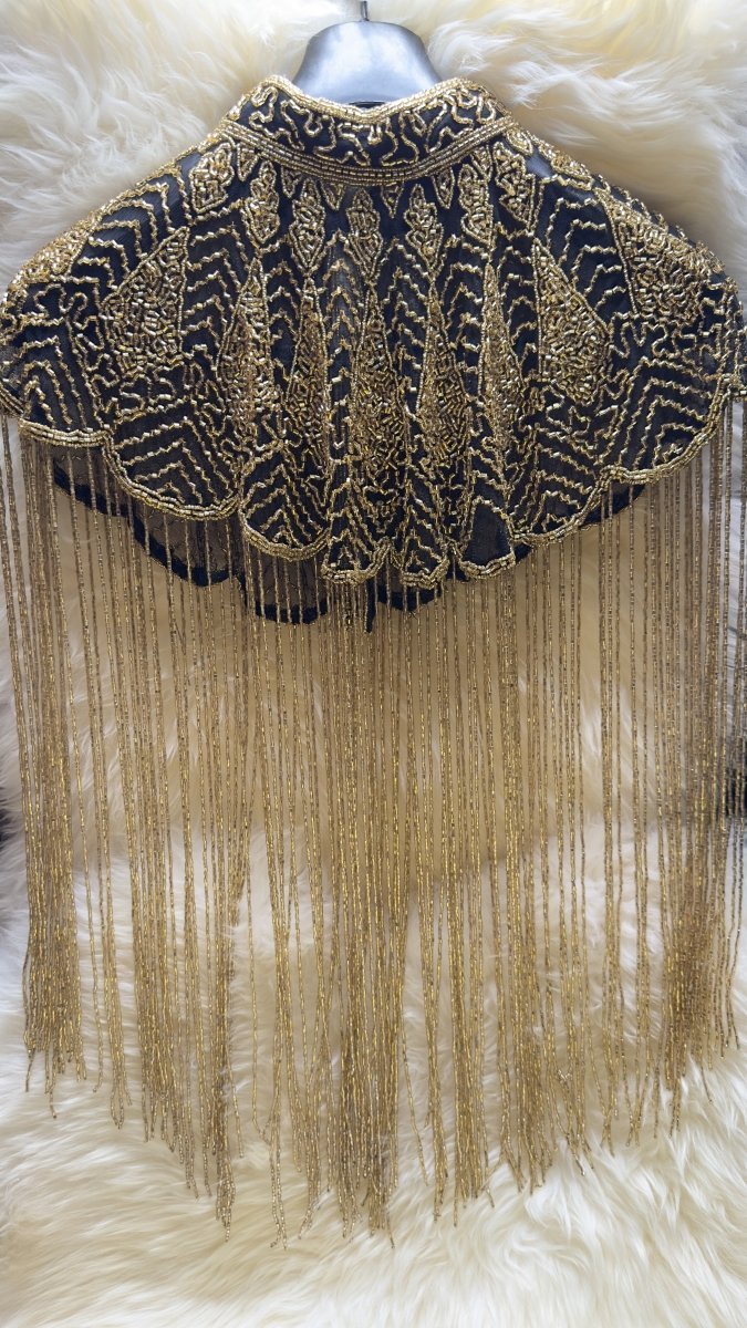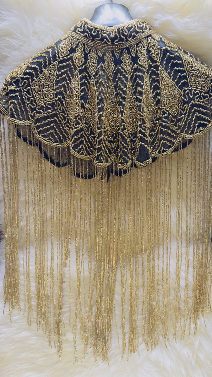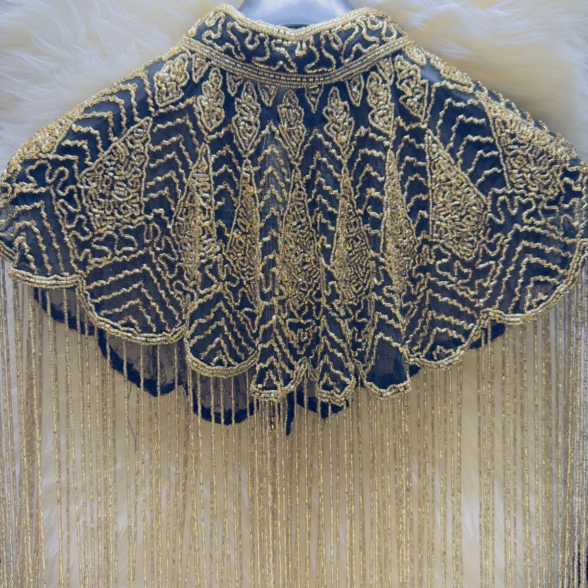 Elegant Black & Gold Beaded Tassel Cape - Statement Free Size Cape