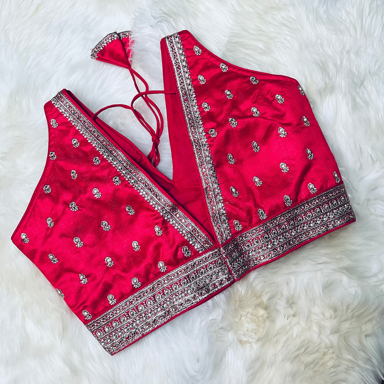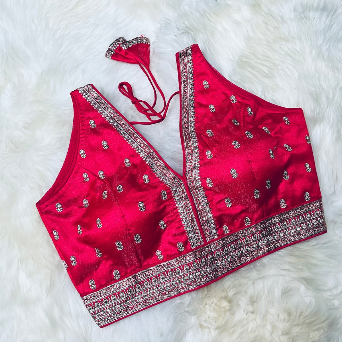 Embrace delicate charm and timeless beauty with this Rose Pink Silk Blouse, beautifully crafted with intricate embroidery and sparkling stone embellishments. Made from premium silk that shines softly in the light, this blouse adds a graceful glow to your festive and special occasion outfits. The perfect blend of tradition and modern elegance, it promises to elevate your ethnic wardrobe.