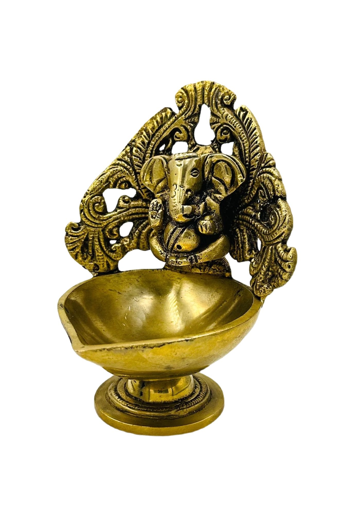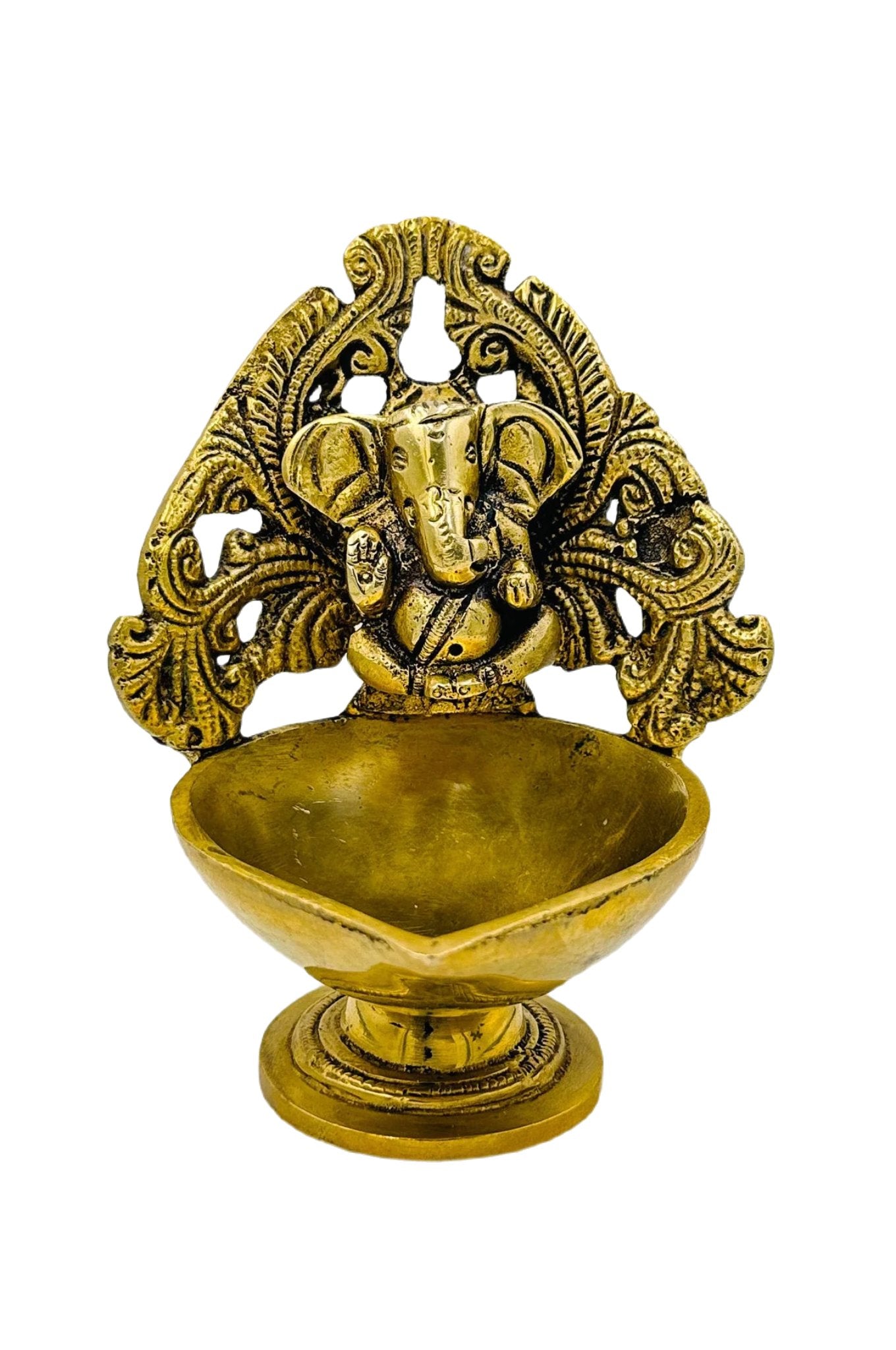 Introducing the "Ganesha Wall-Hanging Diya: Serene Radiance", a versatile and elegant addition to your home decor. This diya, featuring Lord Ganesha, symbolizes wisdom and prosperity. It can be gracefully hung on walls or doors, blending spirituality with aesthetic charm. Crafted from durable materials with intricate details, it not only lights up your space but also adds a peaceful ambiance. Perfect for daily prayers or festive decorations, this diya is a beautiful reminder of divine presence and a great choice for a thoughtful gift.