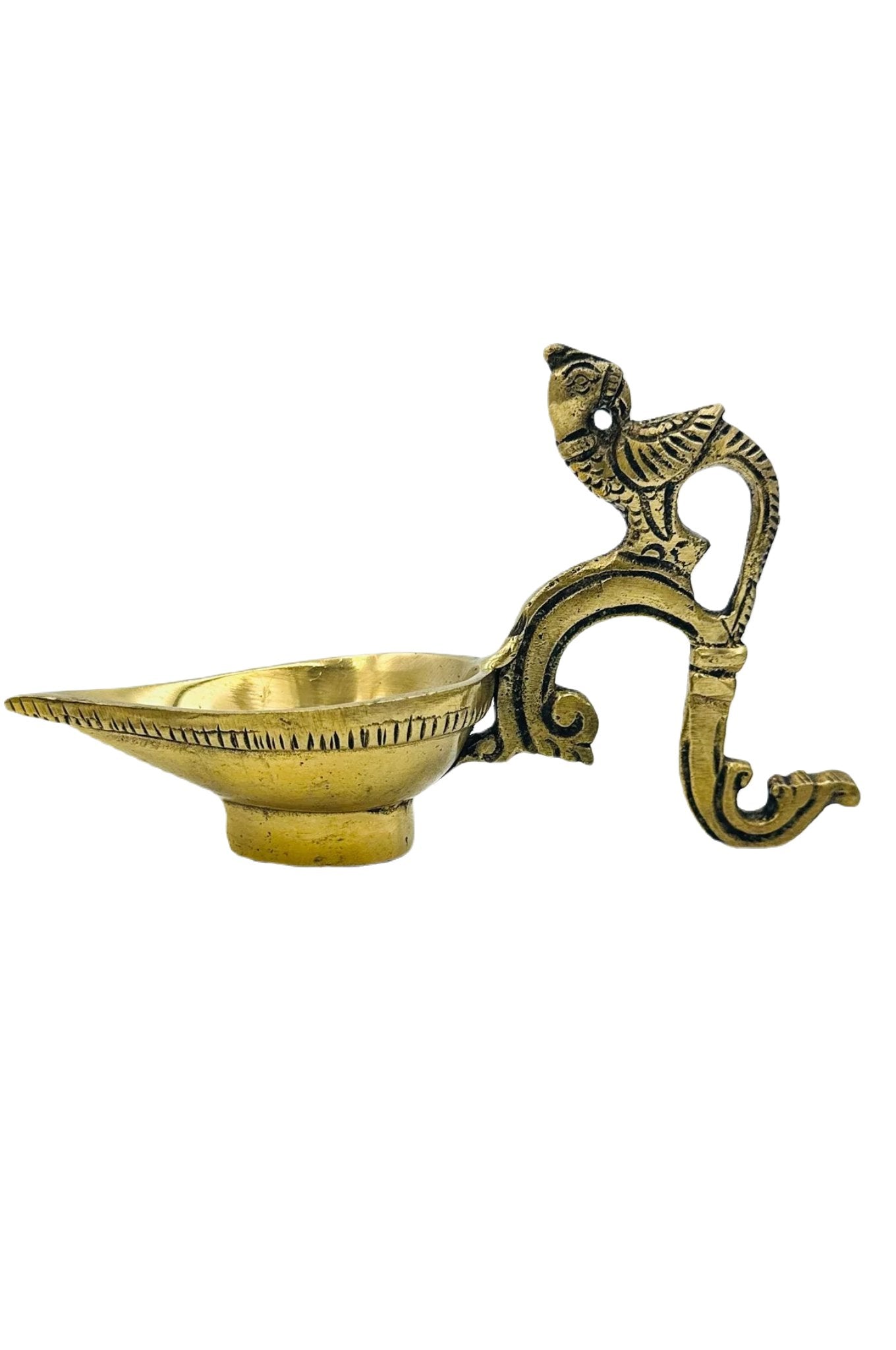 Immerse yourself in the grace and beauty of our pure brass Peacock Diya. This exquisite piece, with its detailed peacock design, is more than just a diya; it's a symbol of elegance and vibrancy. Perfect for adding a touch of splendor to your rituals or as a standalone decorative piece, it embodies the finesse of traditional craftsmanship.