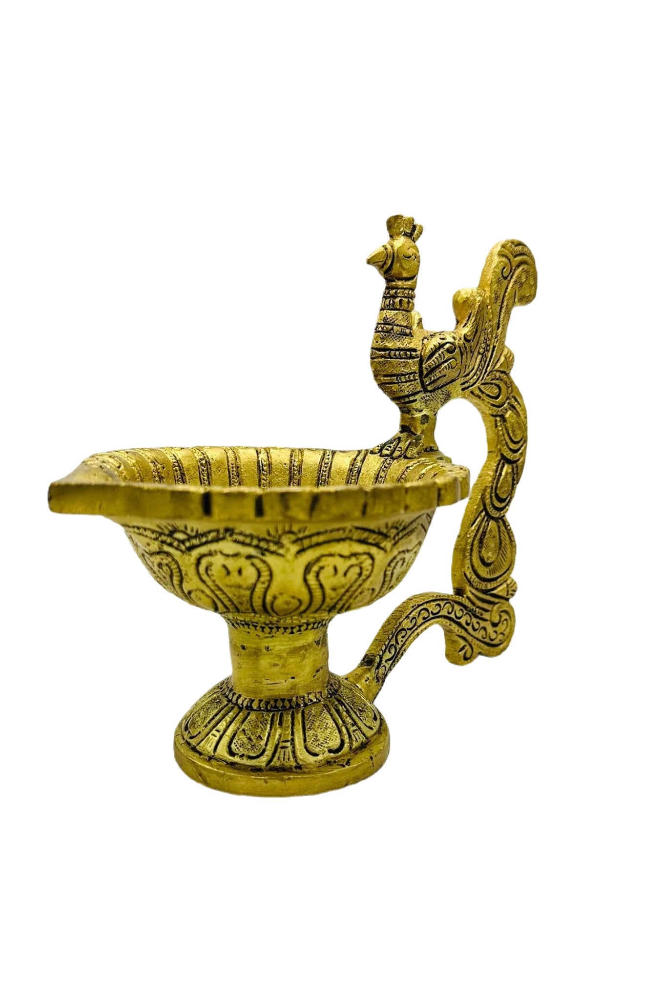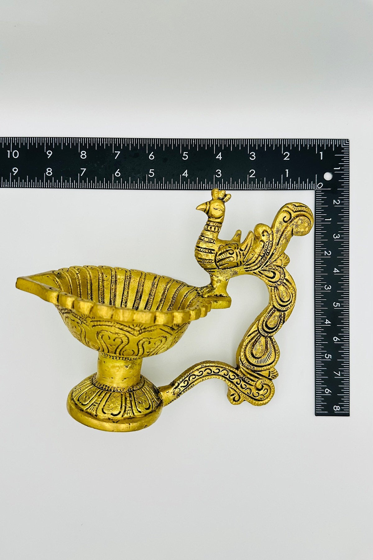 Discover timeless beauty with our Brass Peacock Diya. Crafted from pure brass, this exquisite piece showcases the regal allure of a peacock. Perfect for illuminating your sacred space, it blends tradition with artistry, adding a touch of elegance to your decor.