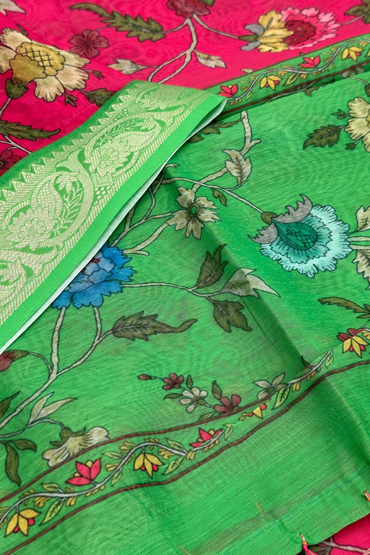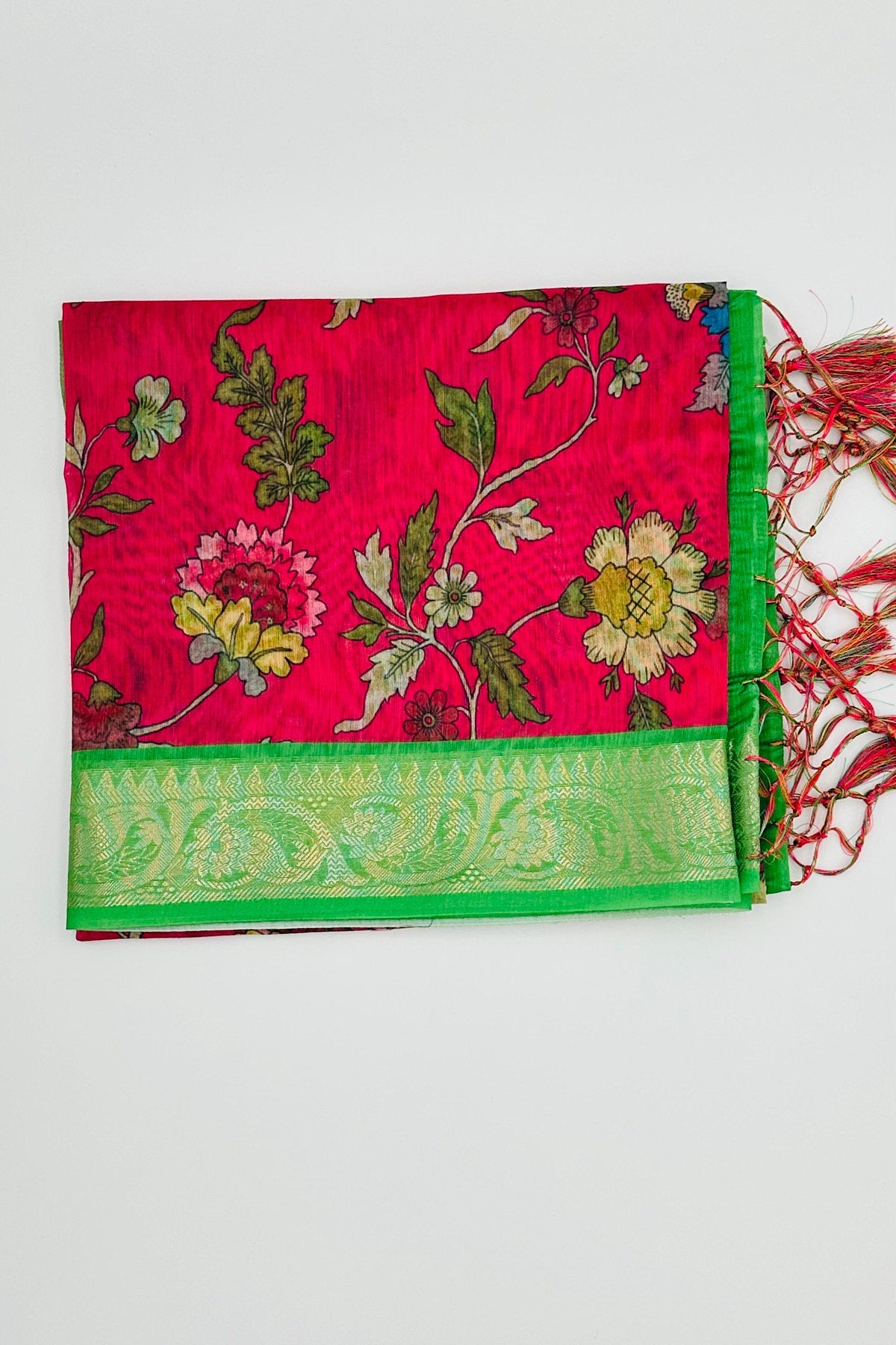Step into a world of vivid color with our Blossoming Harmony Dupatta, a striking piece in bright pink and green. This stunning dupatta features a lively digital floral print, where each bloom is captured in brilliant detail against the vibrant background. The bold interplay of pink and green creates an eye-catching contrast, reminiscent of a lush, blooming garden. Crafted from a fabric that ensures a fluid drape, this dupatta adds a splash of joyous vibrancy and contemporary flair to your ensemble. Perfect for those who love to make a statement with bold colors and floral elegance, this piece is a celebration of dynamic beauty and modern style.