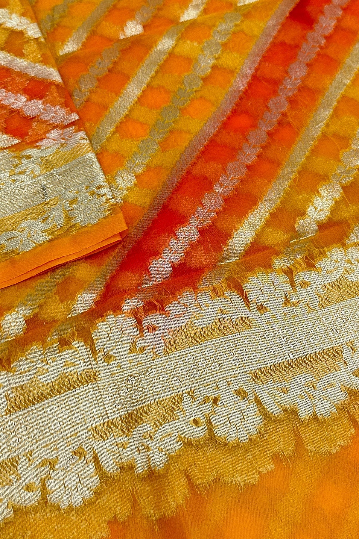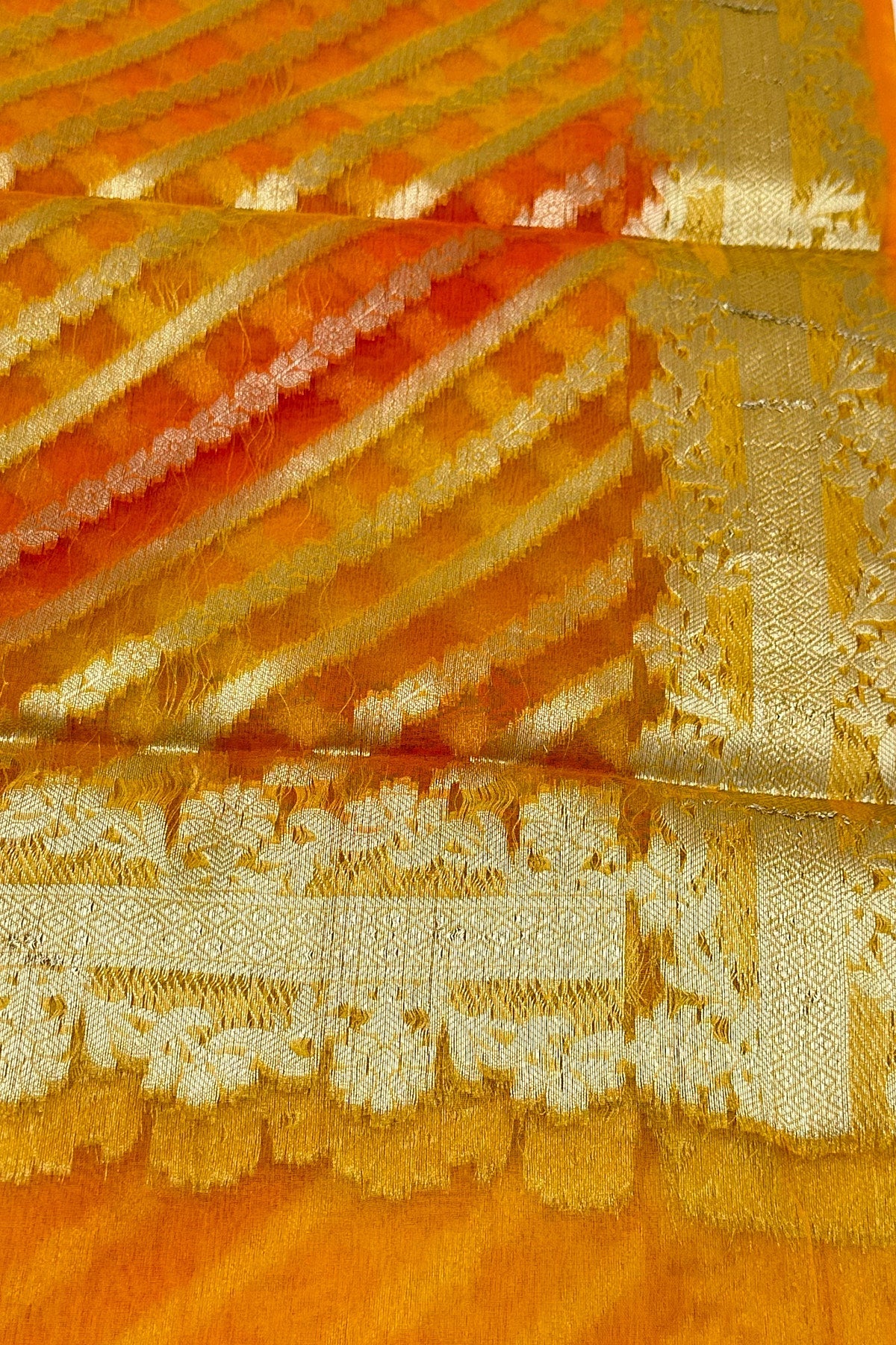 Bask in the radiance of our Golden Glow Banarasi Dupatta, exquisitely woven from premium pure organza. This luminous yellow dupatta is a celebration of traditional Banarasi artistry, adorned with intricate patterns that shimmer with every movement. The vibrant yellow hue evokes the warmth of golden sunlight, infusing your attire with a cheerful and elegant charm. The sheer, lightweight organza fabric gracefully drapes, adding a sophisticated and airy touch. Perfect for enhancing your look with a splash of joyful color and exquisite craftsmanship, this dupatta is a testament to timeless beauty and artisanal skill.