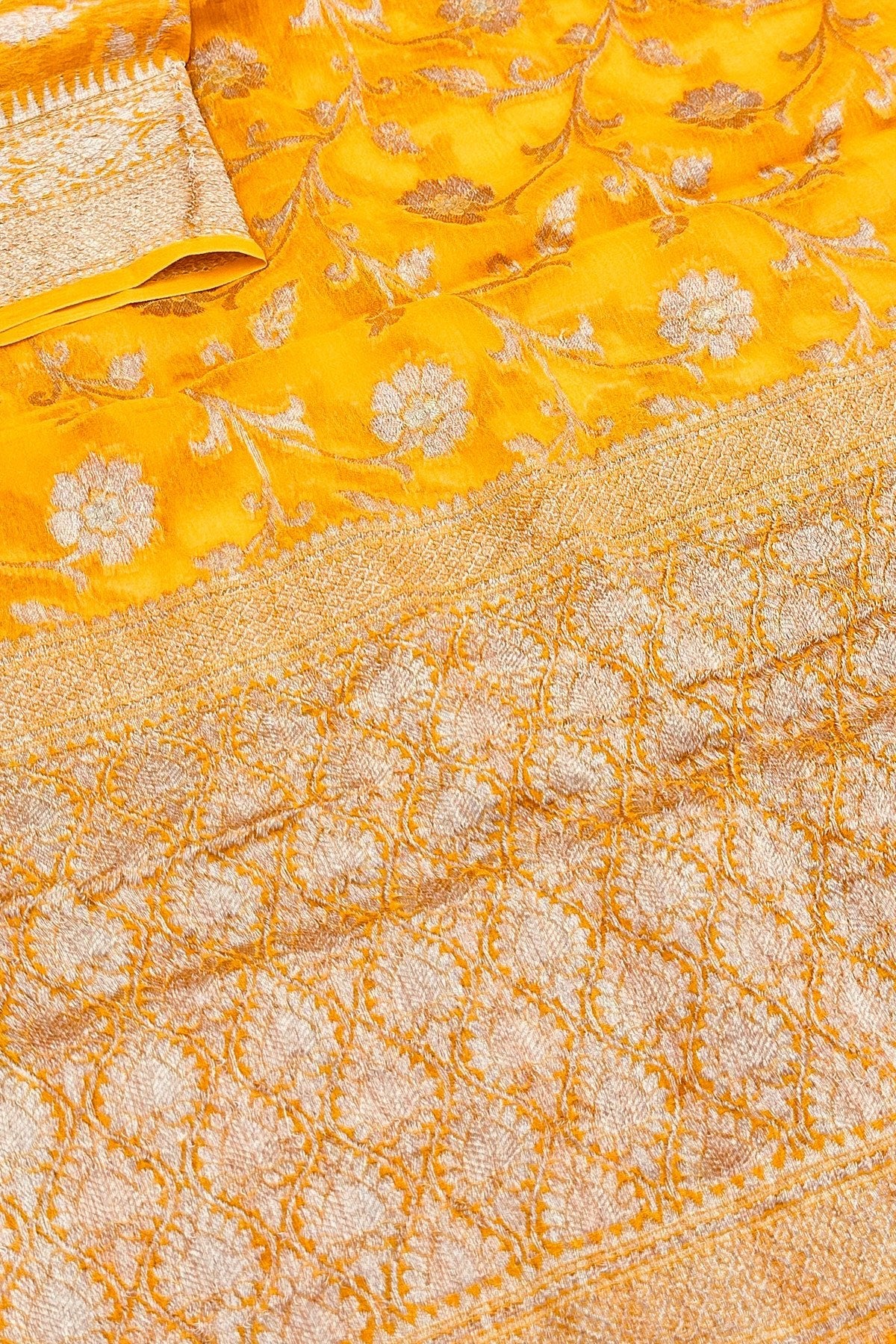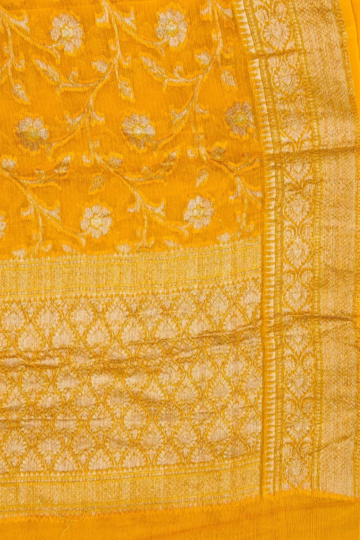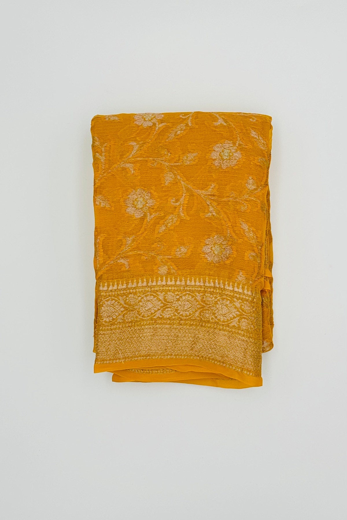 Step into a world of radiant beauty with our Sunshine Elegance Banarasi Dupatta, exquisitely crafted from premium pure georgette. This vibrant yellow piece is a masterpiece of Banarasi weaving, showcasing intricate patterns that shimmer with every movement. The bright, cheerful hue of the dupatta brings a sense of joy and warmth, while the delicate georgette fabric provides an elegant, flowing drape. Ideal for adding a splash of color and traditional sophistication to your wardrobe, this dupatta is a celebration of craftsmanship and timeless style.