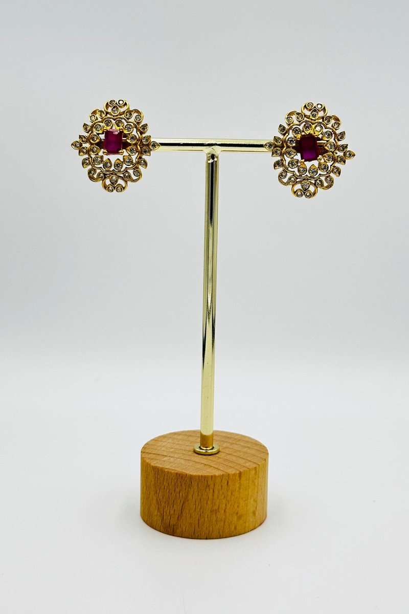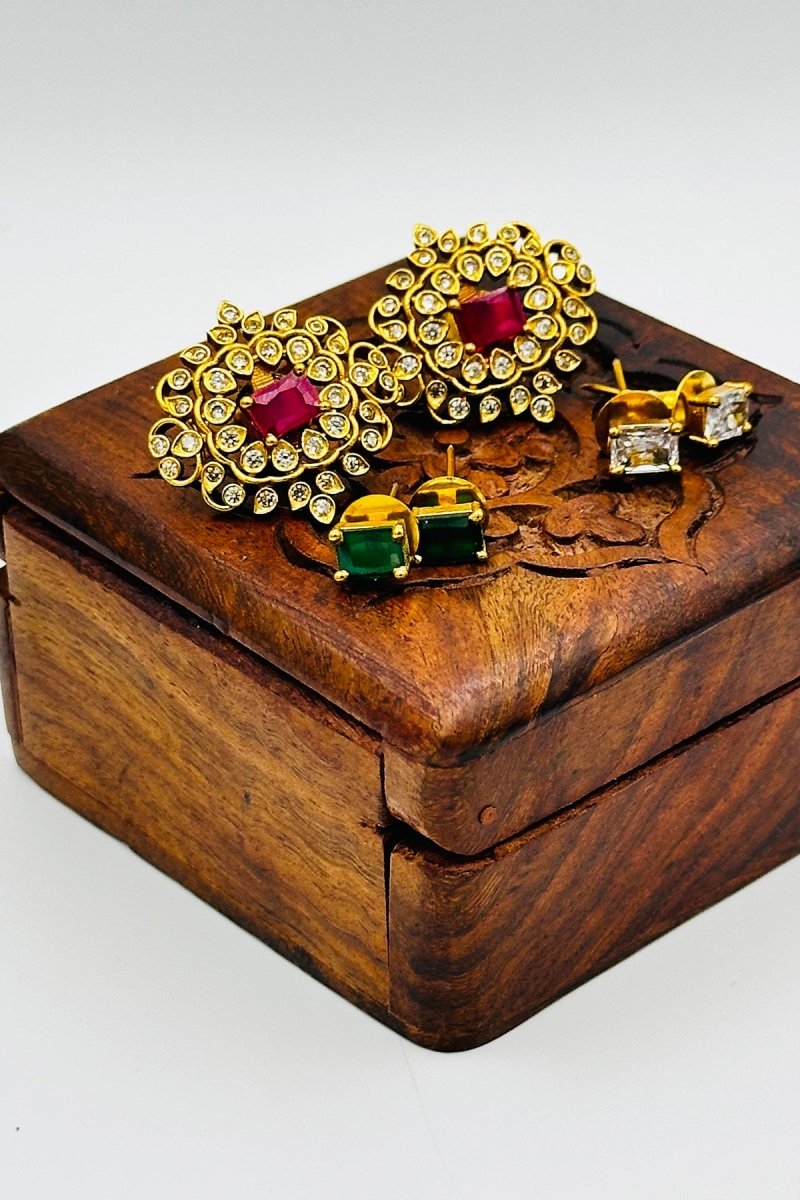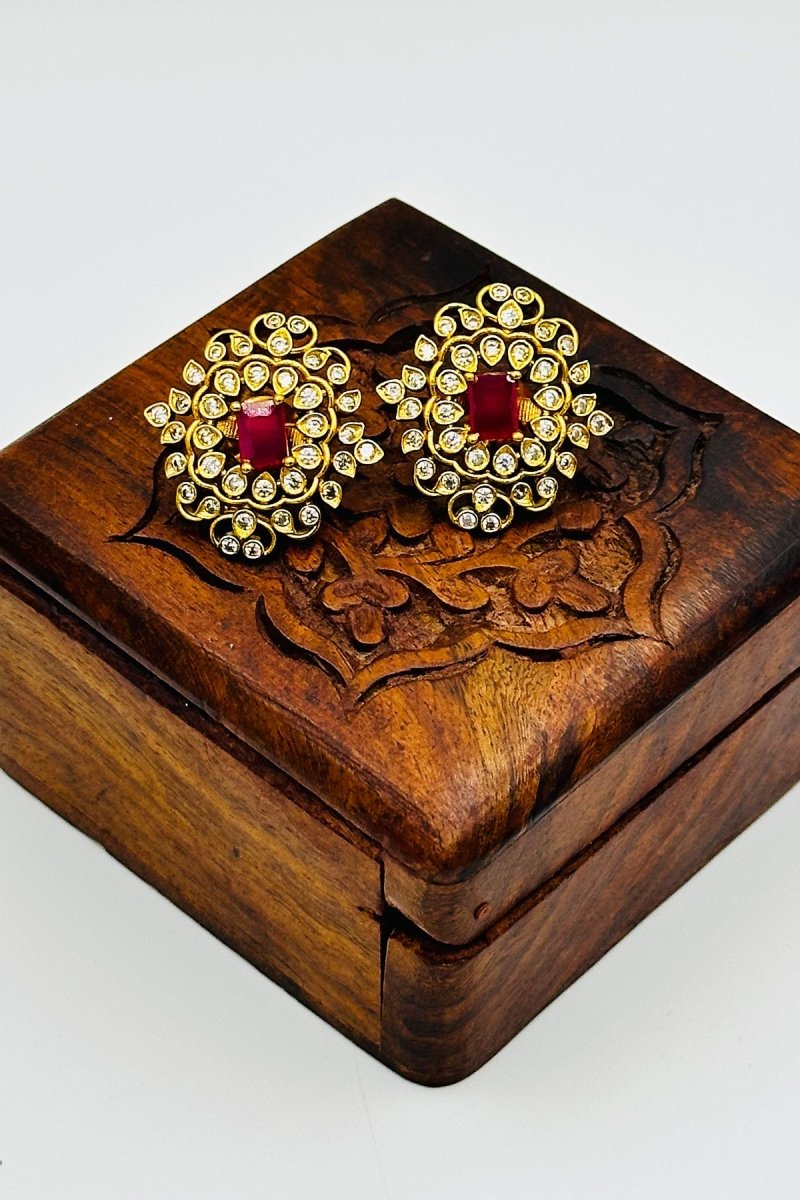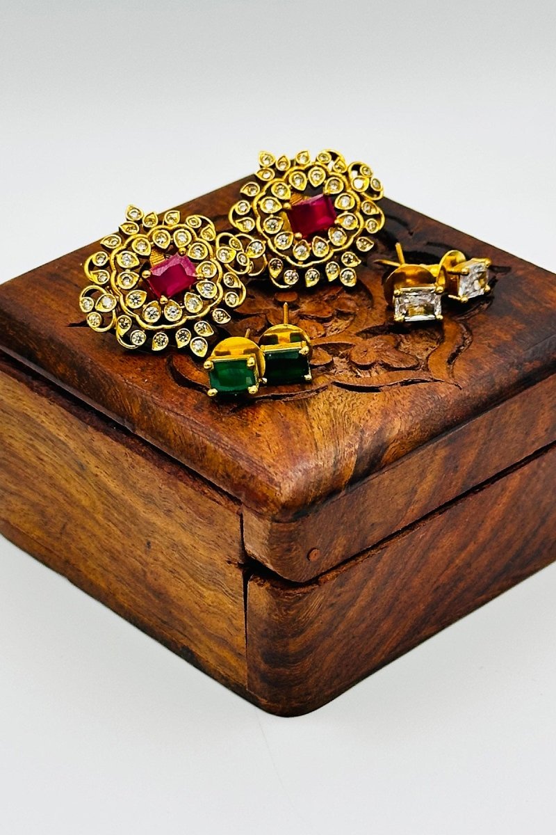 Elegant Ruby and Emerald Stud Earrings with Crystal Accents - swadeshsouq.com
