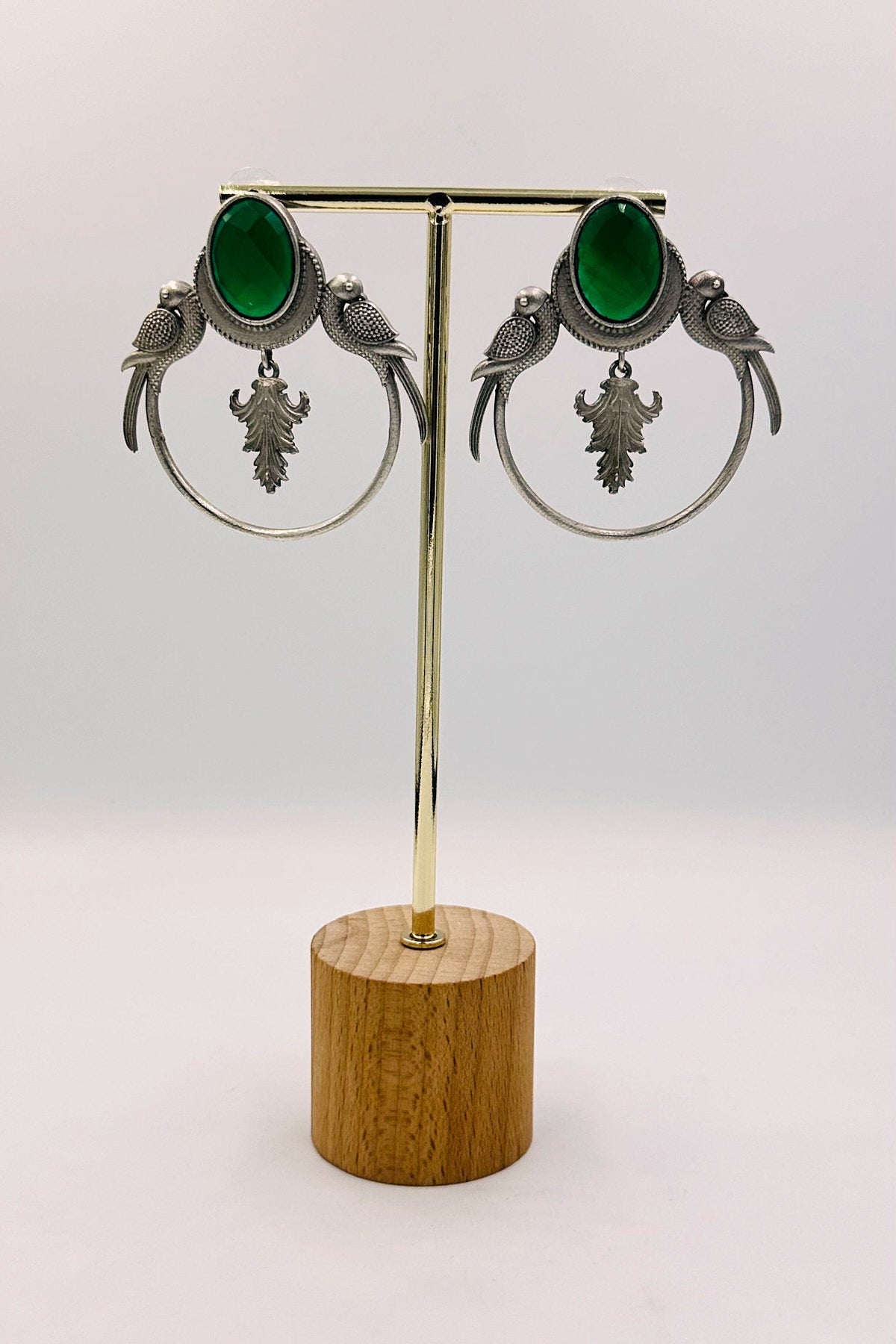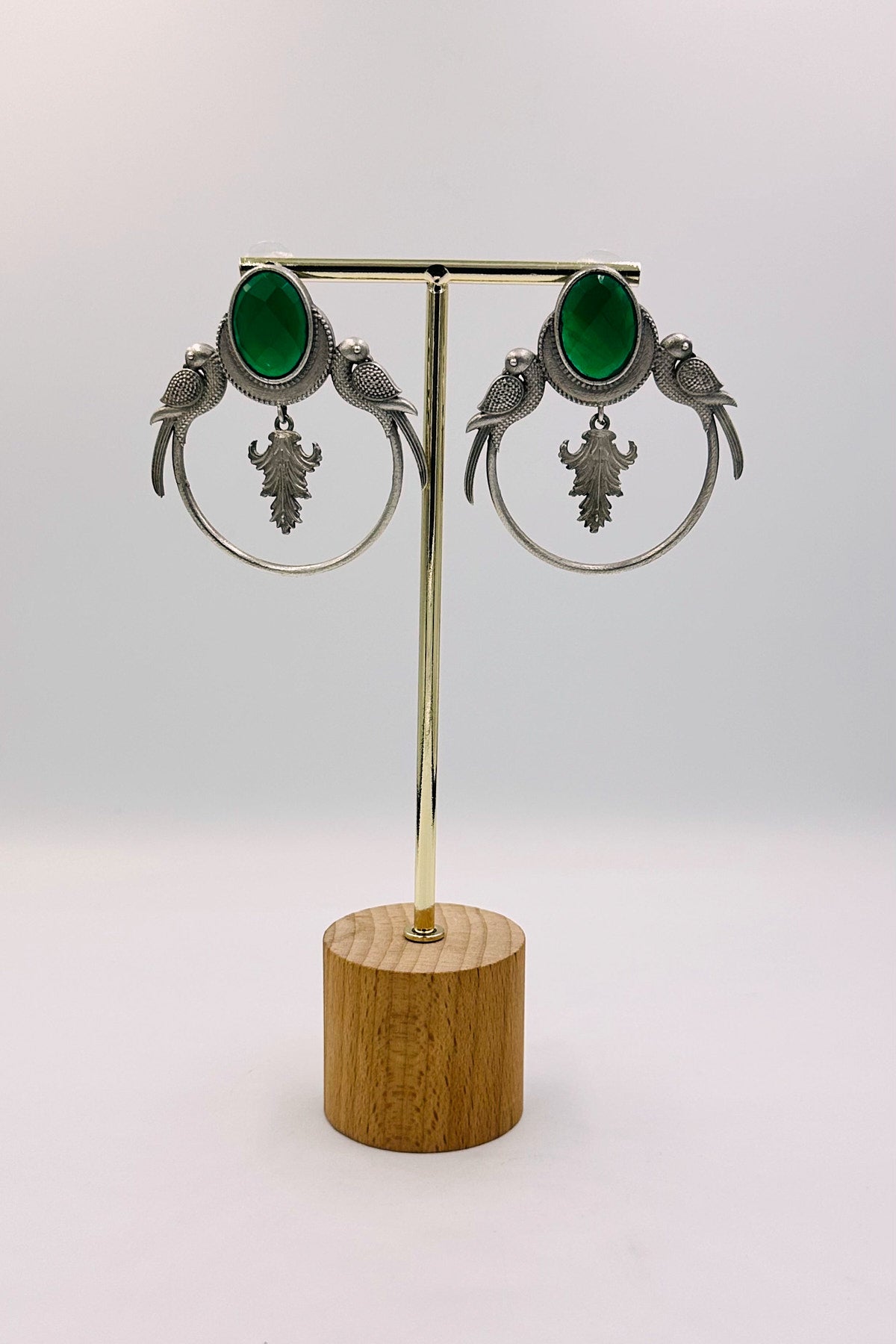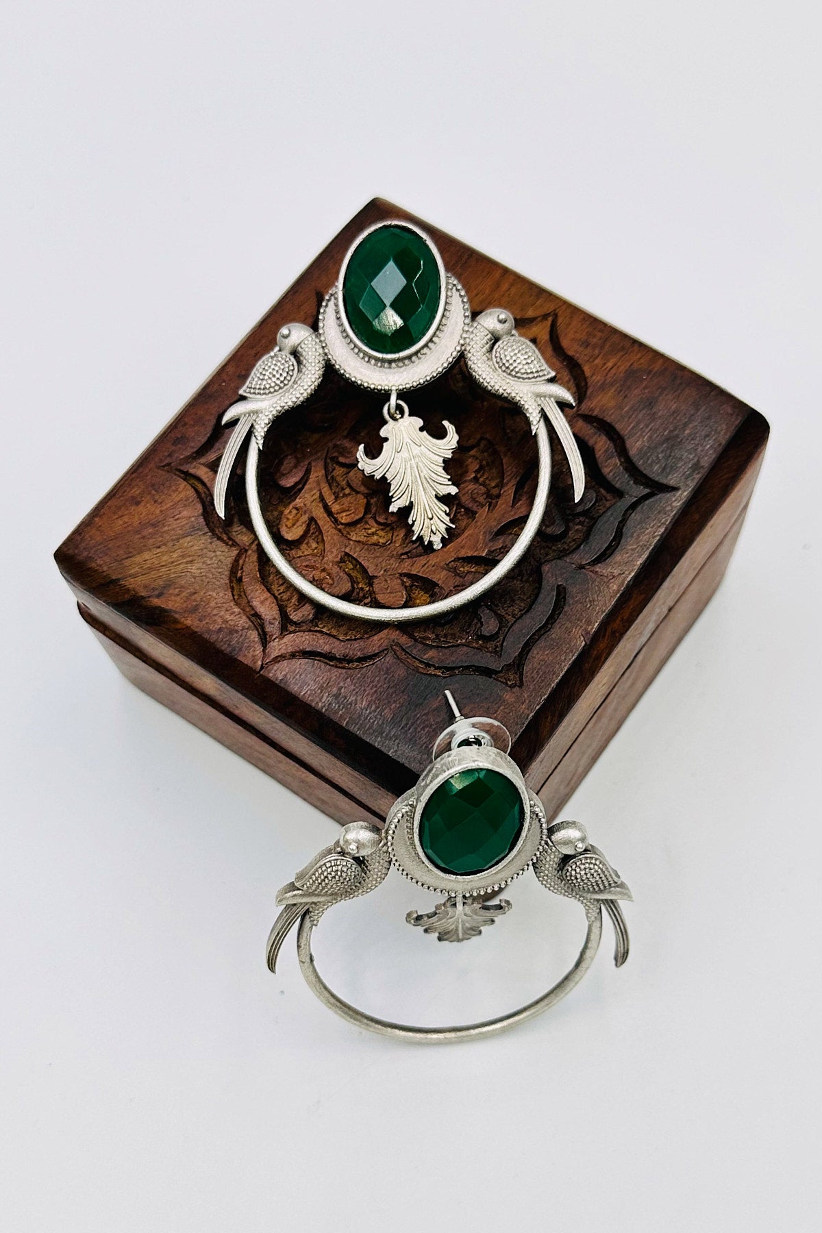 Emerald Essence Silver Earrings - swadeshsouq.com