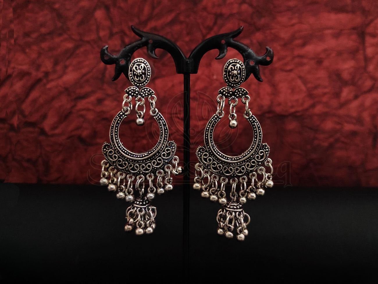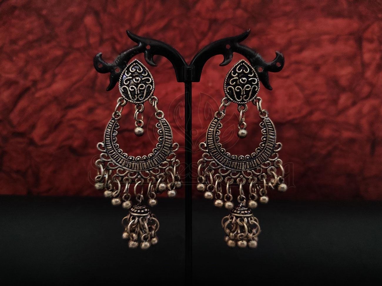 rafted with exquisite attention to detail, these oxidized silver chand bali earrings are sure to make a statement. The antique design adds a touch of sophistication and the high-quality materials ensure longevity, making them a valuable addition to your collection. Whether you're dressing up for a special occasion or adding a touch of elegance to your everyday wear, these earrings are the perfect choice.