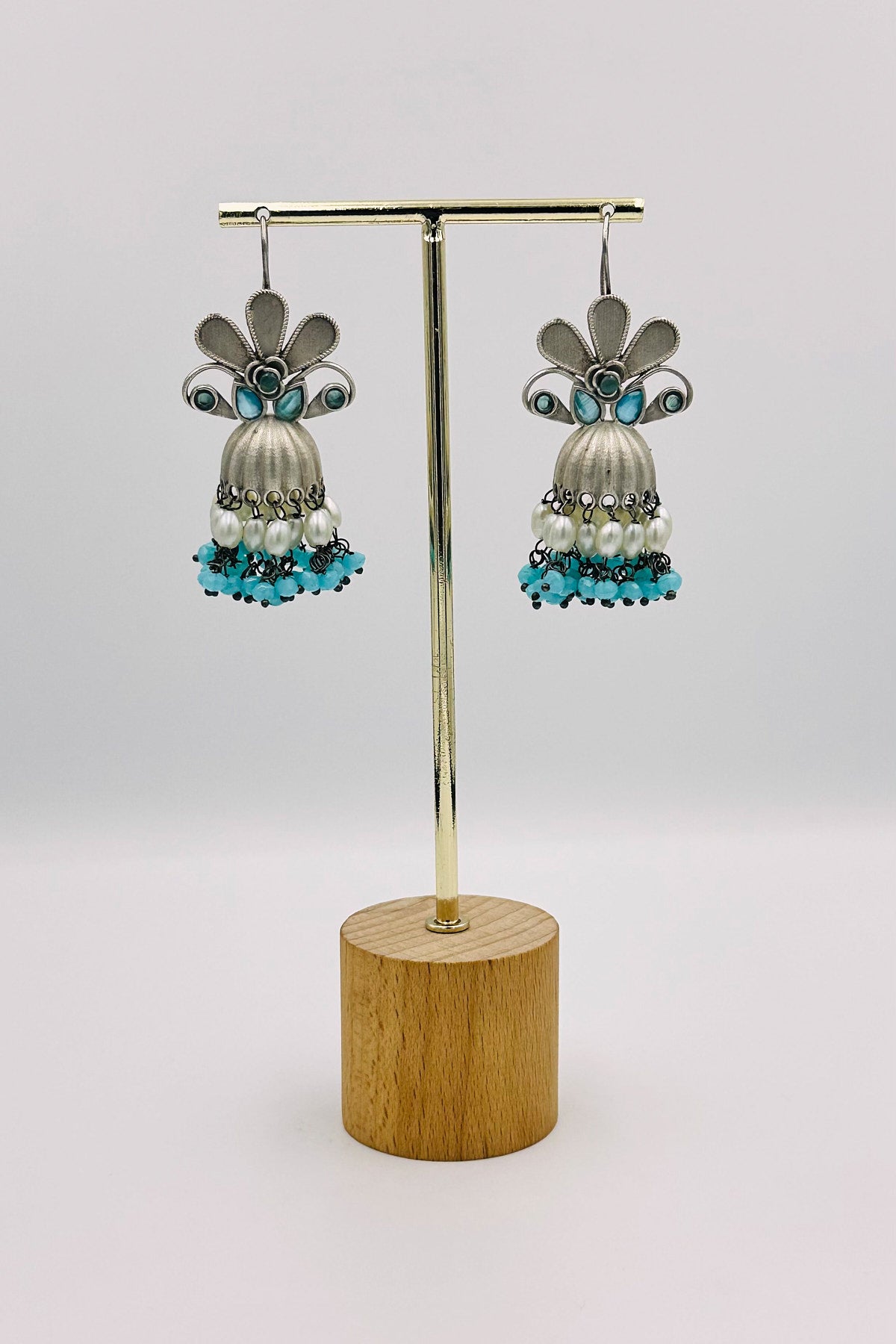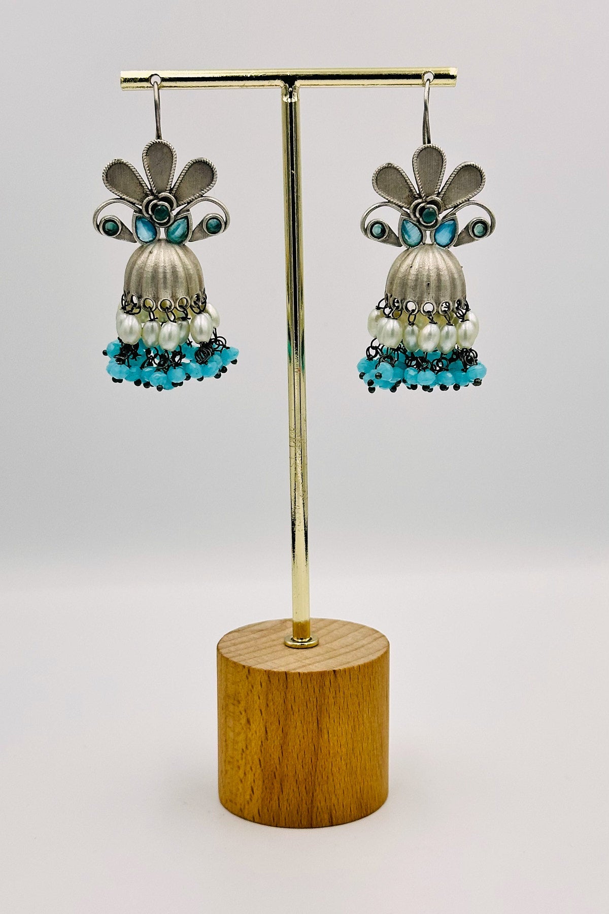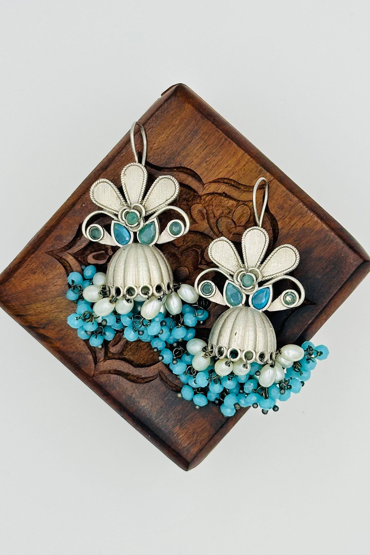 Fluorescent Blue Beads Jhumkas - swadeshsouq.com