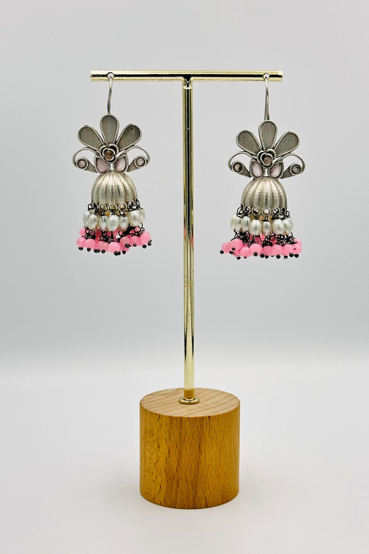 Embrace the bold and beautiful with our Vibrant Euphoria Jhumkas. Adorned with striking fluorescent pink beads, these jhumkas are a celebration of vibrant style. The lively pink hue captures the essence of fun and femininity, making a statement that's both playful and chic. Set in a timeless jhumka design, these earrings blend traditional charm with a burst of modern energy. Perfect for adding a pop of radiant color to your look, they're ideal for those who love to stand out with grace and confidence.