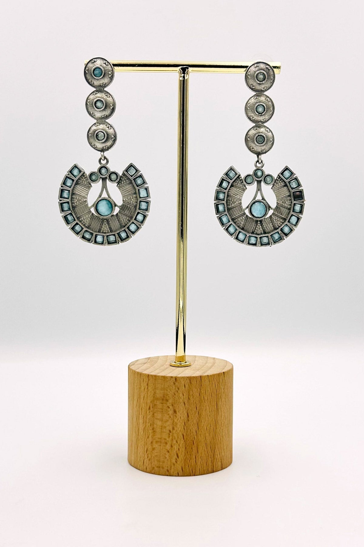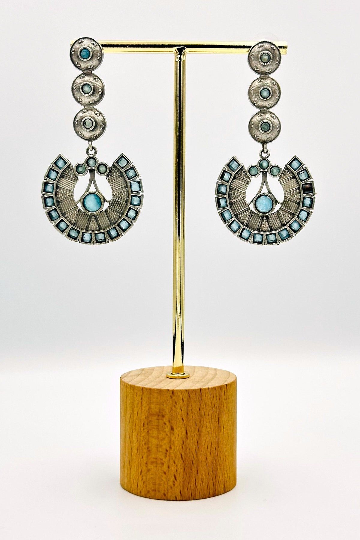 Handcrafted Silver Danglers with Enchanting Light Blue Earrings - swadeshsouq.com