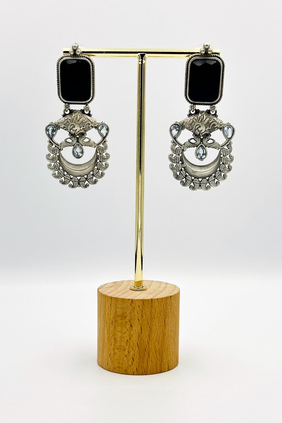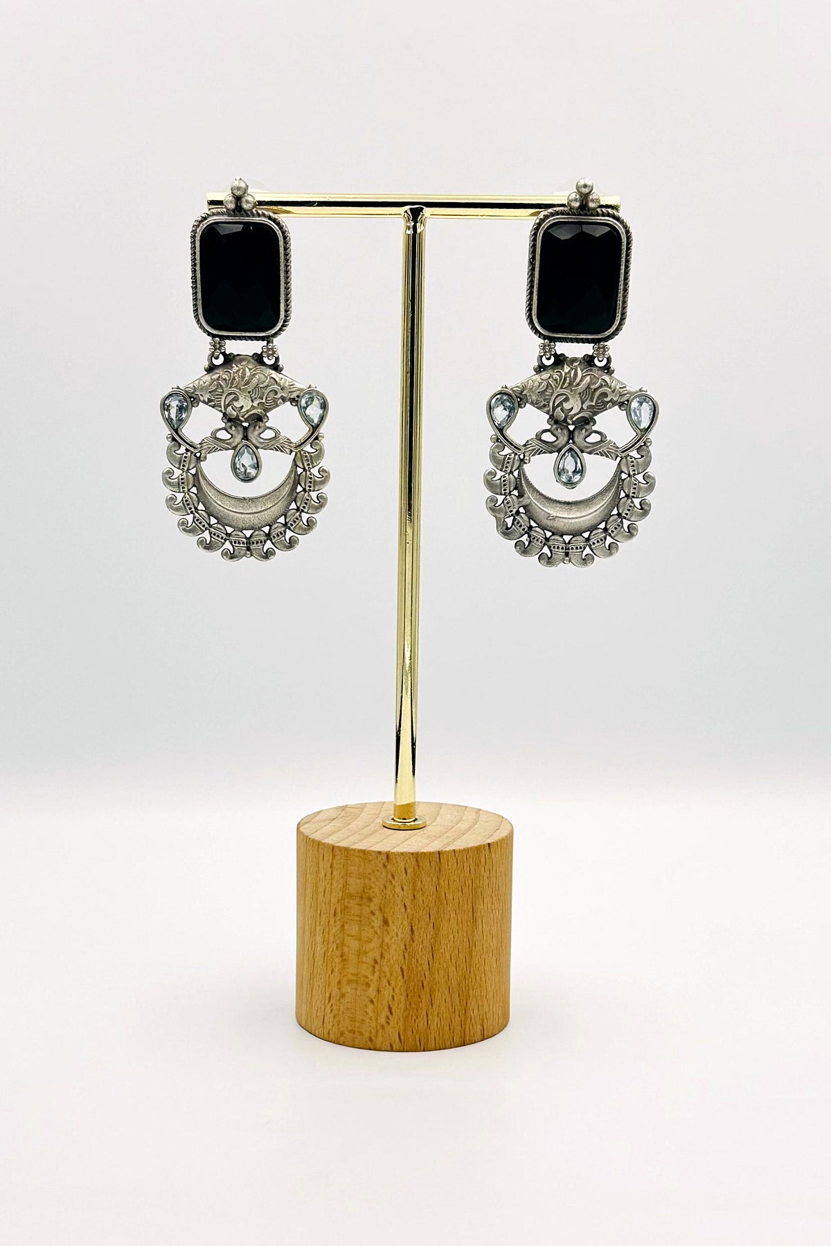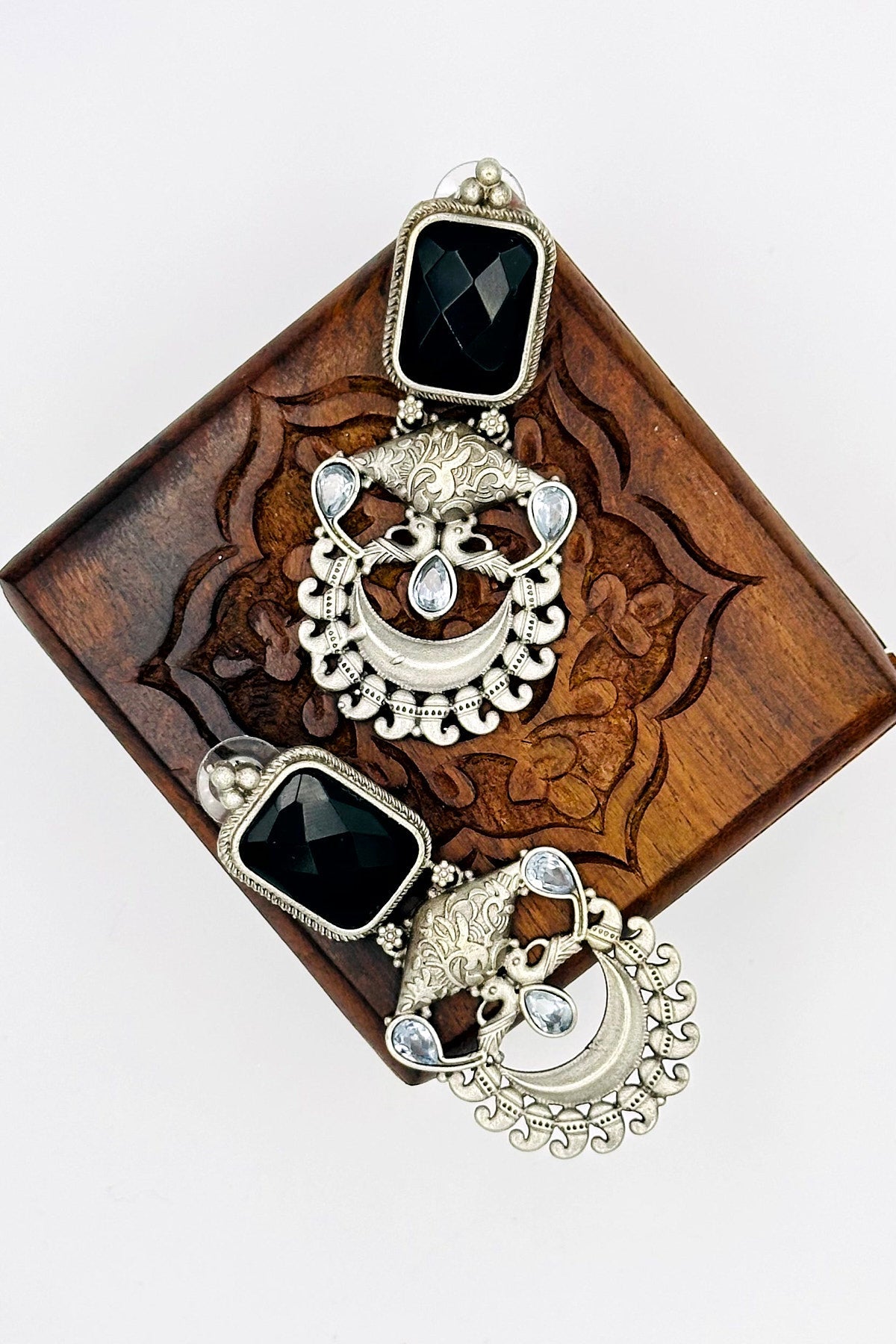 Handcrafted Silver Earrings Embellished with Black Stones - swadeshsouq.com