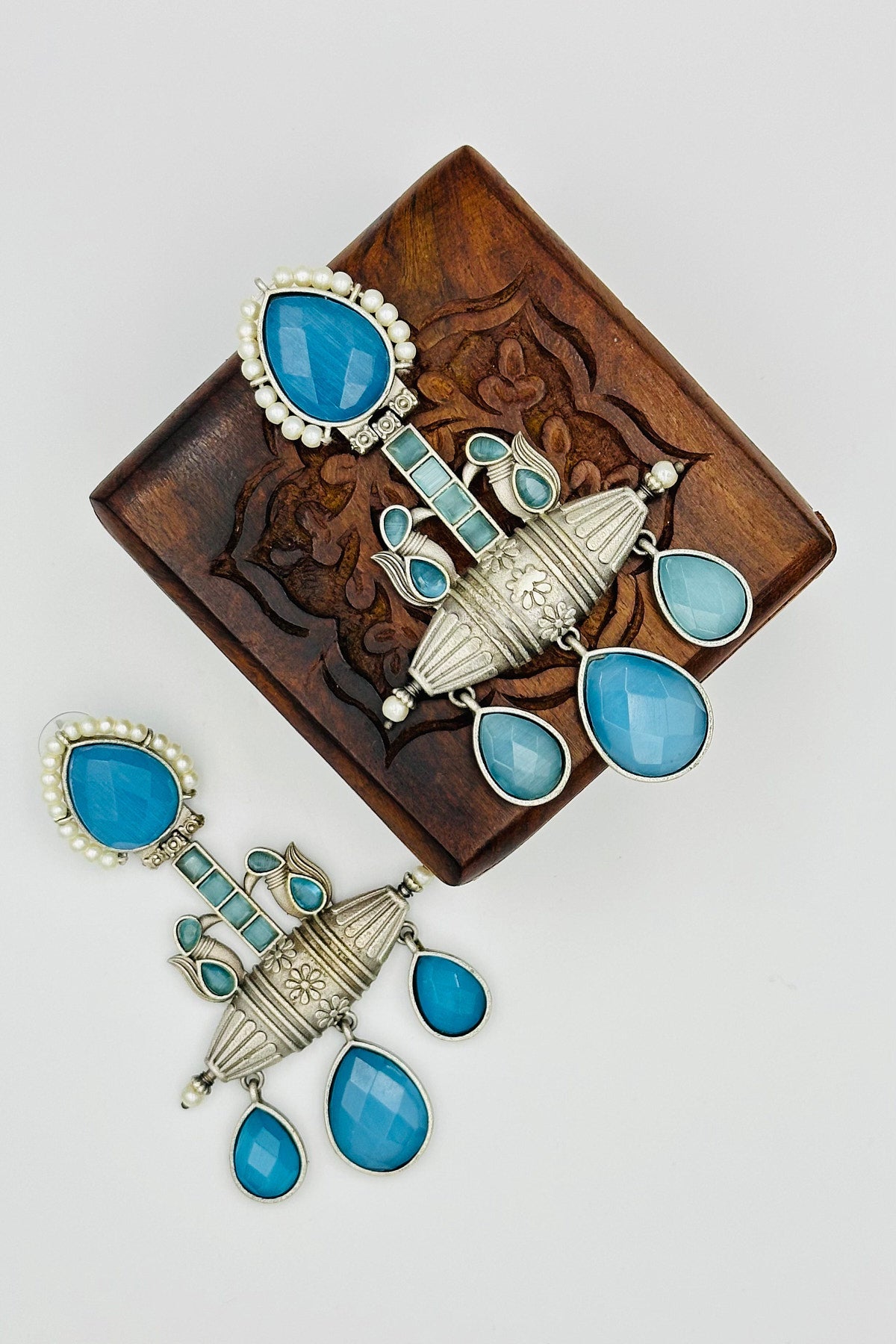 Discover the allure of our handcrafted silver earrings, a seamless blend of azure blue crystals and lustrous pearls. Meticulously designed for timeless elegance, these earrings elevate your style effortlessly, making every moment special. Embrace the radiance of azure elegance and leave a lasting impression wherever you go.