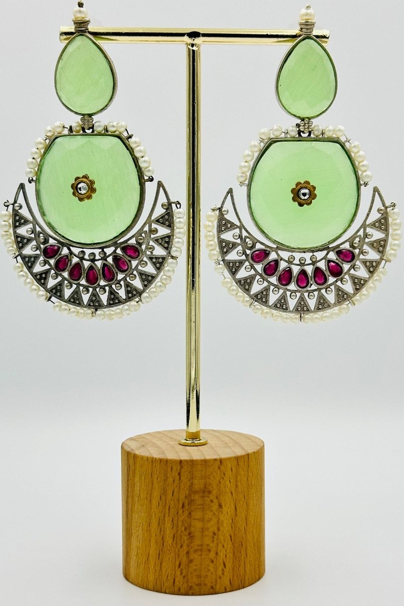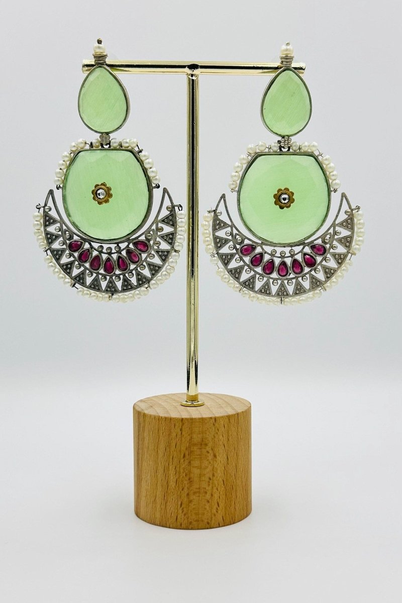 Introducing "Mint Breeze," where elegance meets a playful color palette. These charming silver earrings, crafted into a sleek crescent shape, capture the essence of a serene, moonlit night. Adorned with a delightful combination of mint green and soft pink, they evoke the freshness of a spring garden in bloom. The mint green crystals shimmer with a gentle luminosity, while the pink pearls add a touch of classic refinement. These earrings are perfect for anyone looking to add a splash of color and a hint of whimsy to their ensemble, making them ideal for both casual and formal occasions.