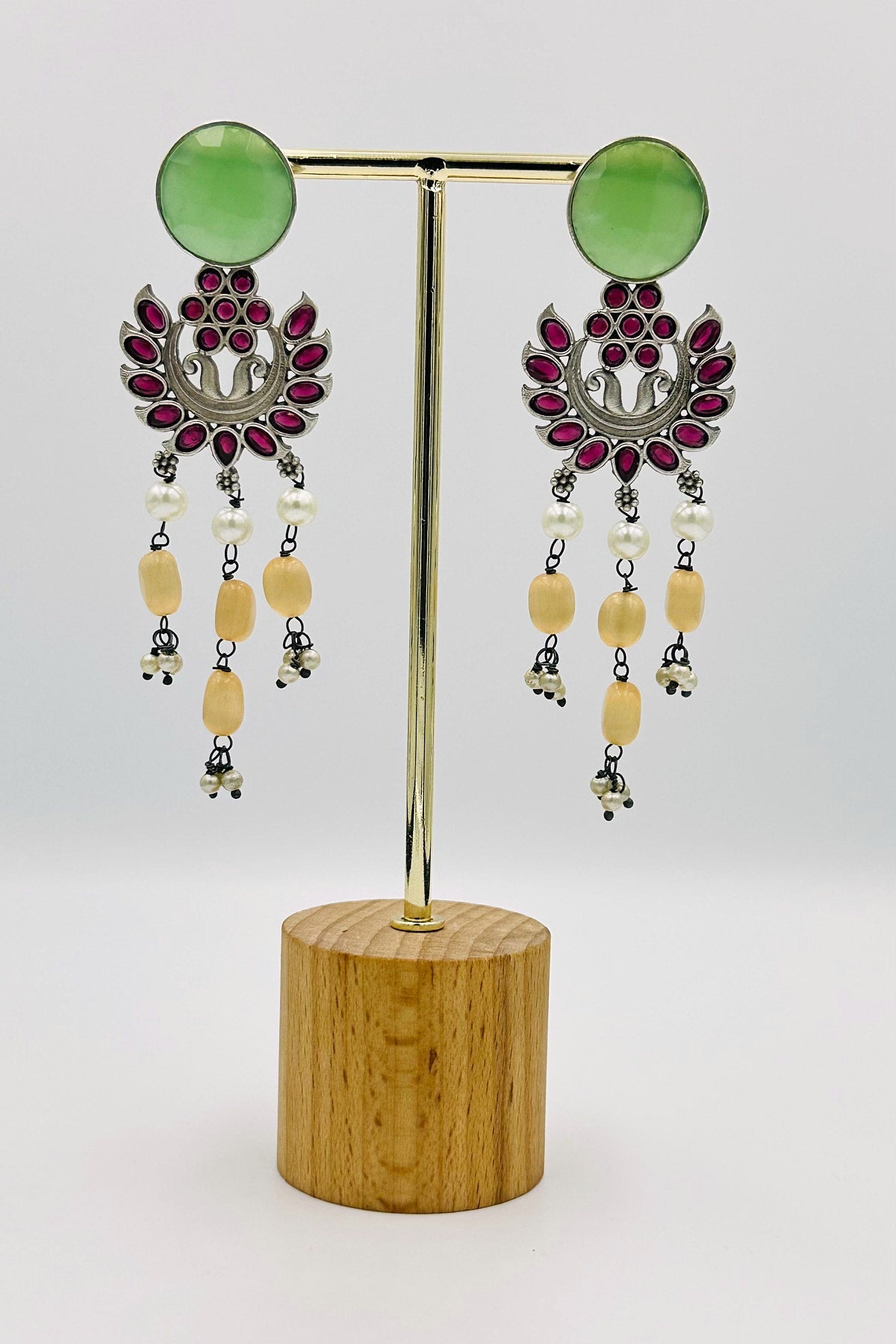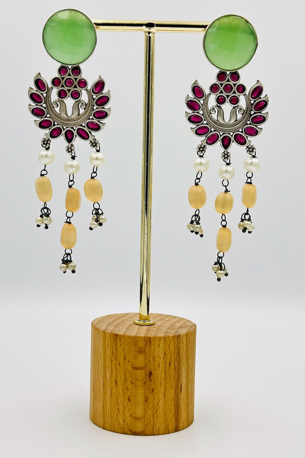 Embrace a spectrum of beauty with our Kaleidoscope Charm Dangler Earrings. Expertly crafted in silver, these earrings feature a dazzling array of multicolored stones, each adding its unique hue to the intricate floral motif. The vibrant blend of colors creates a lively and playful effect, while the delicate beads and pearls add a touch of elegance. These earrings are a celebration of color and style, perfect for adding a joyful and sophisticated flair to any outfit.
