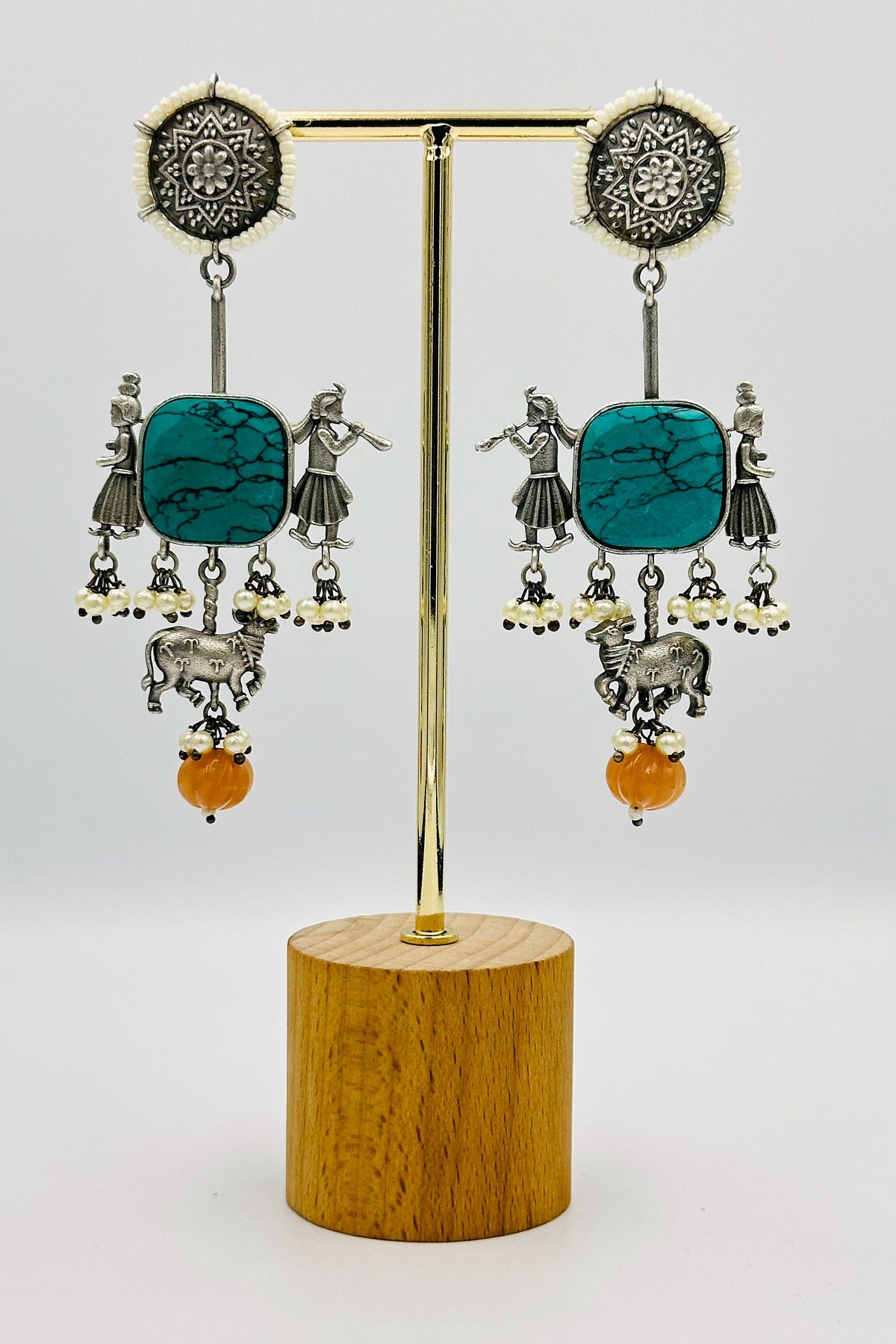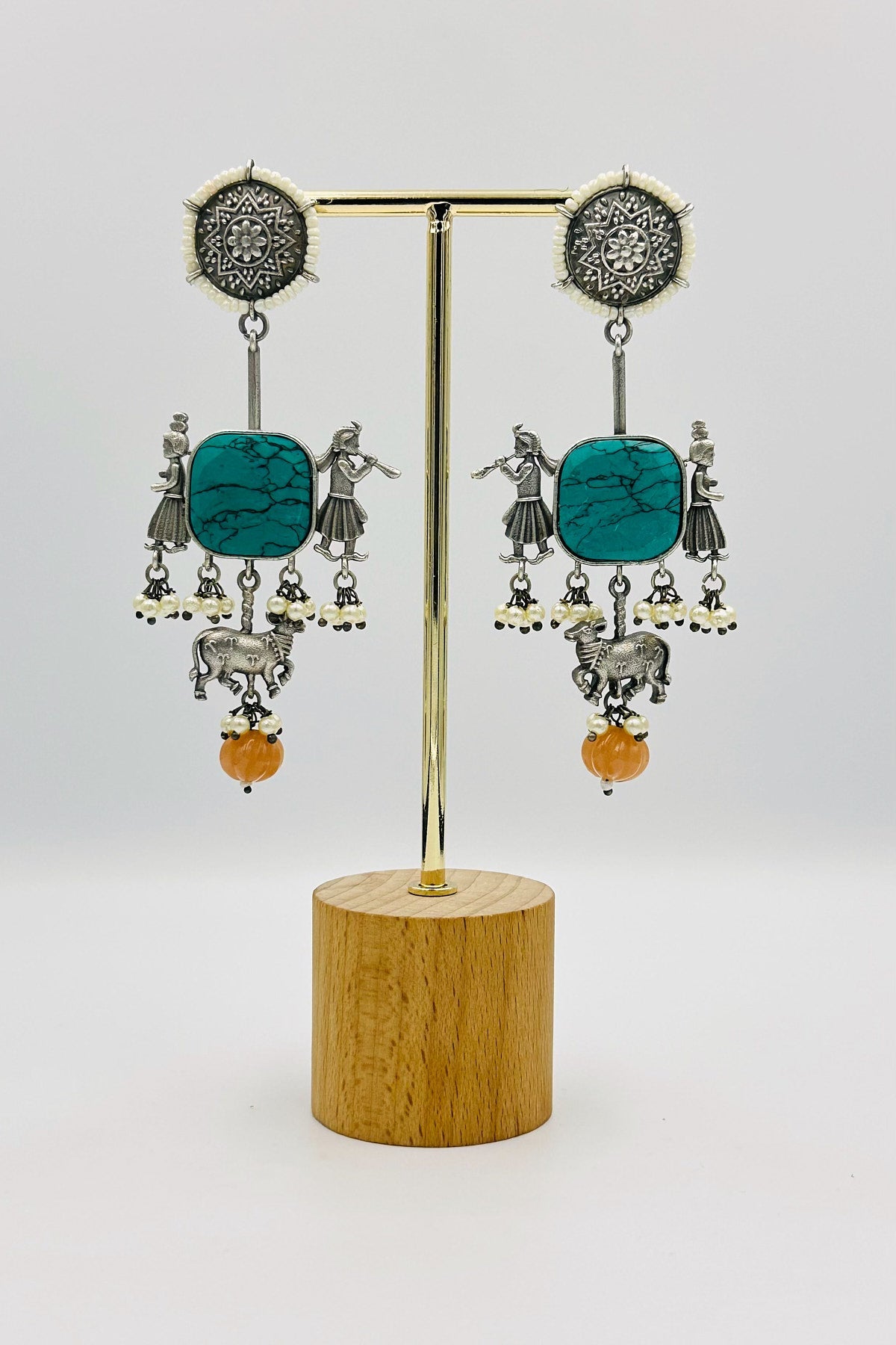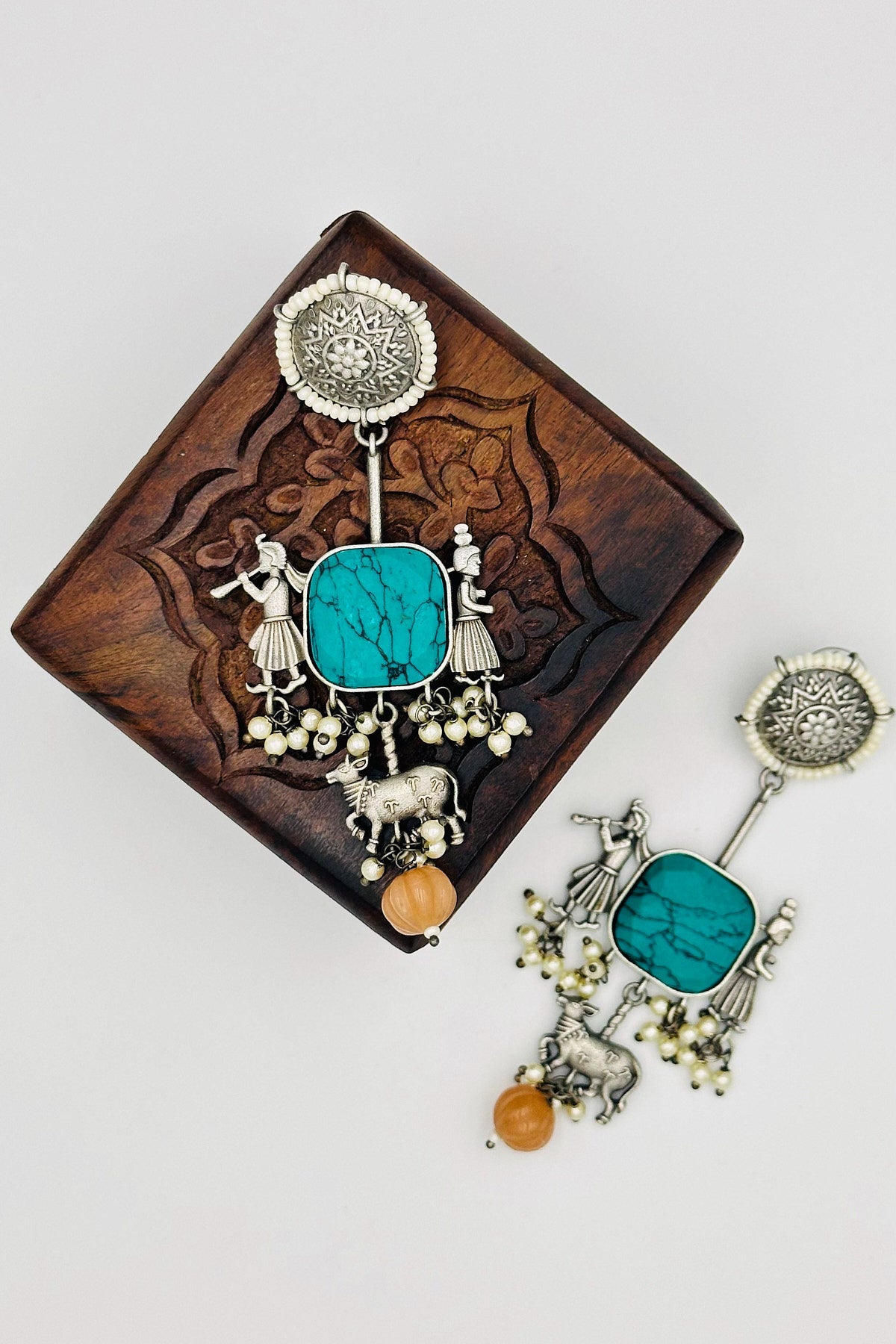 Multicolored Silver Danglers with Artistic Intrigue - swadeshsouq.com