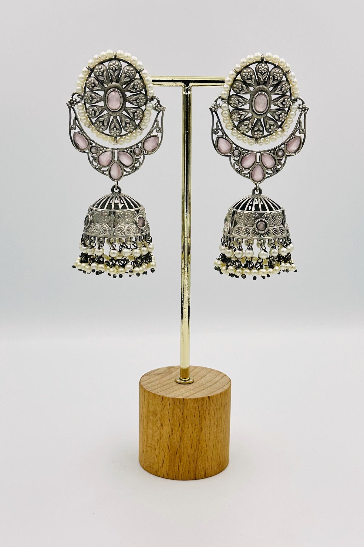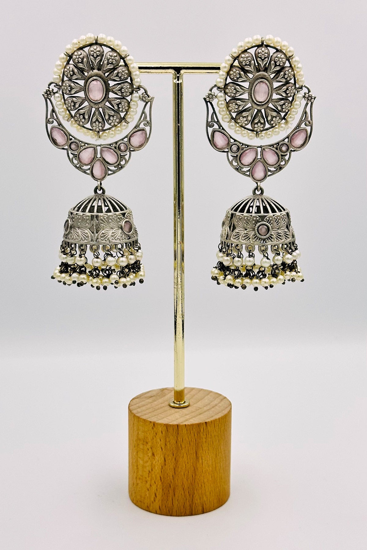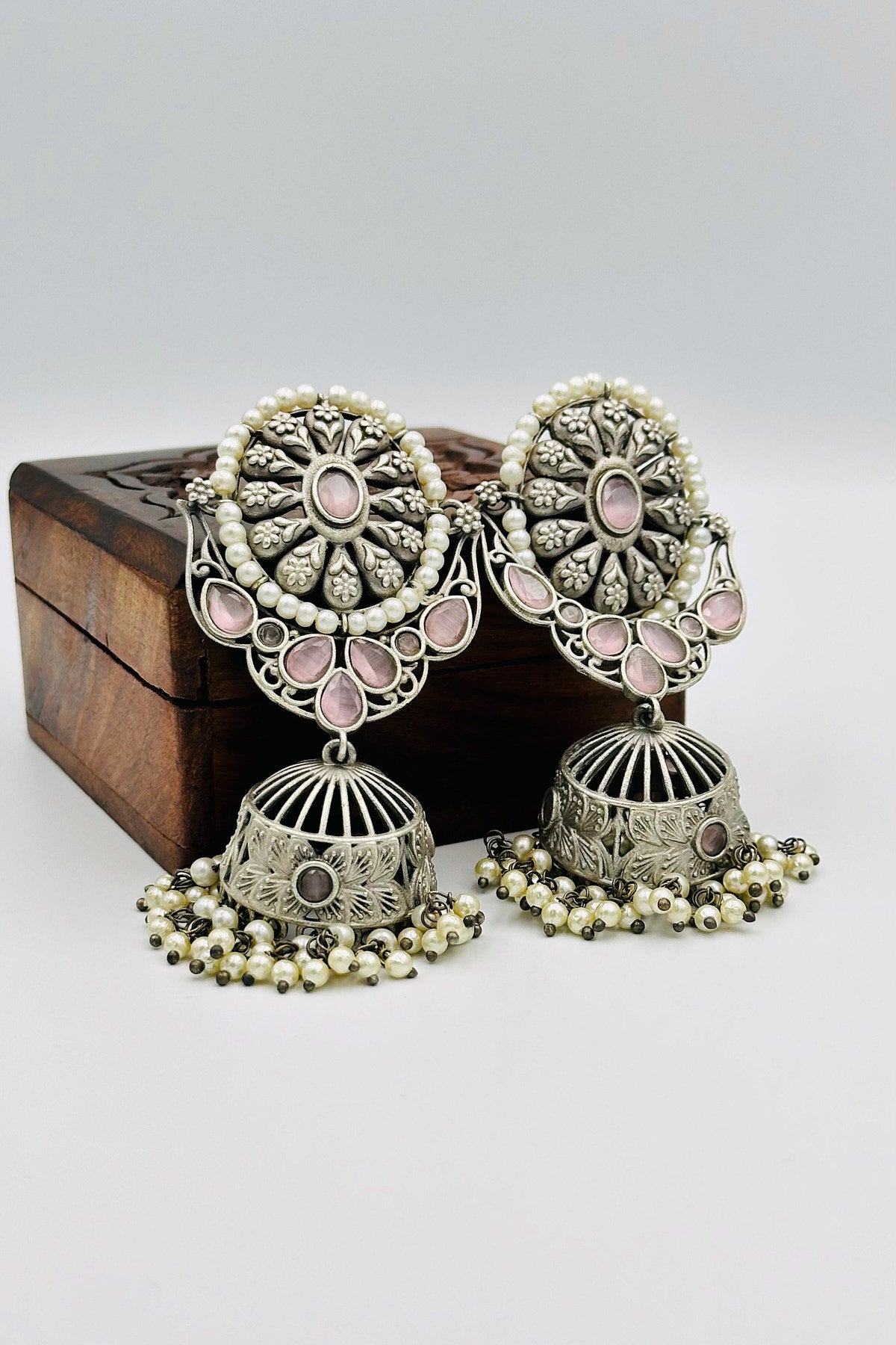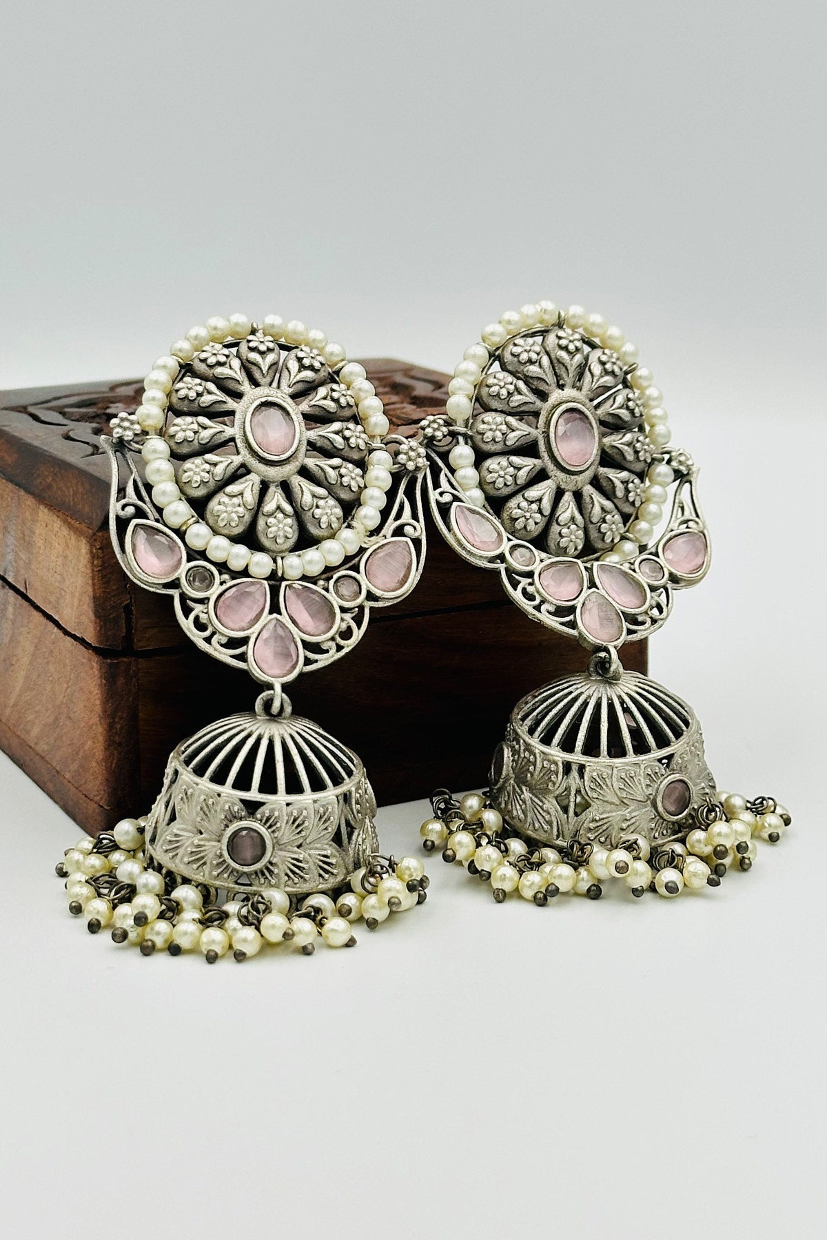 Pink Serenade Silver Jhumkas - swadeshsouq.com
