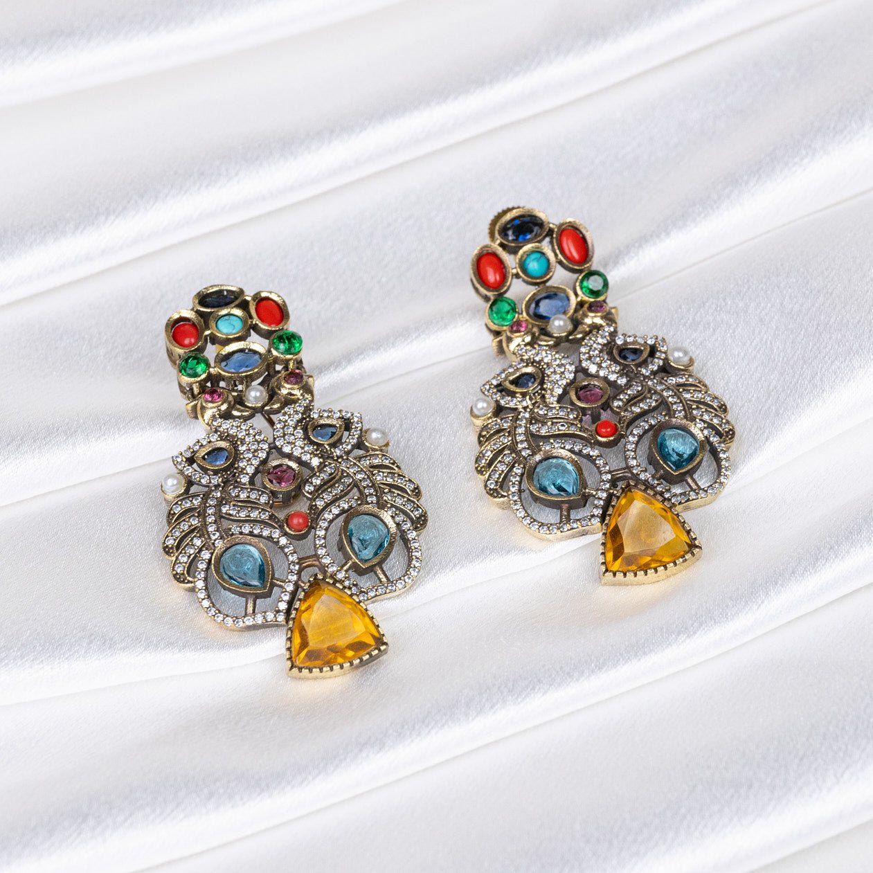 Plume Brilliance: Peacock Earrings with CZ Sparkle