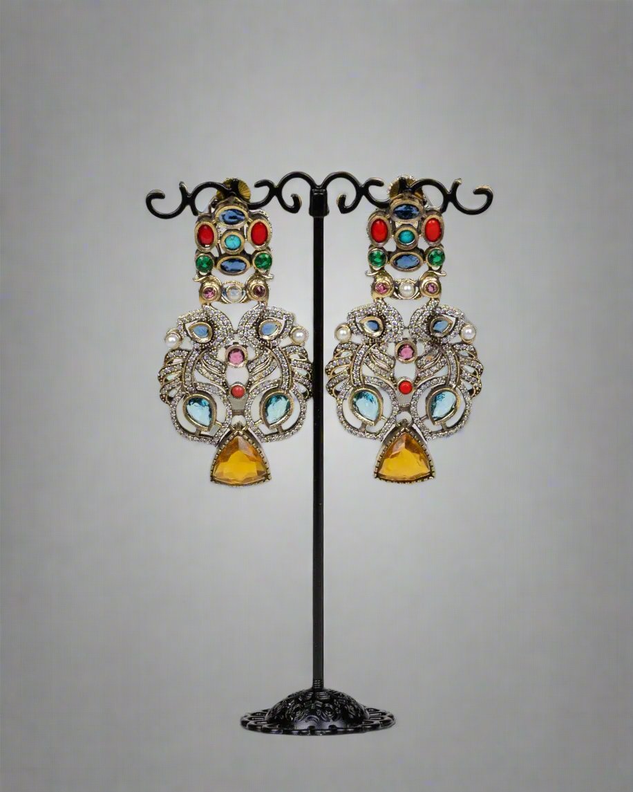 Plume Brilliance: Peacock Earrings with CZ Sparkle - swadeshsouq.com