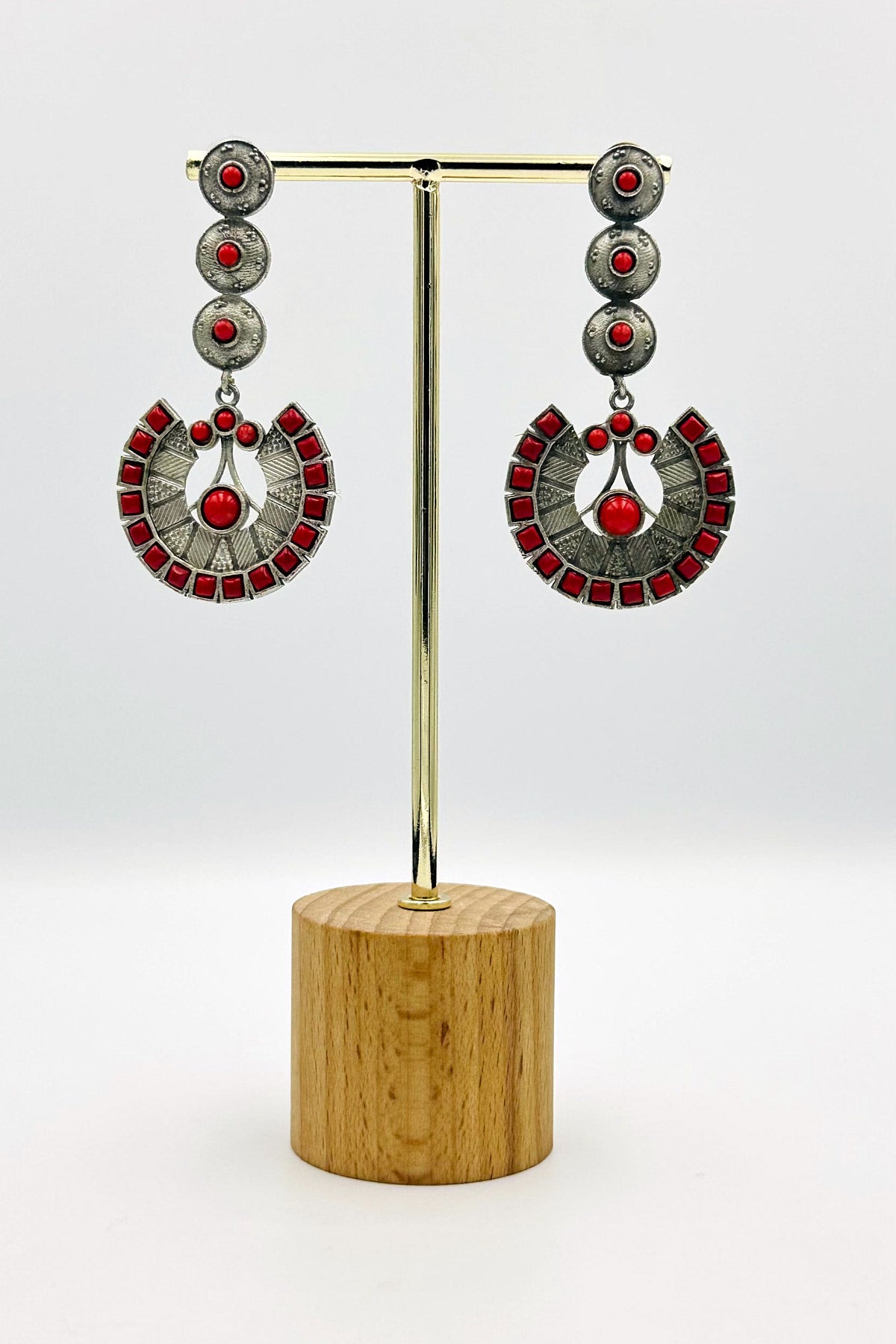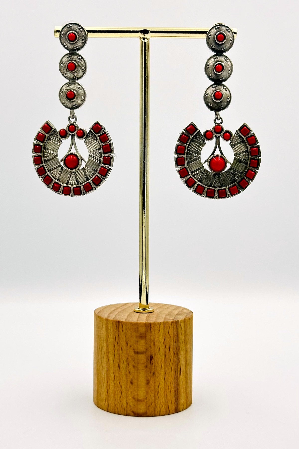 Embrace the allure of "Crimson Elegance" with our Silver Earrings featuring exquisite red stones. These earrings radiate sophistication, expertly designed to enhance your style with a touch of passionate charm. Elevate your look and leave a lasting impression with this striking pair, symbolizing timeless beauty and vibrant allure.