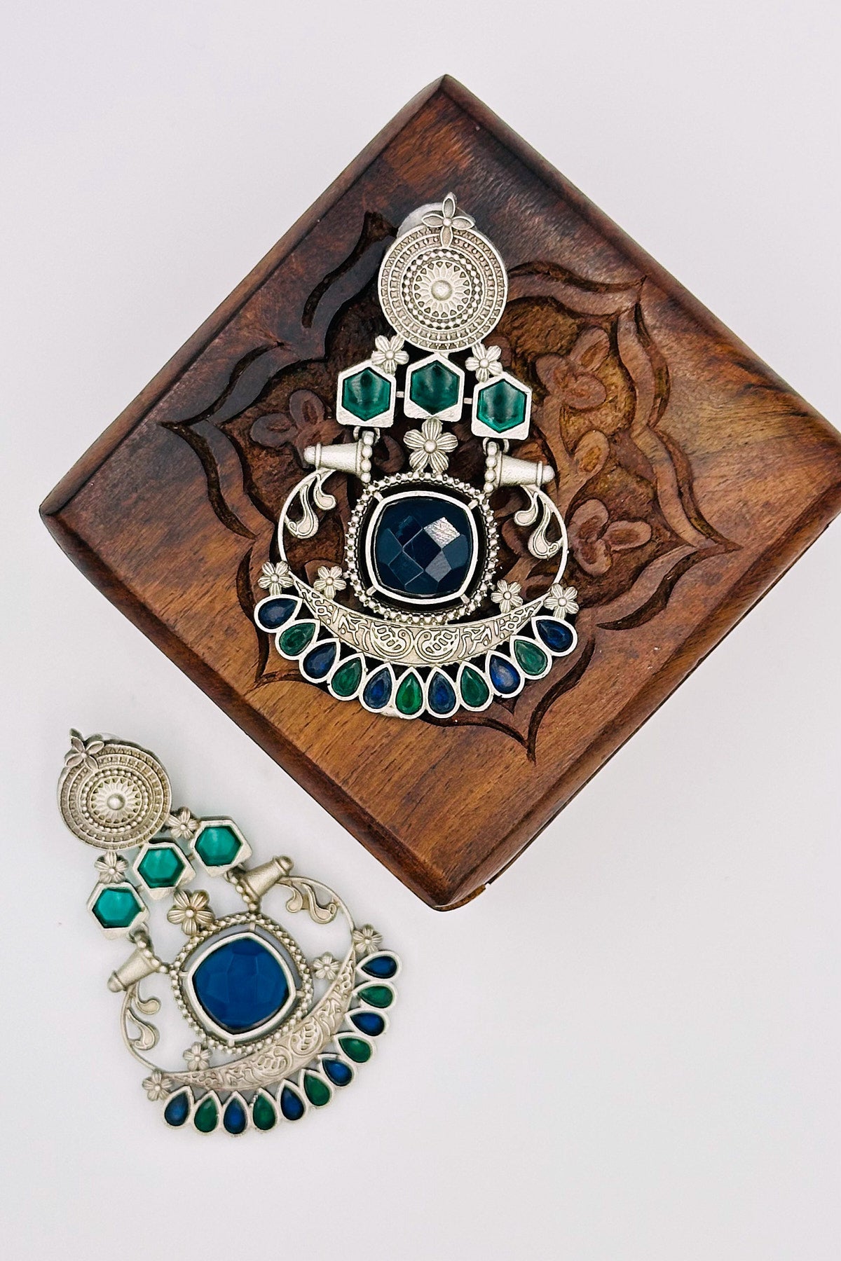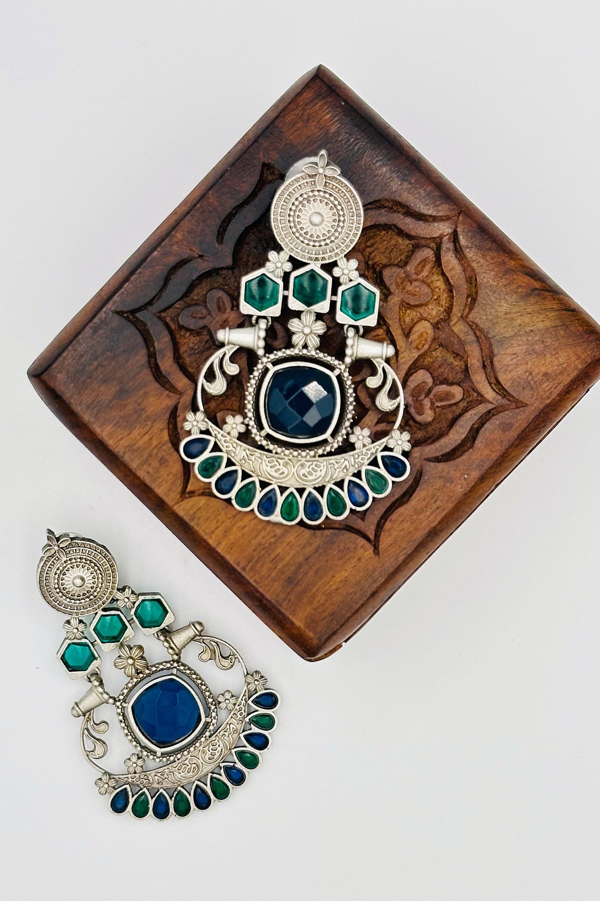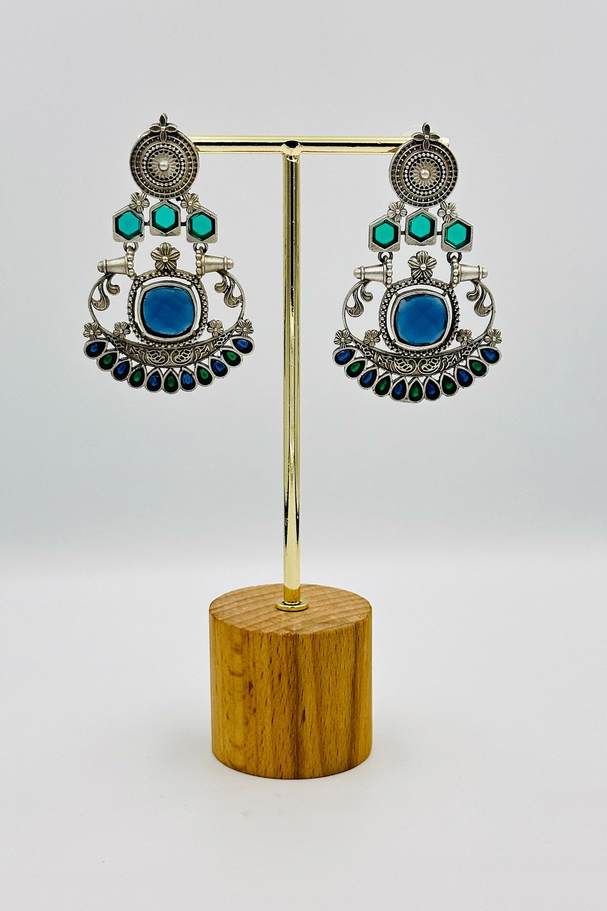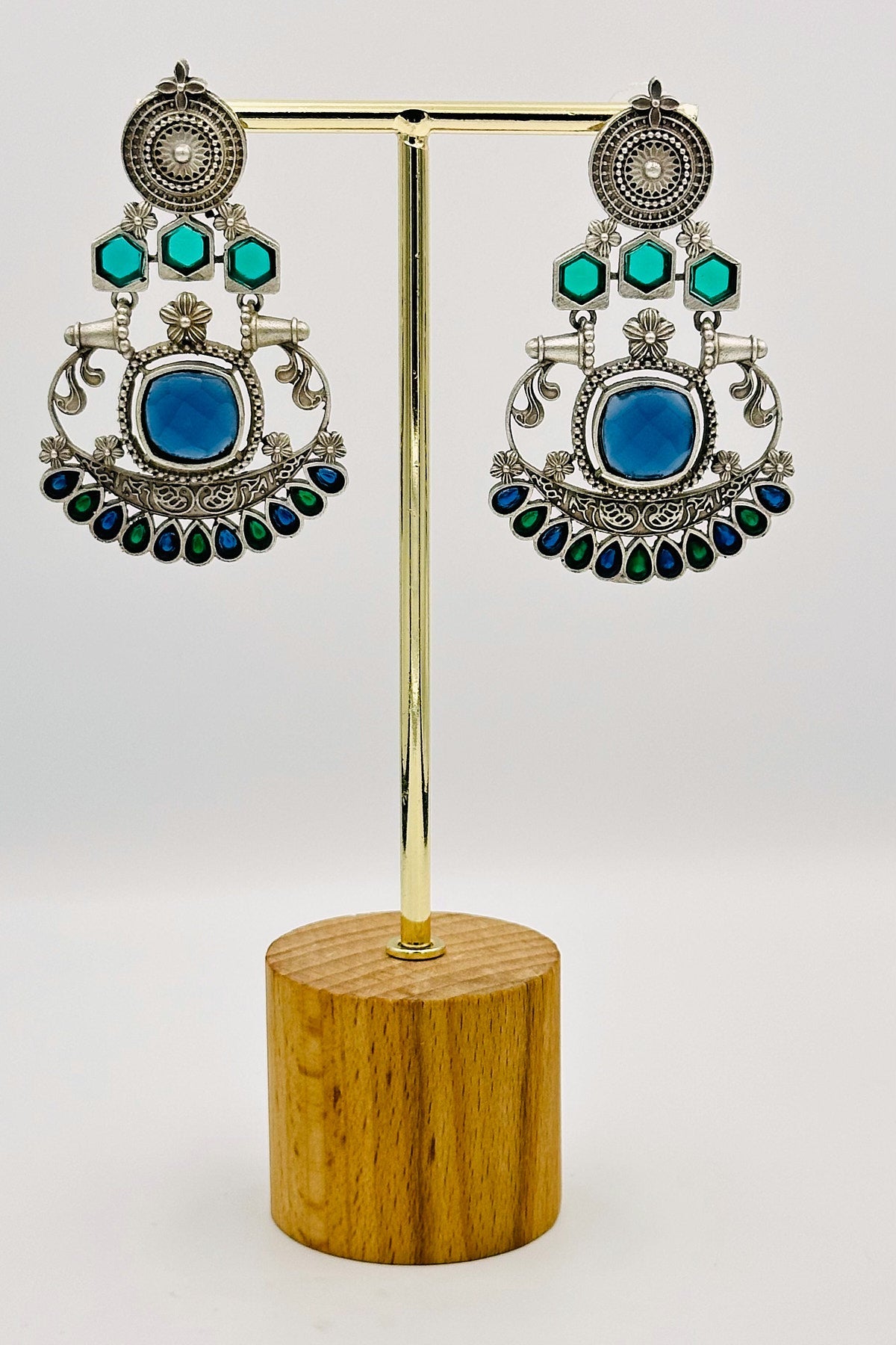 Silver Earrings with Blue and Green Stone Accents - swadeshsouq.com