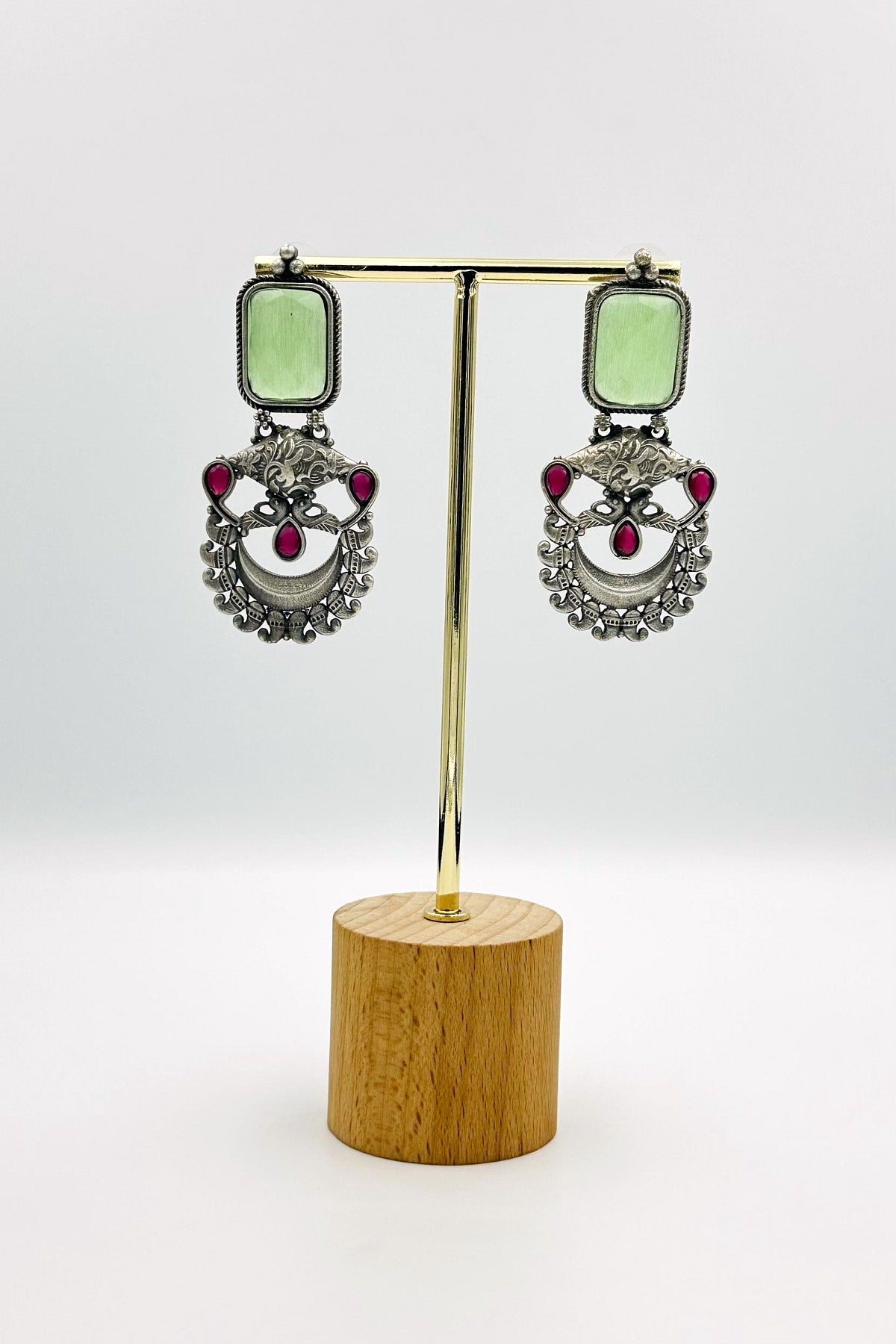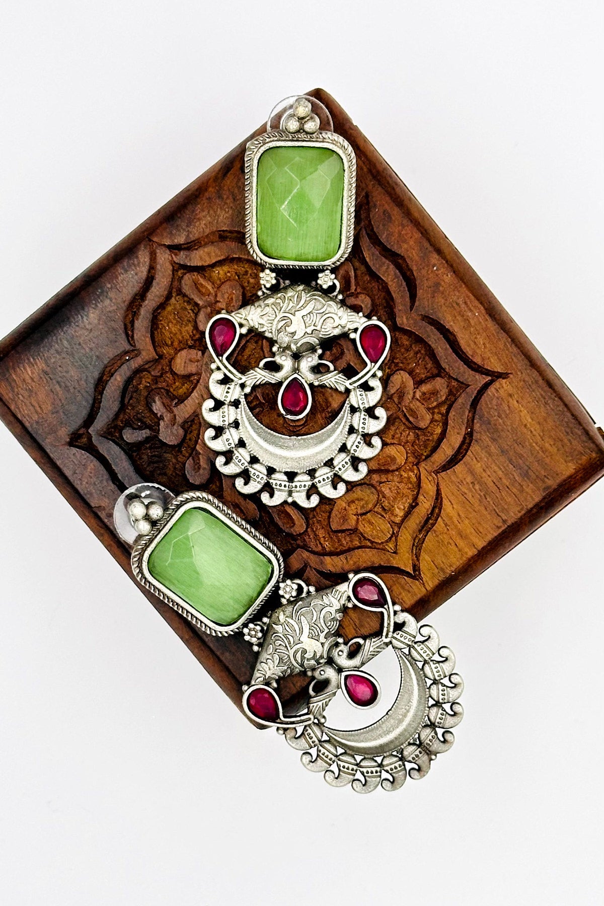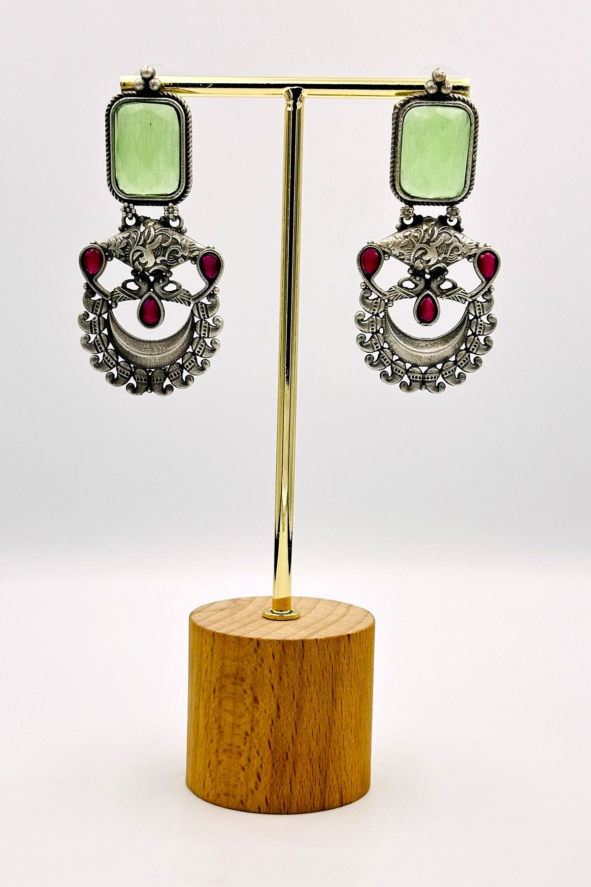 Silver Earrings with Delicate Mint Green and Passionate Red Stones - swadeshsouq.com