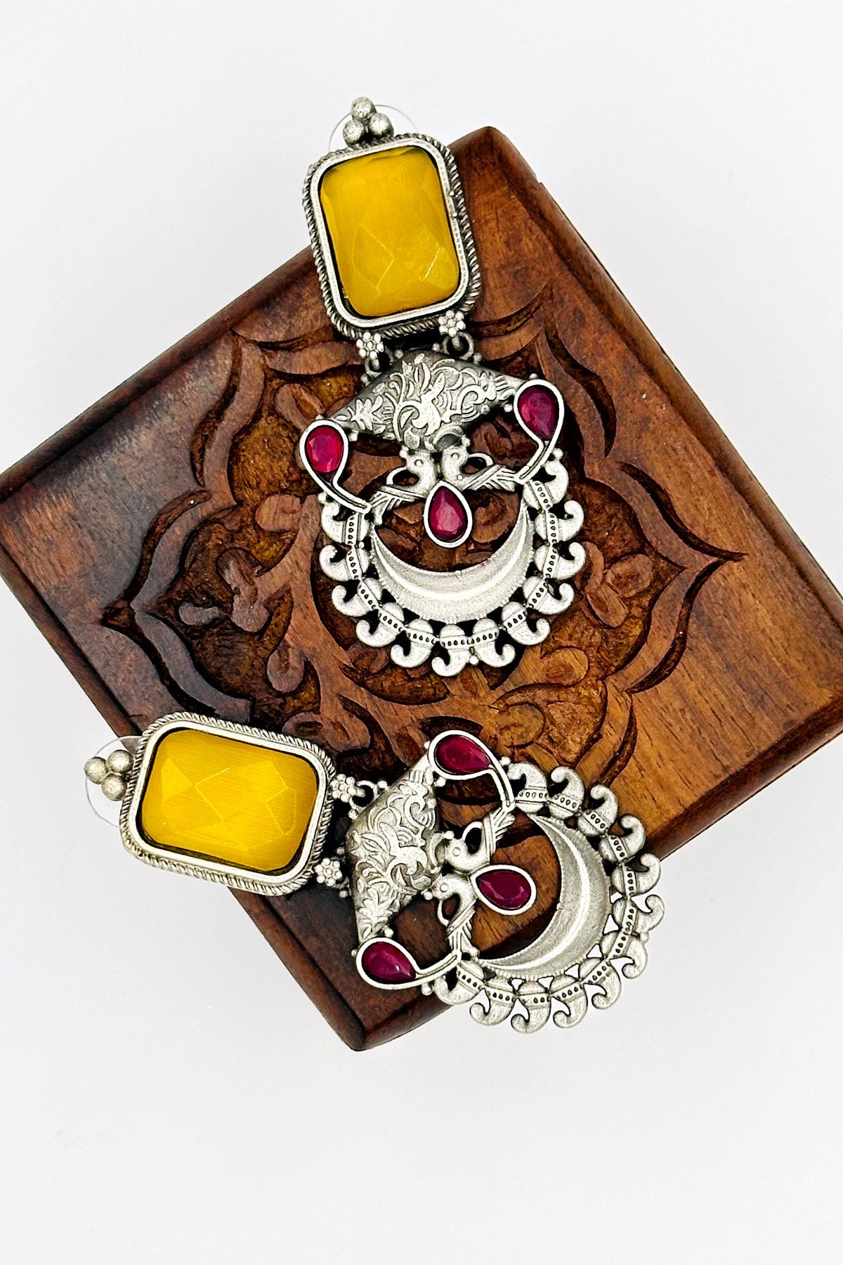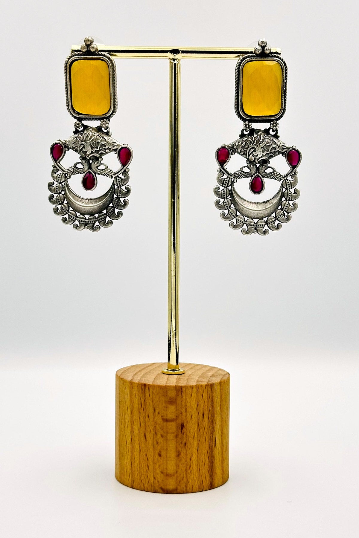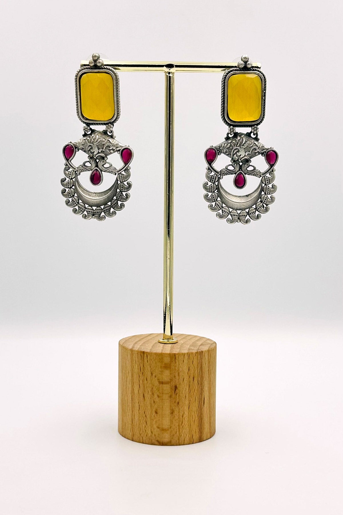 Silver Earrings with Intricate Yellow and Red Stones - swadeshsouq.com