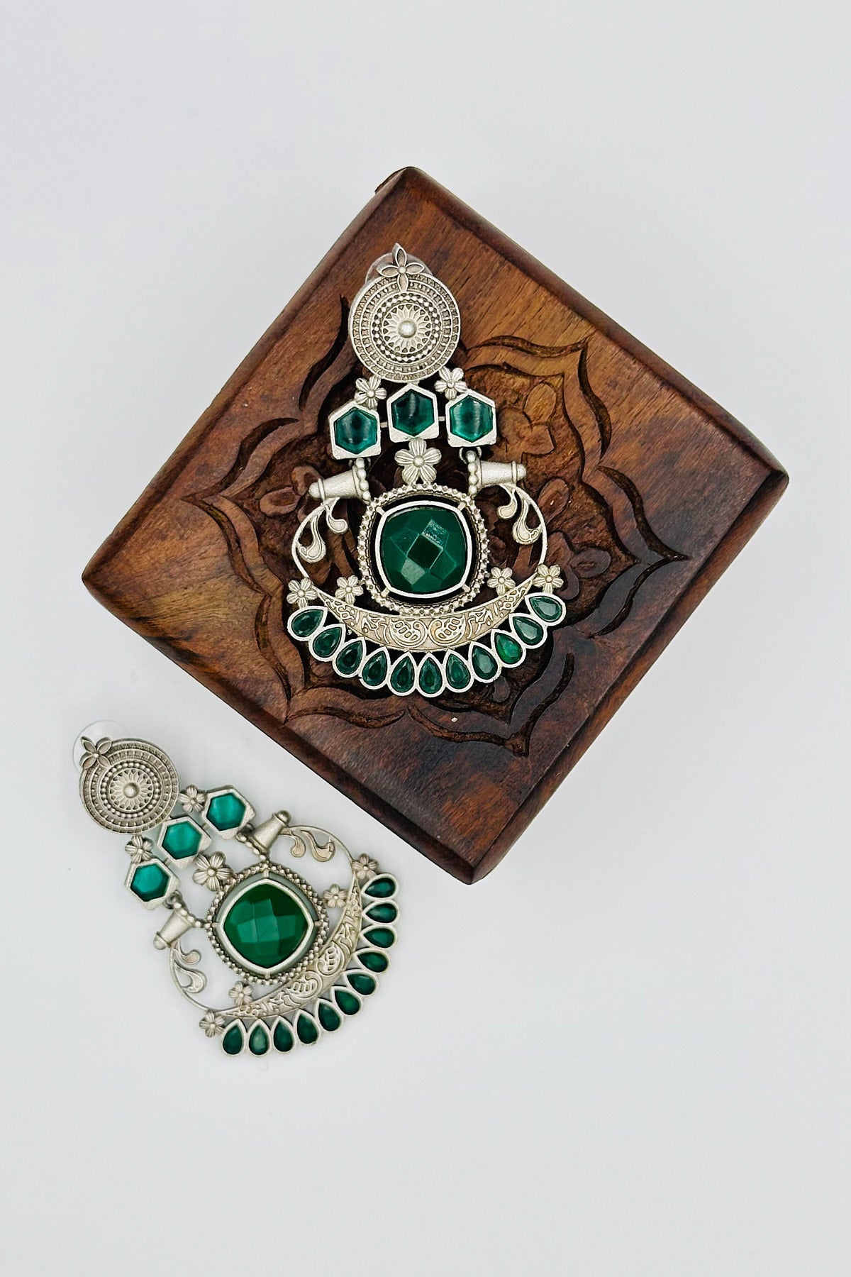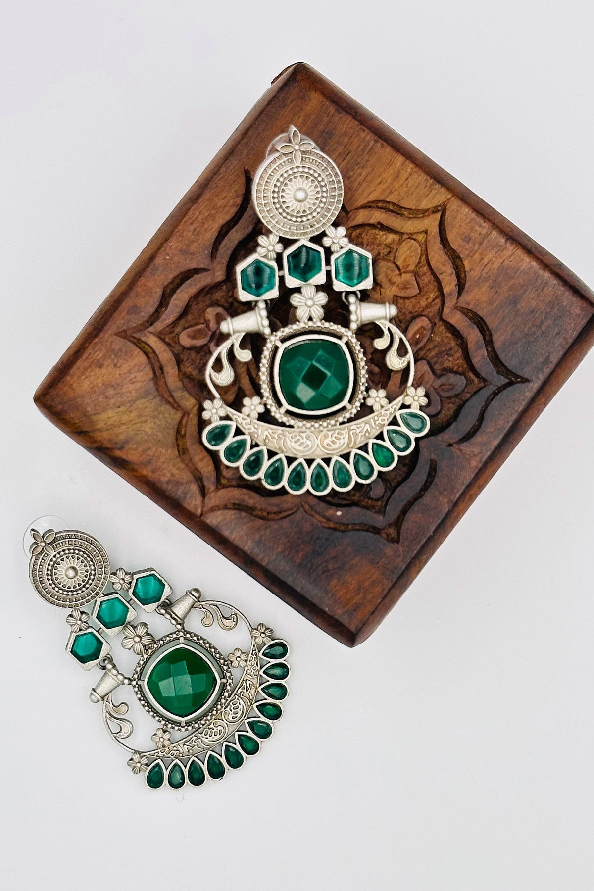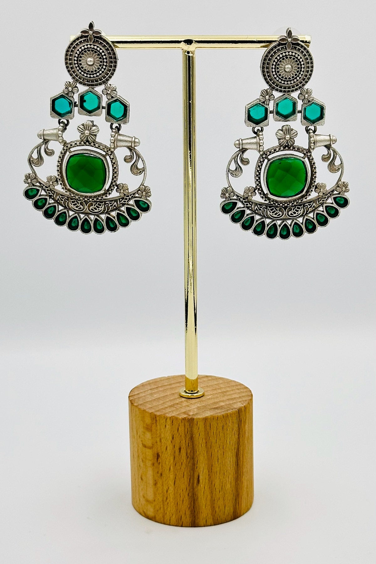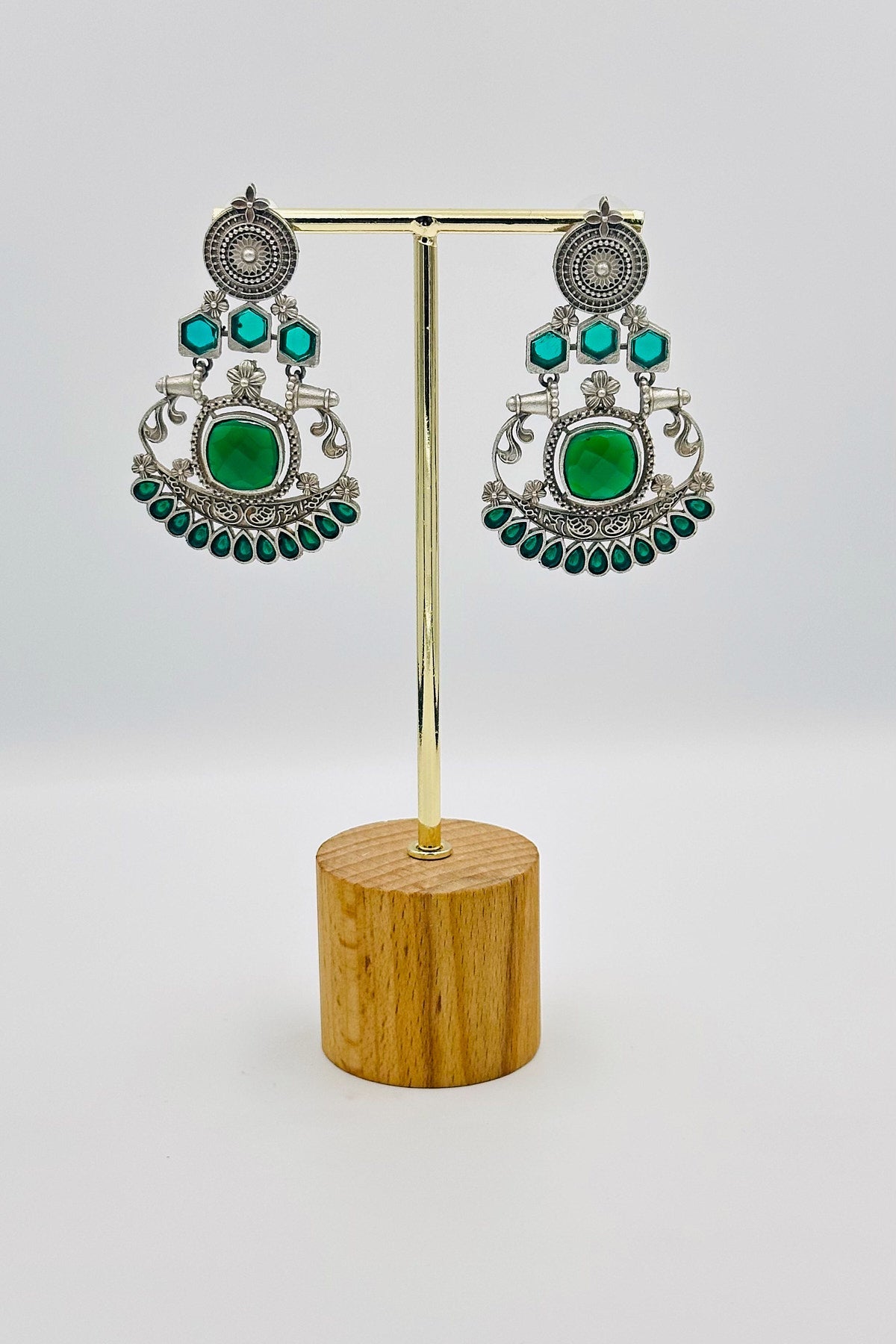 Silver Earrings with Lush Green Stone Accents - swadeshsouq.com